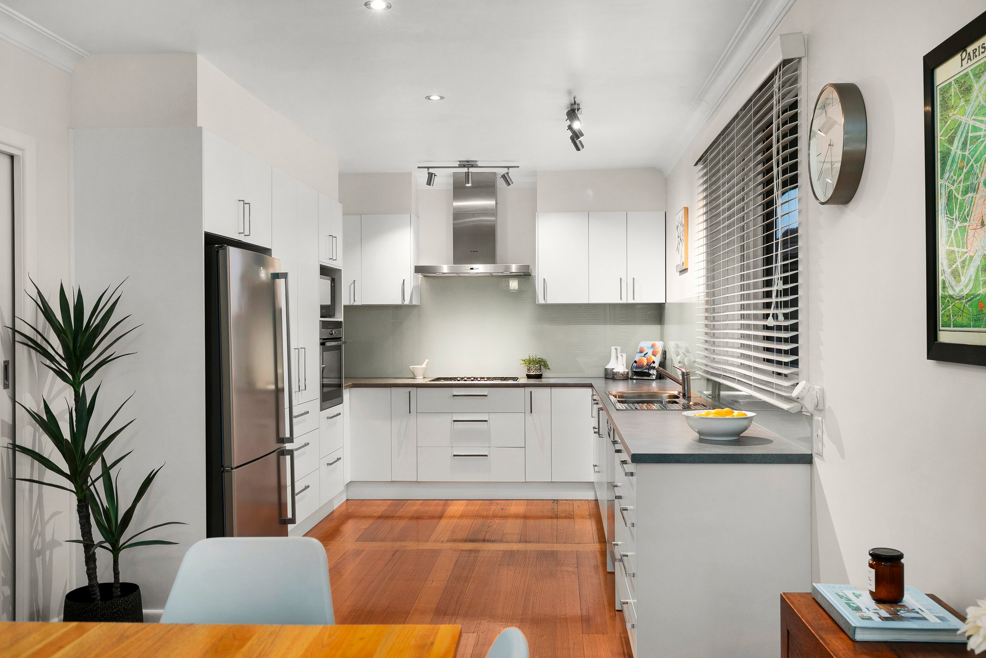 Striking original timber floors are a feature of so much of this well-appointed dwelling, and can be enjoyed in the light-filled lounge room which has views of the front garden, and the spacious dining room. The kitchen has been beautifully updated and extended, and delivers abundant storage, so much bench space, and the full range of premium appliances with Bosch, Smeg, and Neff brands included which are so sought-after.
