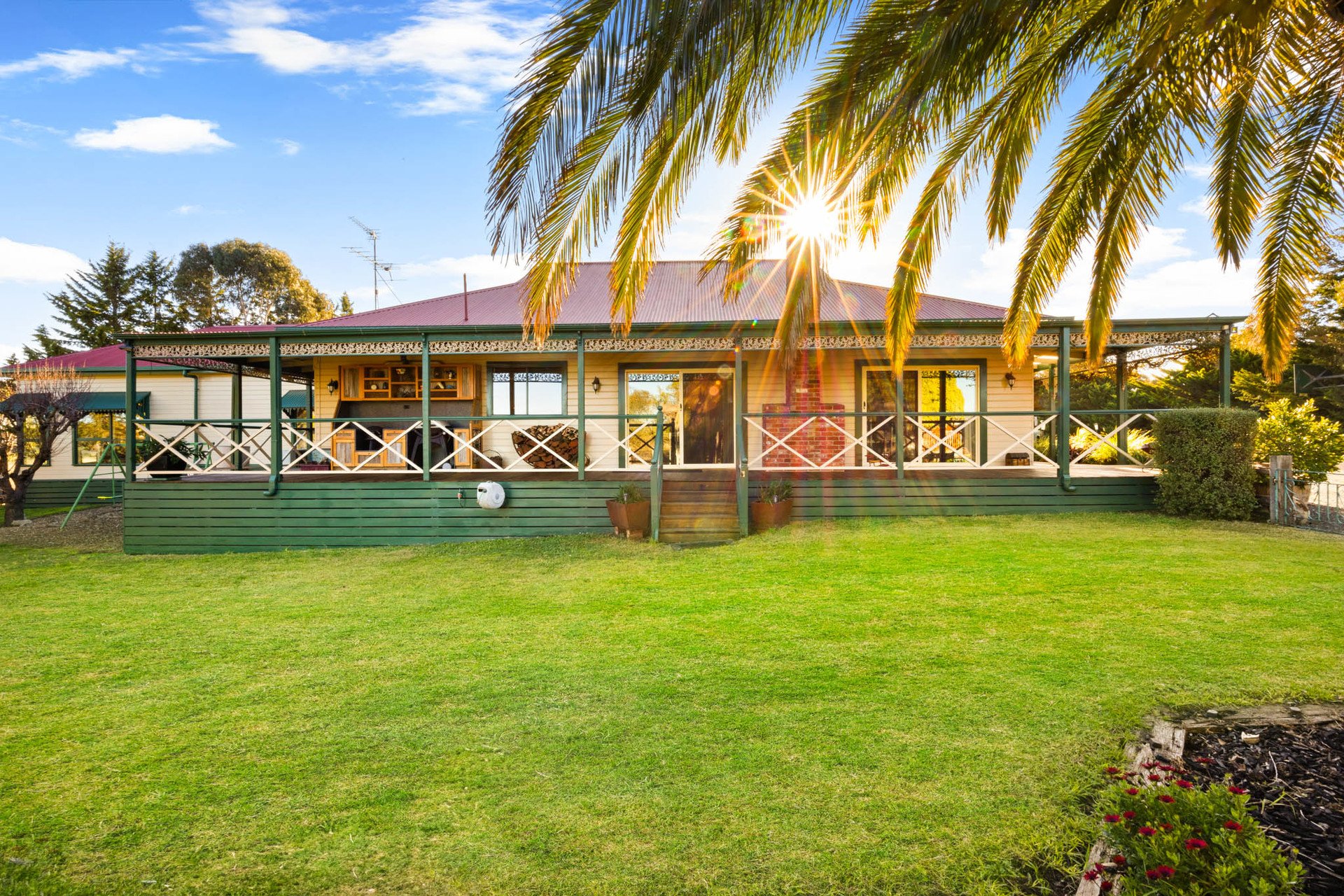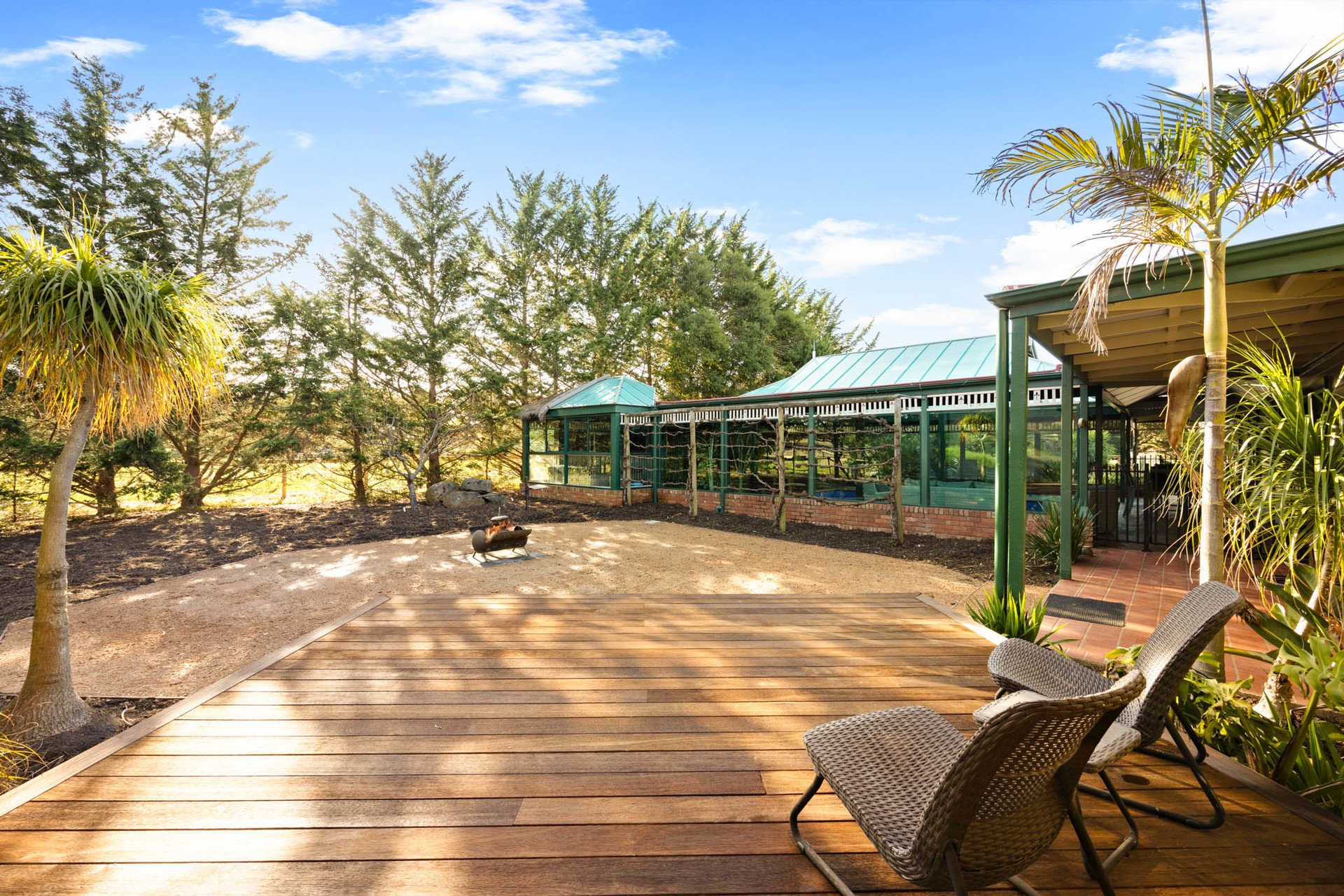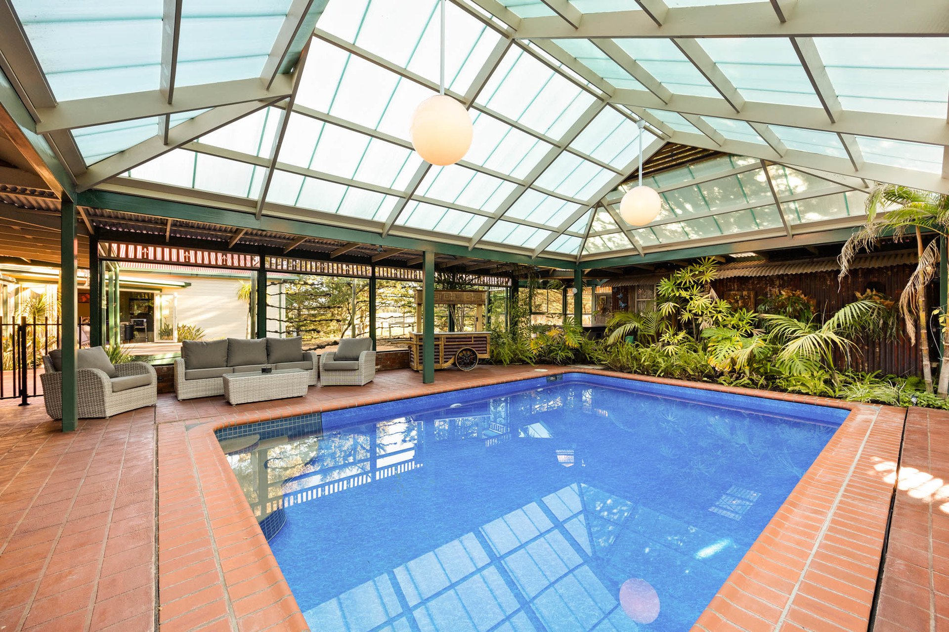 But the true showpiece lies outdoors. A solar-heated salt-chlorinated pool is housed within an atrium-style enclosure, fringed by tropical plantings and paired with a spa, sauna, and poolhouse bathroom for complete resort-style indulgence. Meanwhile, a 2nd outdoor entertaining zone with magnificent reclaimed bridge timbers, and a built-in BBQ form the backdrop to unforgettable gatherings-weddings, milestones, or sun-drenched Sunday feasts. Graced by Longview Creek views, there's also a cute colonial style cubby house for the kids.