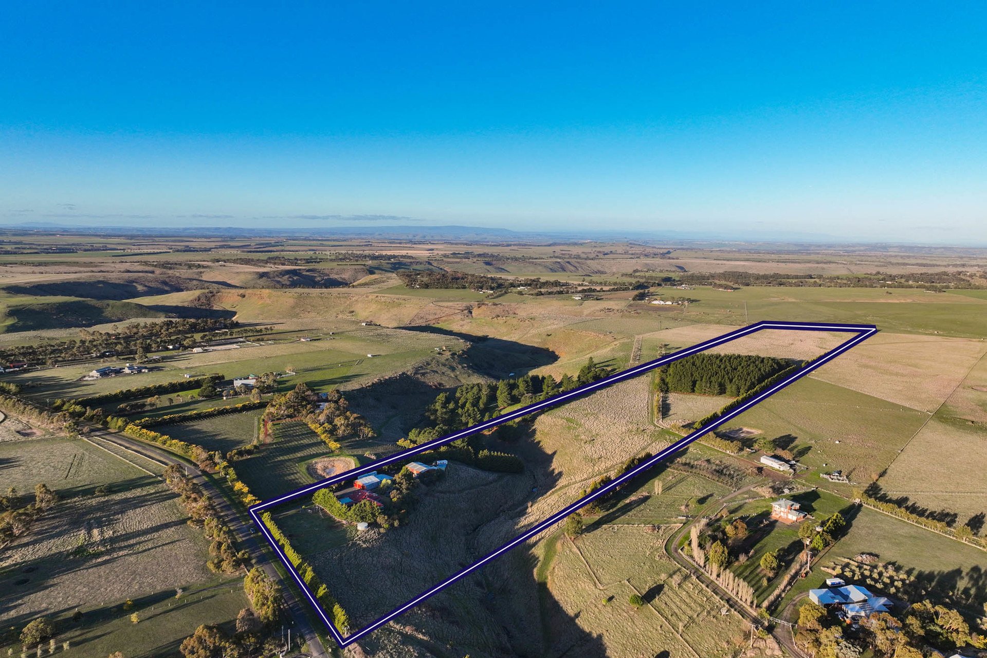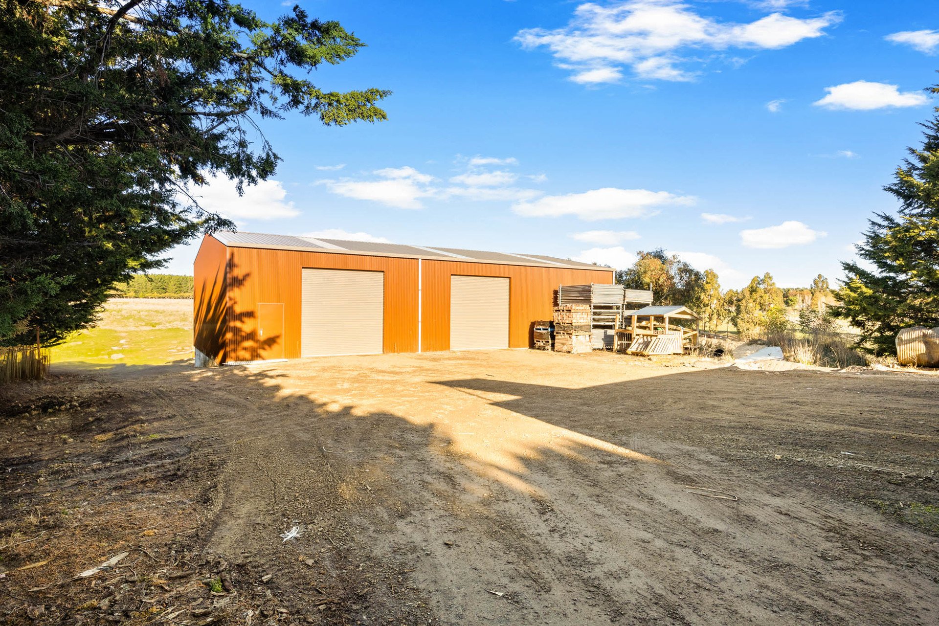 The estate's infrastructure further enhances its appeal with a vast 18m x 12m clear span shed with kitchen, toilet, mezzanine, workshop space; a 4-bay 9m x 12m open shed; a 2nd 12m x 20m high clearance shed; 5 paddocks (2 with water troughs); cattle facilities; dam; town water supply and extensive tank water supply (approx. 122.5kL); sprinkler system; a chicken coop; and dog run.