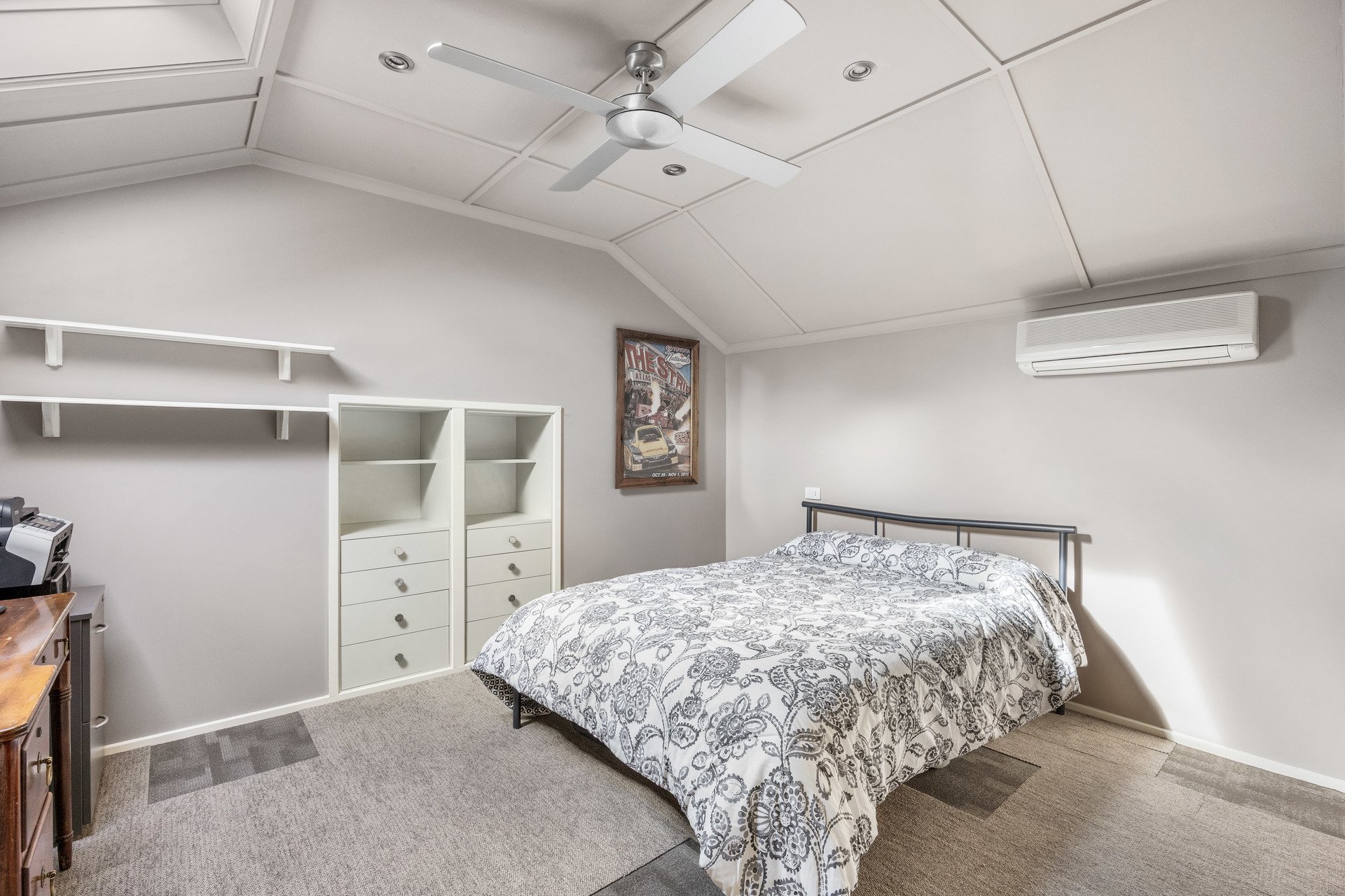 Accommodation is generously proportioned, with three bedrooms downstairs and two more tucked into a storybook attic loft. The main suite features a built in wardrobe and luxurious ensuite with a twin wave vanity, mosaic tiling, and a niched shower. A central bathroom echoes this elegance with a clawfoot tub and classic finishes. A large study/6th bedroom is positioned with direct access to the pool. The home also includes double glazing, Split system heating and cooling, and ceiling fans.
