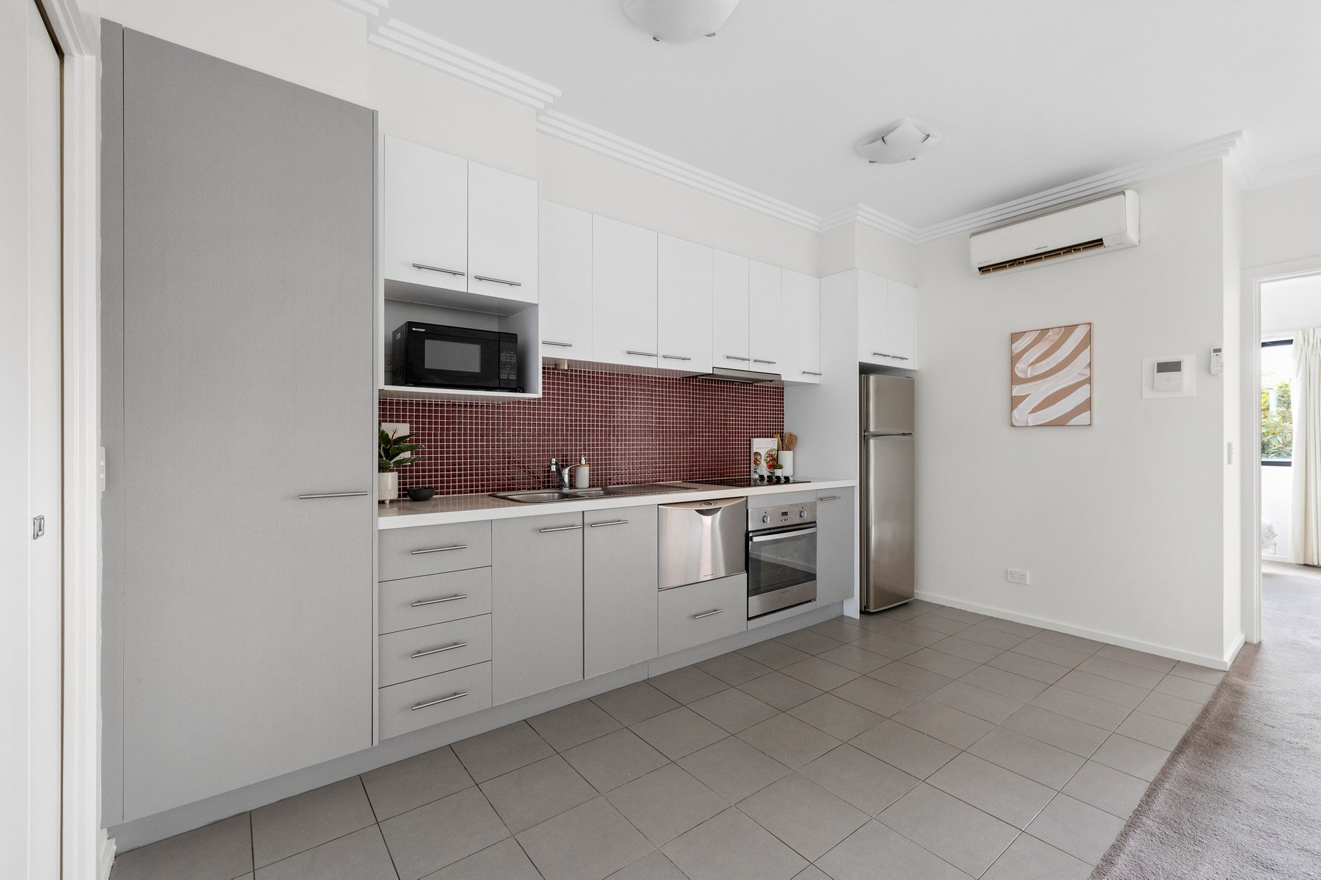 Thoughtfully designed, the apartment welcomes you via a defined entry hall, flowing through to a light-filled open-plan living and dining domain that extends to a sun-drenched balcony—perfect for relaxed everyday living or effortless entertaining. The contemporary kitchen is well-appointed with quality appliances, excellent storage and a practical, user-friendly layout.