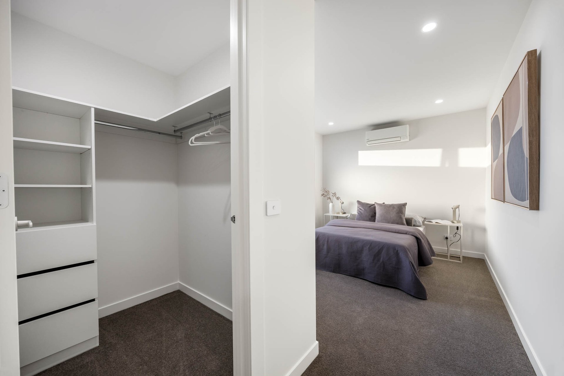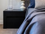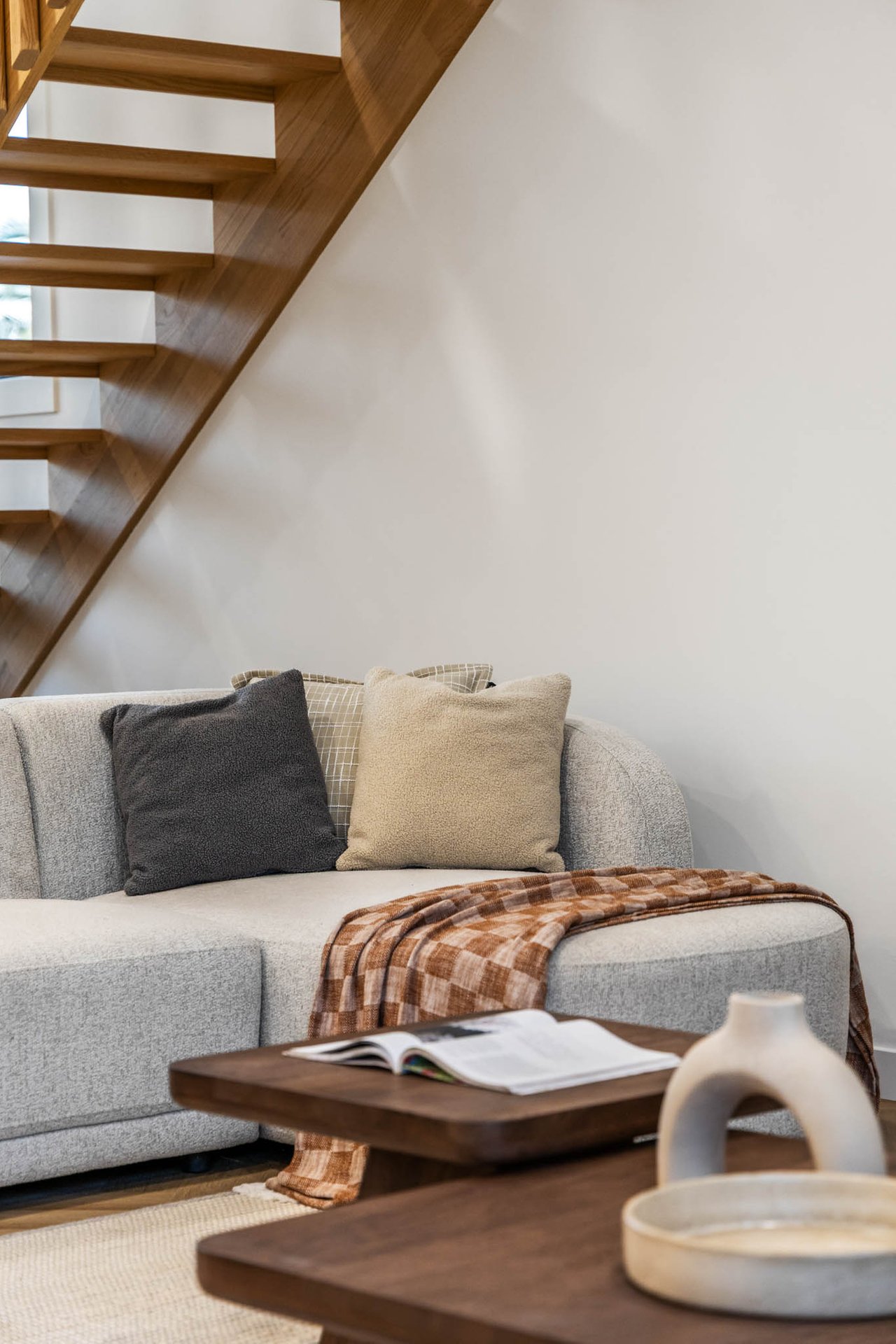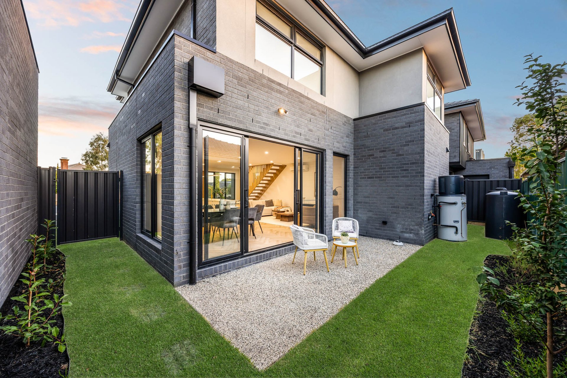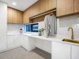 Delivering a luxurious double-storey dwelling of indisputable appeal, this elegant townhouse balances statement finishes with effortless liveability. Rich herringbone flooring sets an elegant tone through the ground level, where a slatted timber staircase rouses sculptural punctuation to airy, connected spaces.