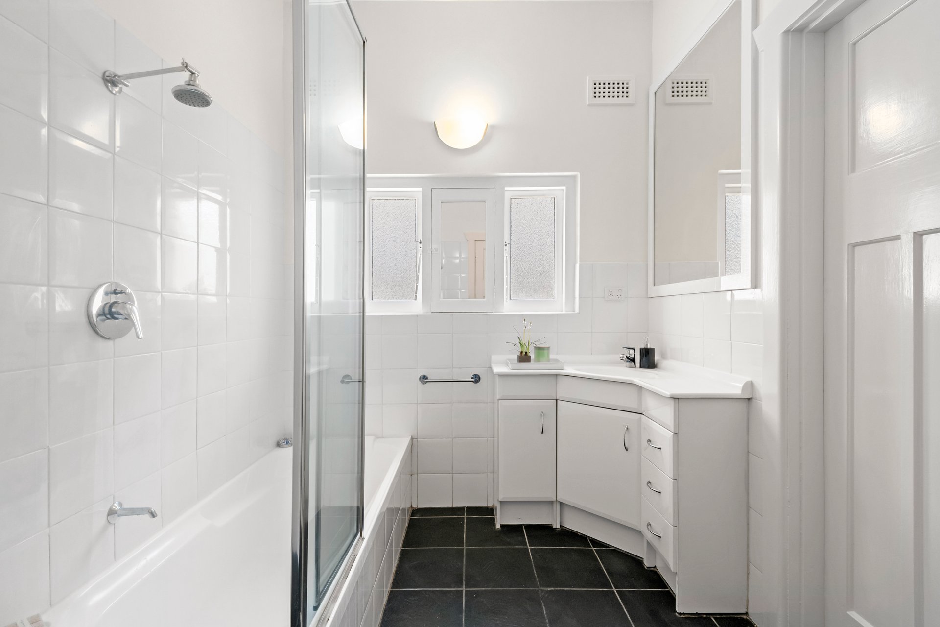 Separate Laundry for added practicality and sparkling central modern bathroom with shower and bath to relax.