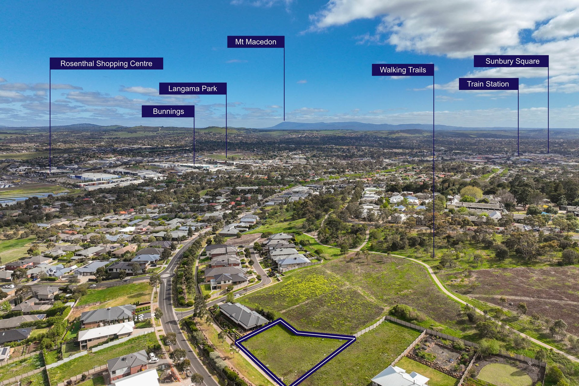 Just 5 minutes' drive to vibrant town centre shops, cafés, restaurants, amenities, sports facilities, and freeway access, its superb location lies within 2.5km's of Sunbury train station with metro services to the CBD, and V-Line services to the greater Macedon Ranges. This is that rare combination of convenience coupled with fresh air and natural beauty and a magnificent opportunity to have it all – lifestyle, views, and prestige!