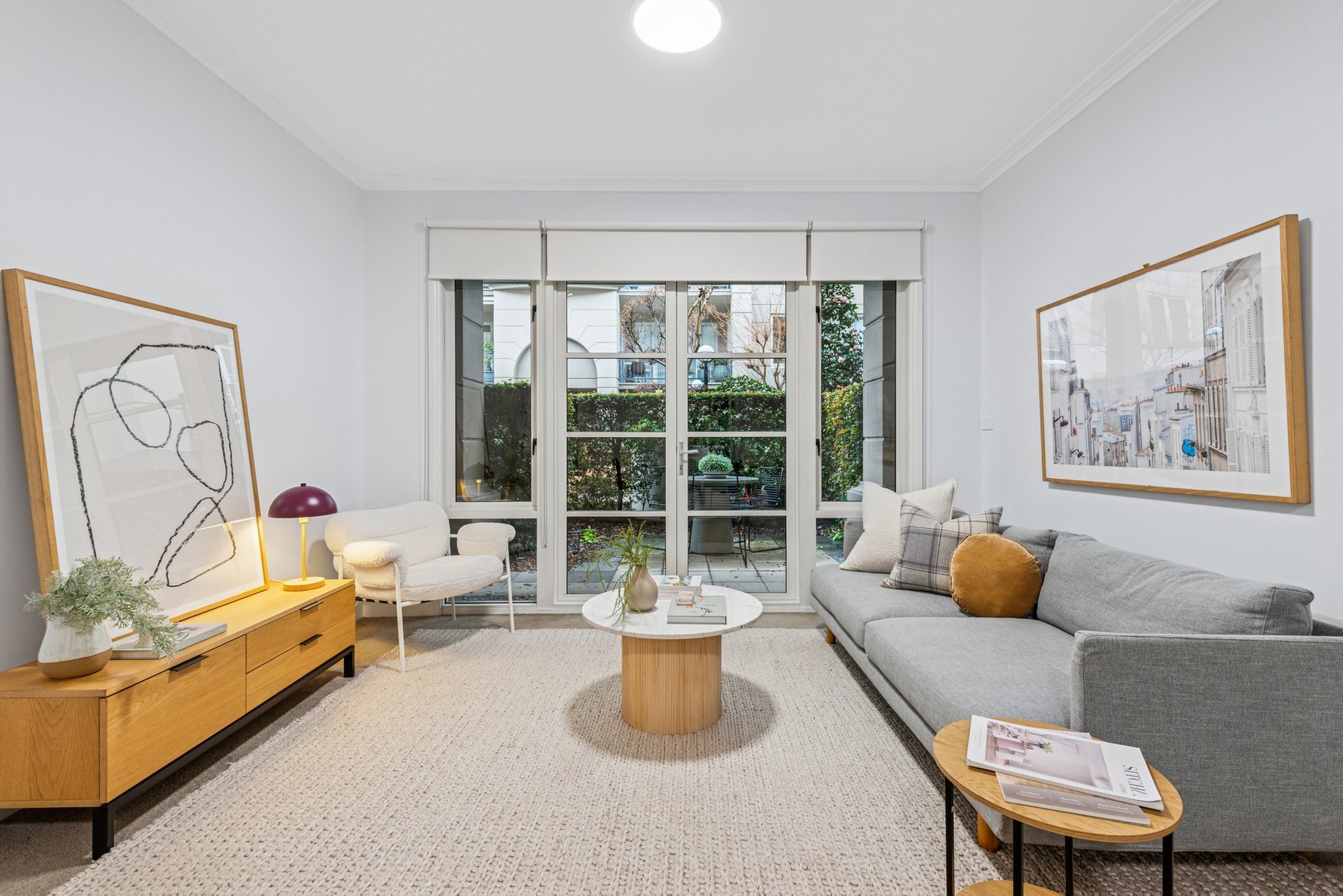 With its refined proportions and house-like flow, this beautifully elegant residence delivers executive comfort in one of East Melbourne’s most tightly held lifestyle enclaves. Positioned in the stately Victorian Albert Town Residences, it’s one of only a handful with an east-facing terrace screened by leafy walls, offering privacy, morning sun and a seamless outdoor connection.