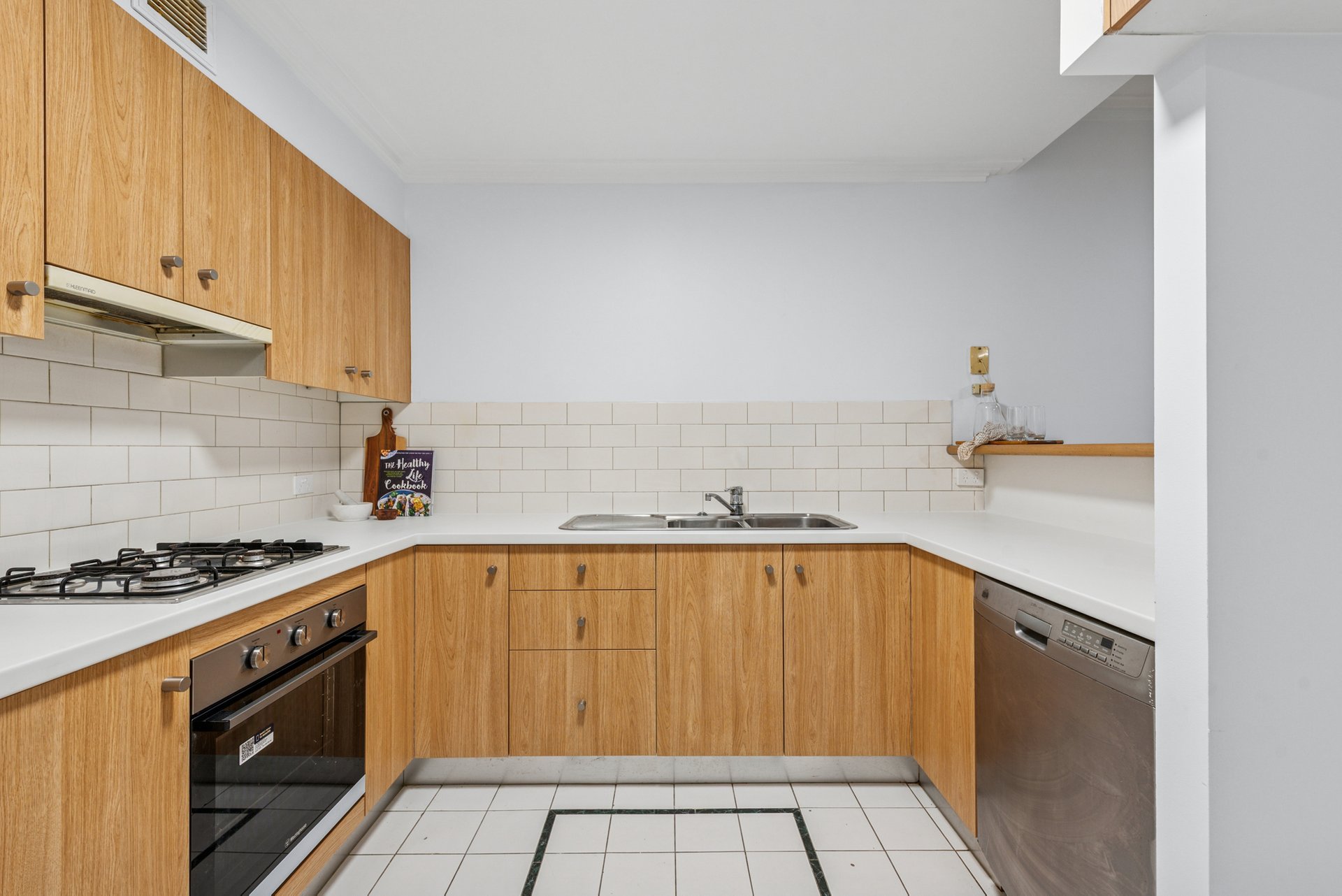 Inside, the generous living and dining room opens via French doors to the terrace, creating a light-filled, airy atmosphere that feels immediately inviting. The kitchen is fully equipped with quality appliances including a four-burner cooktop, oven and dishwasher. The main bedroom has an ensuite bathroom, while the second is serviced by a spacious central bathroom with shower-over-bath and tucked-away European laundry. Both are fitted with built-in robes.