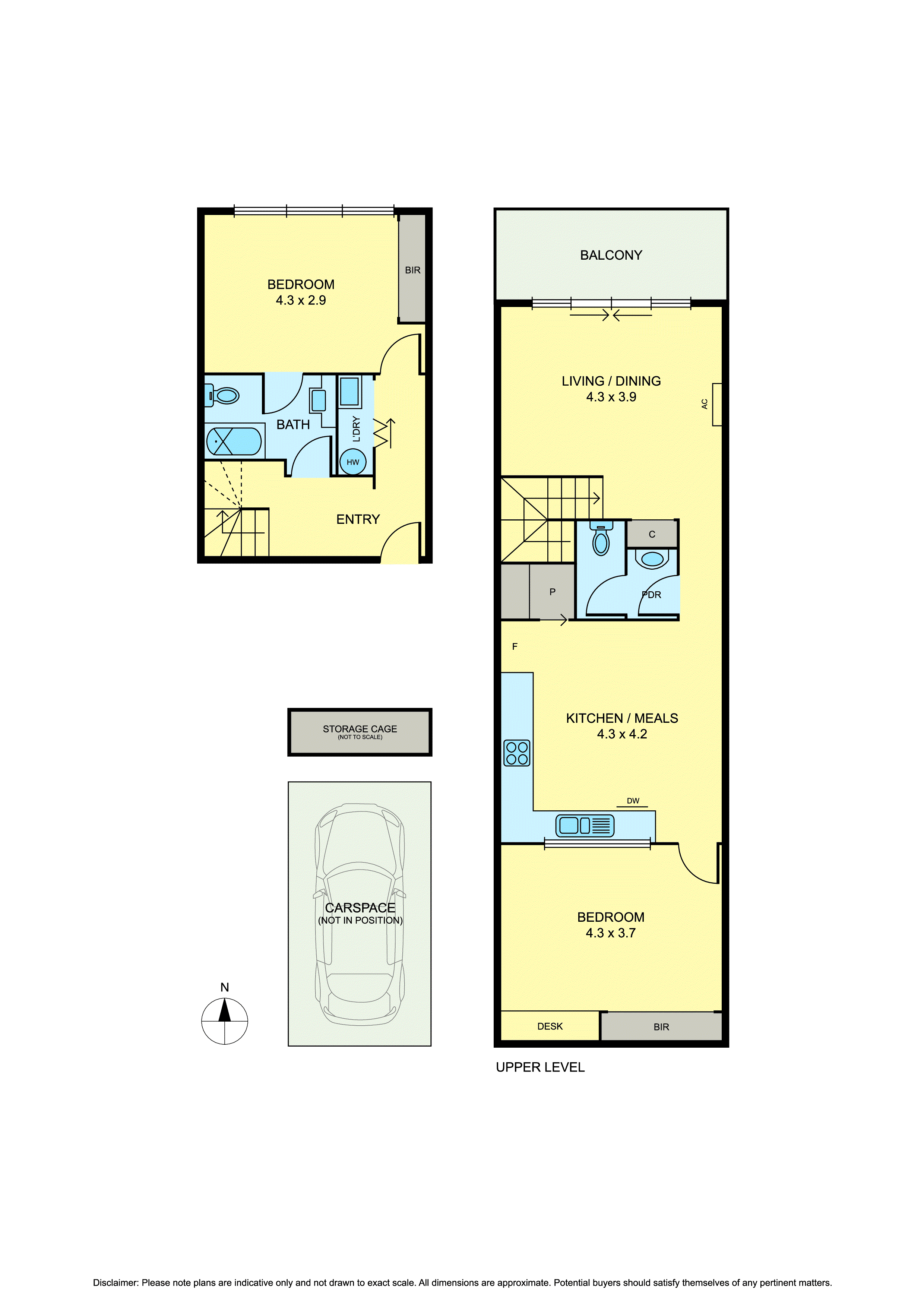 With one spacious bedroom on each level, privacy is assured. The main bedroom enjoys direct access to a modern bathroom, while the second, sun drenched bedroom enjoys a walkthrough ensuite.