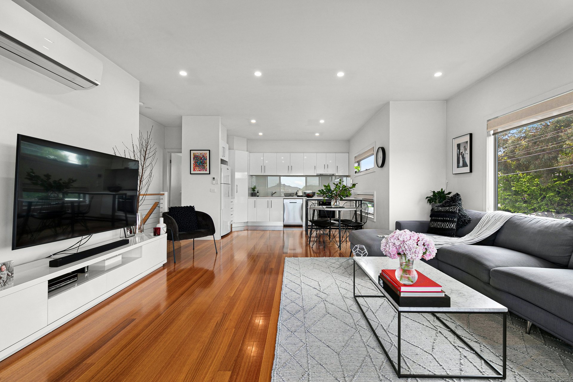 As new, this three bedroom, two bathroom home presents a luxurious, low-maintenance lifestyle in a sought-after family-friendly locale, with a surprising reverse floorplan cleverly optimizing its dual level layout. Picture perfect bedrooms (BIR's) with split systems encompass master with WIR and lavish fully-tiled ensuite, the fully-tiled central bathroom with skylight boasting a separate bath and shower.