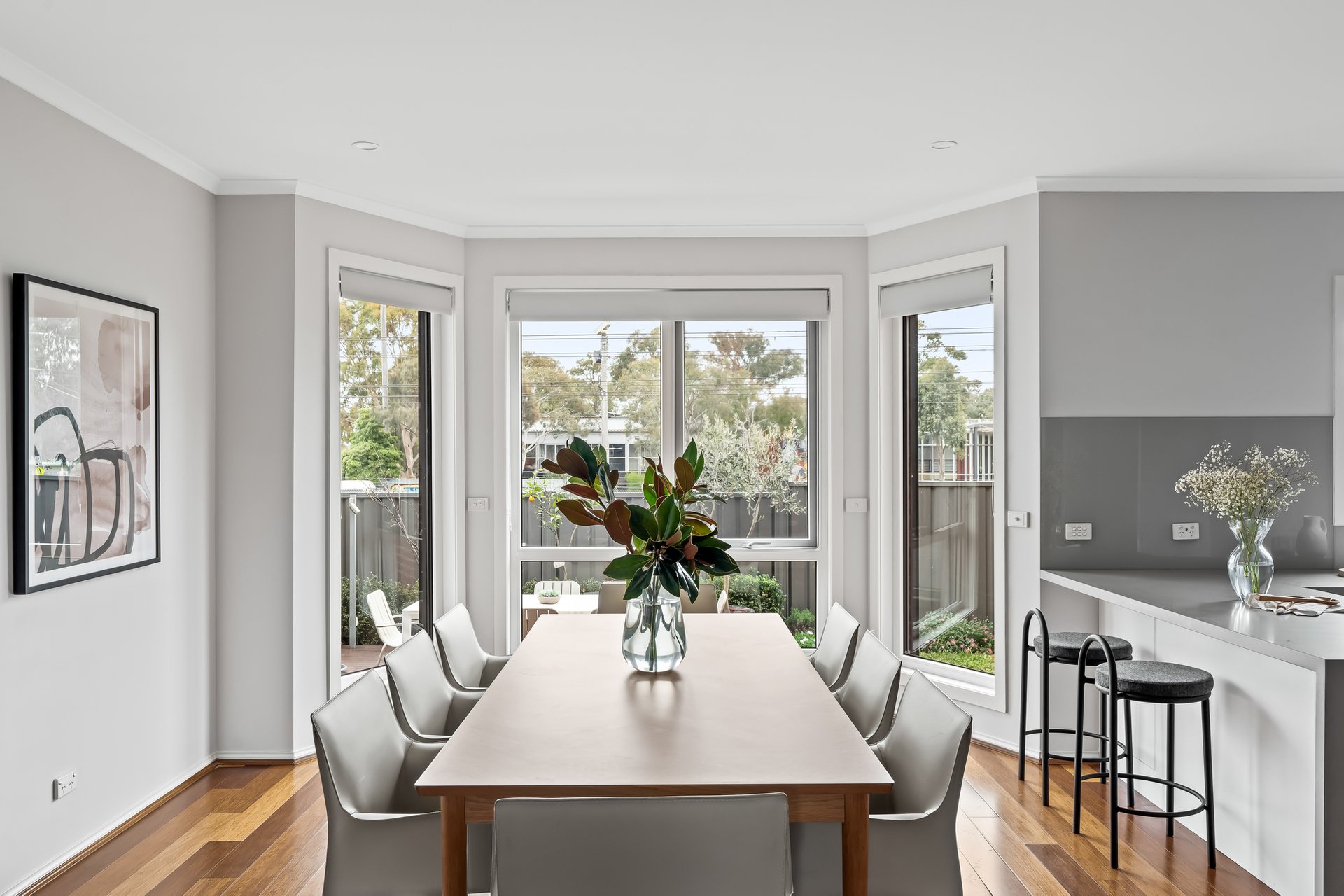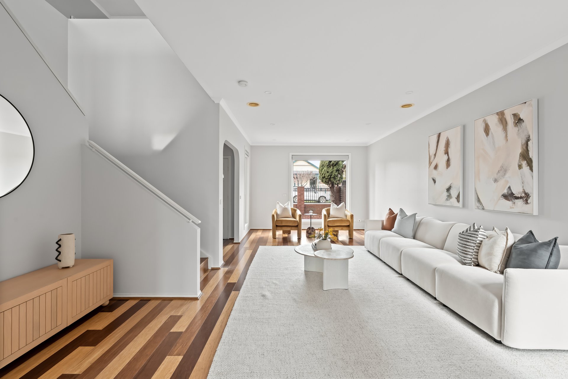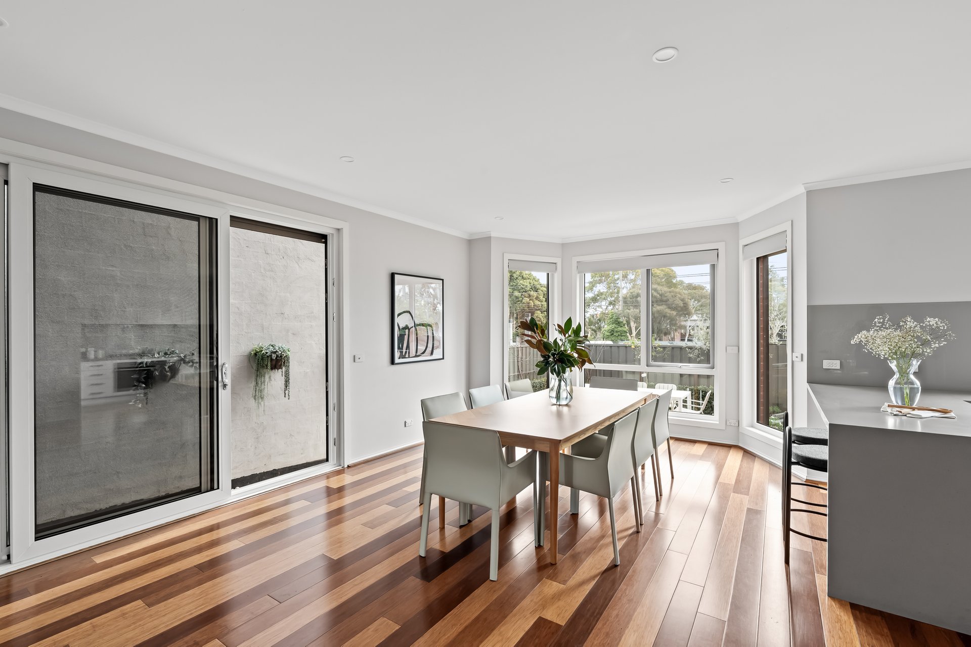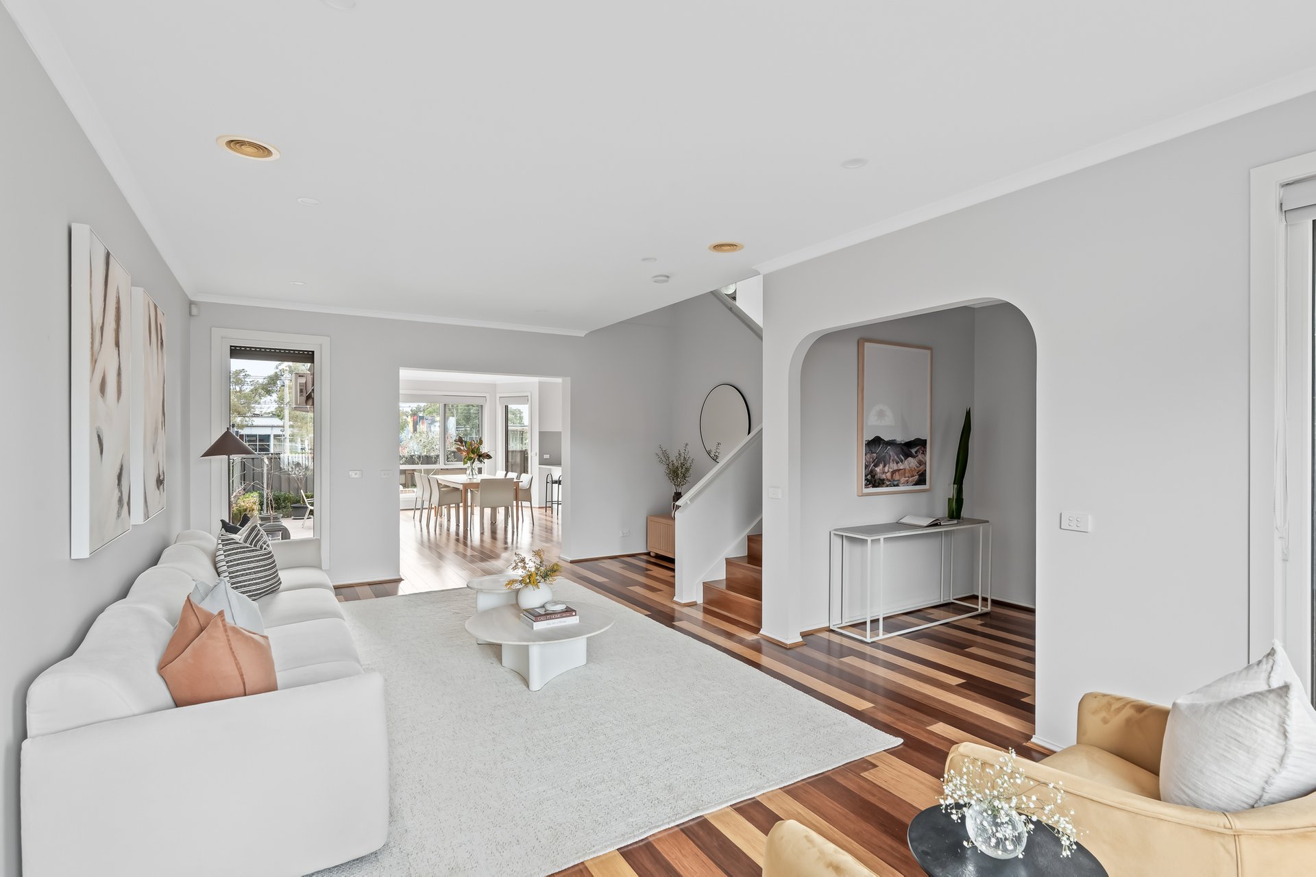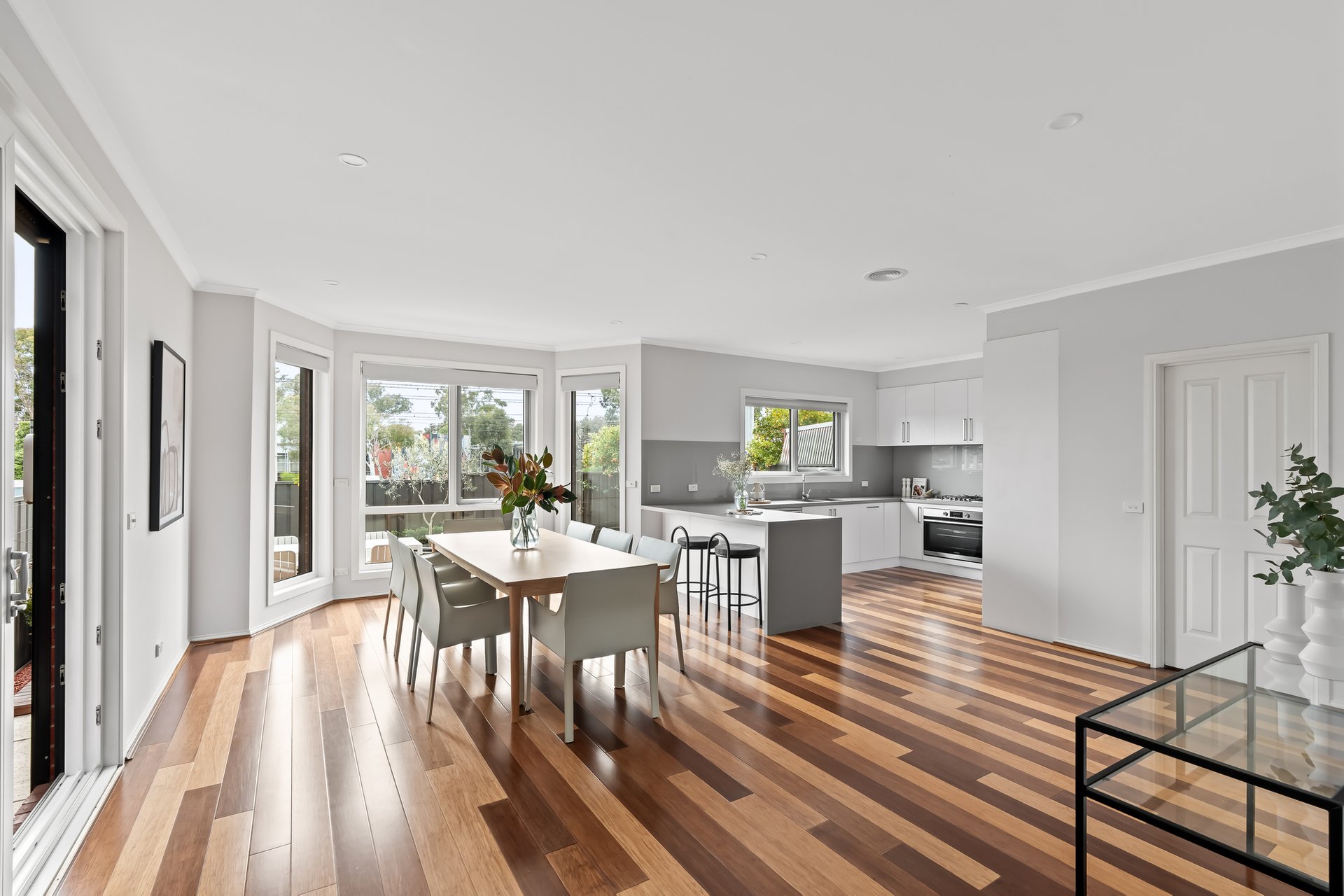 Impeccably renovated over a sprawling dual level layout, this contemporary four bedroom two bathroom home brings together oversized interiors, high-end finishes and manicured alfresco gardens for transcendent living near popular High Street. Superbly renovated and offering city views from an upstairs living room, this home offers plenty of space for every stage of family living. Beyond a double door entrance hall, bamboo floors line a spacious living room and continue through to family dining where a superb stone topped kitchen takes pride of place. Endless soft-close cabinetry impresses in this kitchen that showcases 900mm cooking and a Fisher&Paykel dishwasher, while sliding doors lead to a Victorian Ash lined deck and gardens, ideal for relaxed indoor-outdoor entertaining. Designer bathrooms complement the carpeted bedrooms with robes, with the sundrenched master enjoying its own walk-in robe and on-trend ensuite. The same attention to detail is found through the laundry/powder rooms, comfort comes via ducted heating plus split system heating/cooling, there is a security system and double garage with internal entry plus copious off-street parking. Solar panels add to the homes sustainability and its serene ambience is due to double glazing throughout. A beautiful blend of modern style, space and class, this delightful home situated a stone’s throw to High Street’s renowned shopping, restaurants and bars, moments to trams and Thornbury Station and surrounded by popular schools, zoned to Preston High, promises a wonderful family lifestyle.
