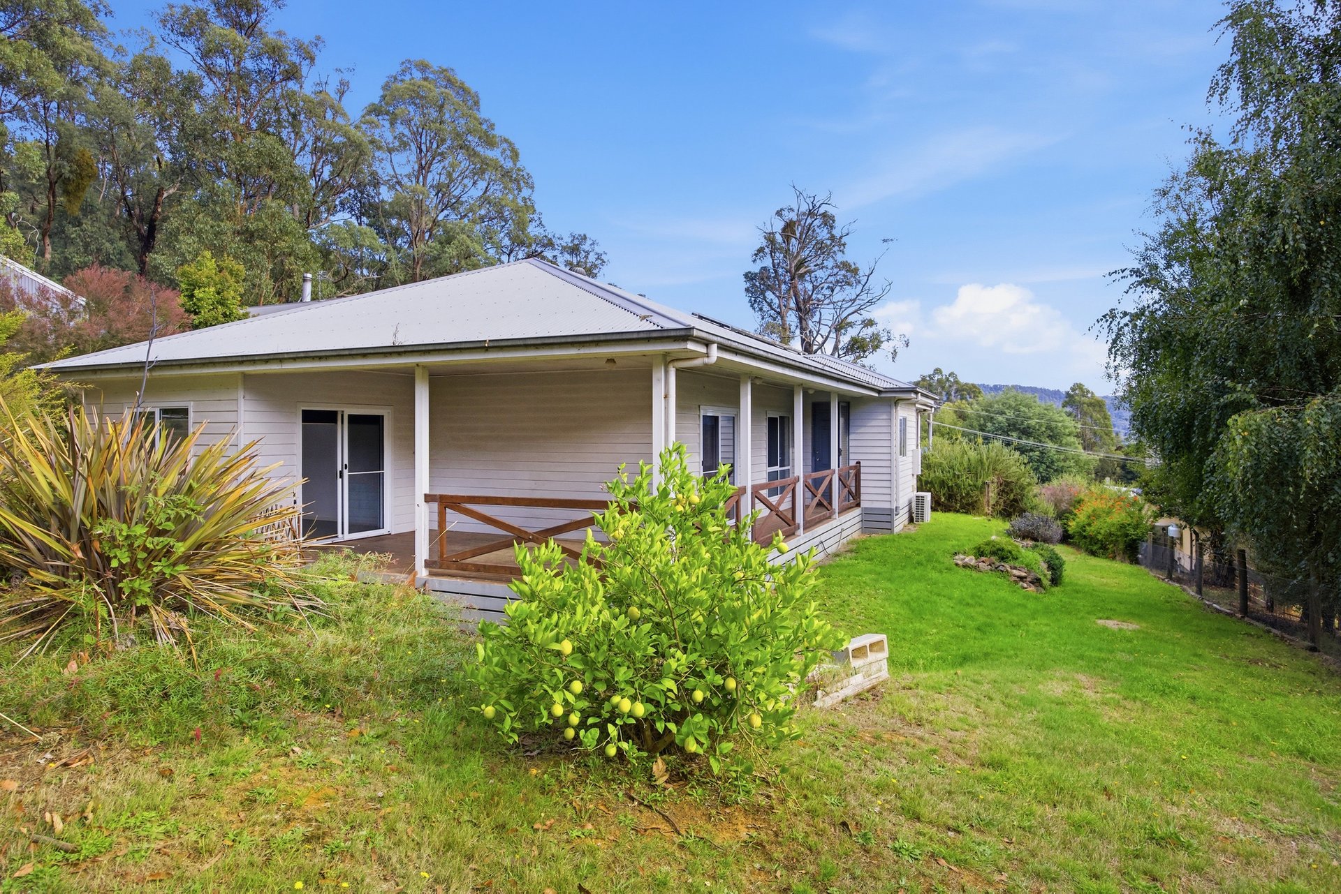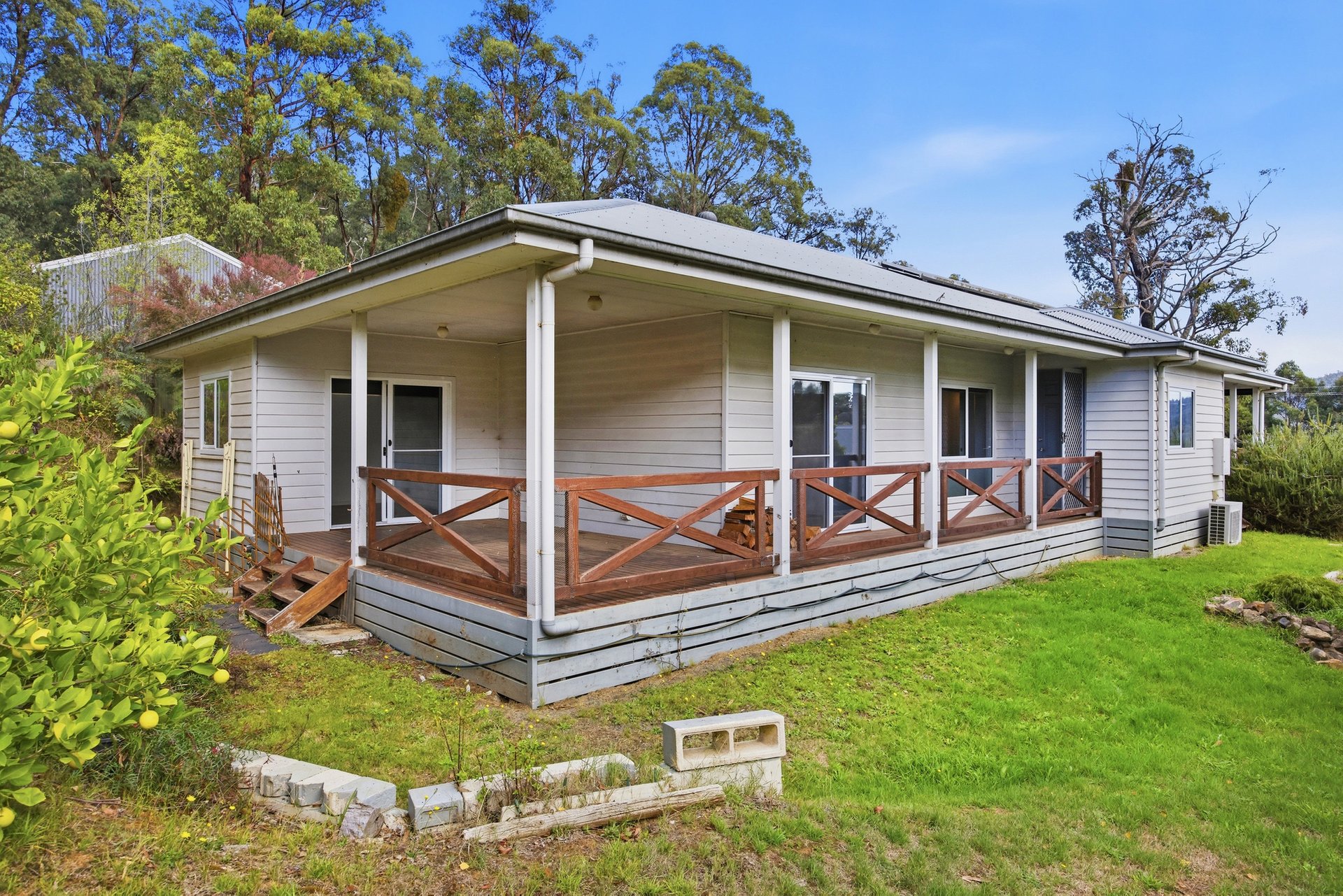 Beyond a long driveway on approximately 1,669sqm, a sweet home awaits your discovery, framed by stunning mountain scenery. Inside, natural light fills an expansive living and dining room, underpinned by floorboards, warmed by a wood heater and opening to front and rear verandahs, the latter leading to a covered entertaining area. A modern kitchen takes pride of place in the central hub, equipped with 900mm stainless steel cooking appliances, a dishwasher and stone benches. Three generous bedrooms provide comfortable accommodation, including two with doors to the rear verandah. A sleek family bathroom with a luxe freestanding bathtub, large shower, vanity and toilet, together with a laundry, complete the home’s footprint.