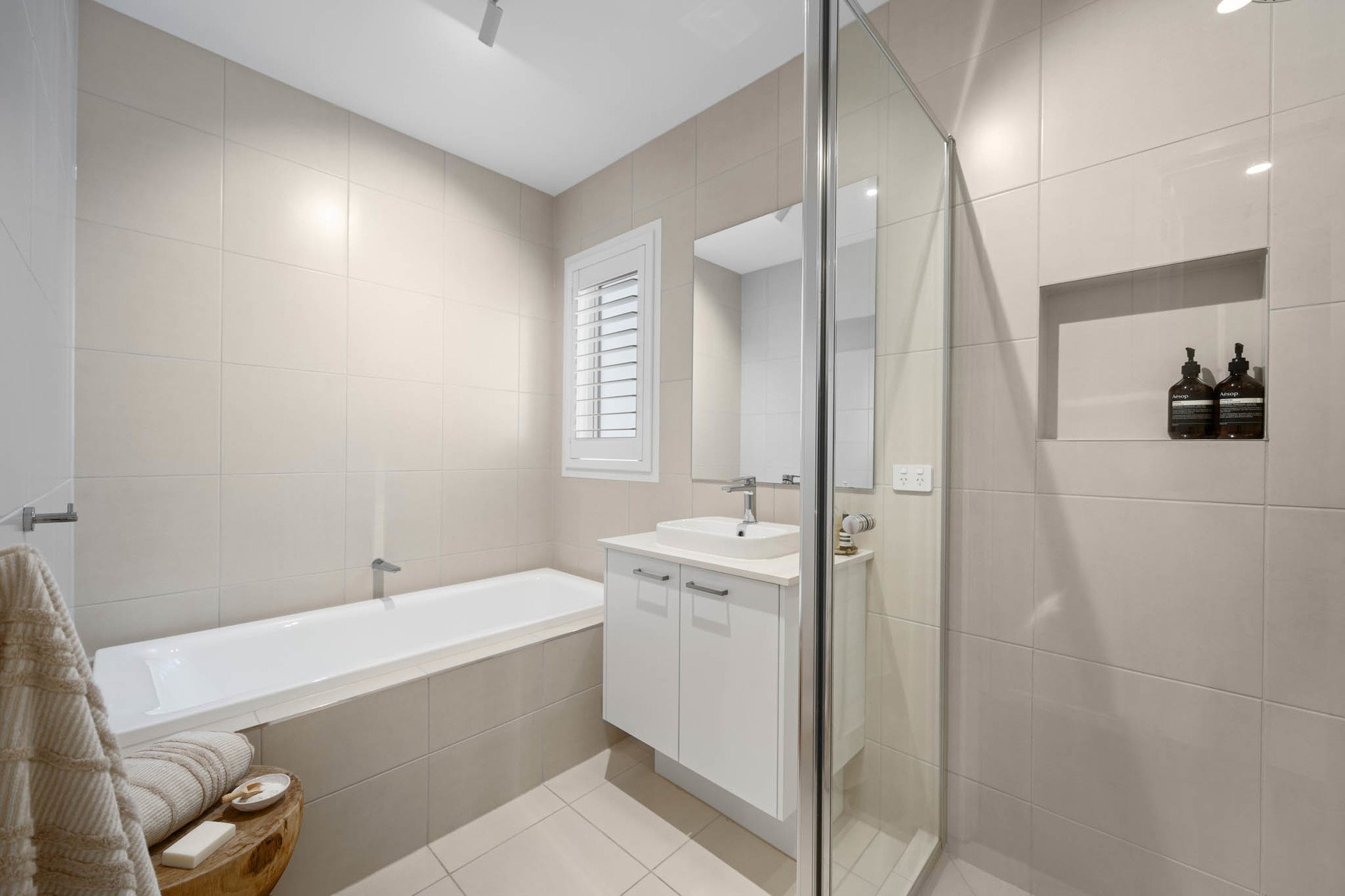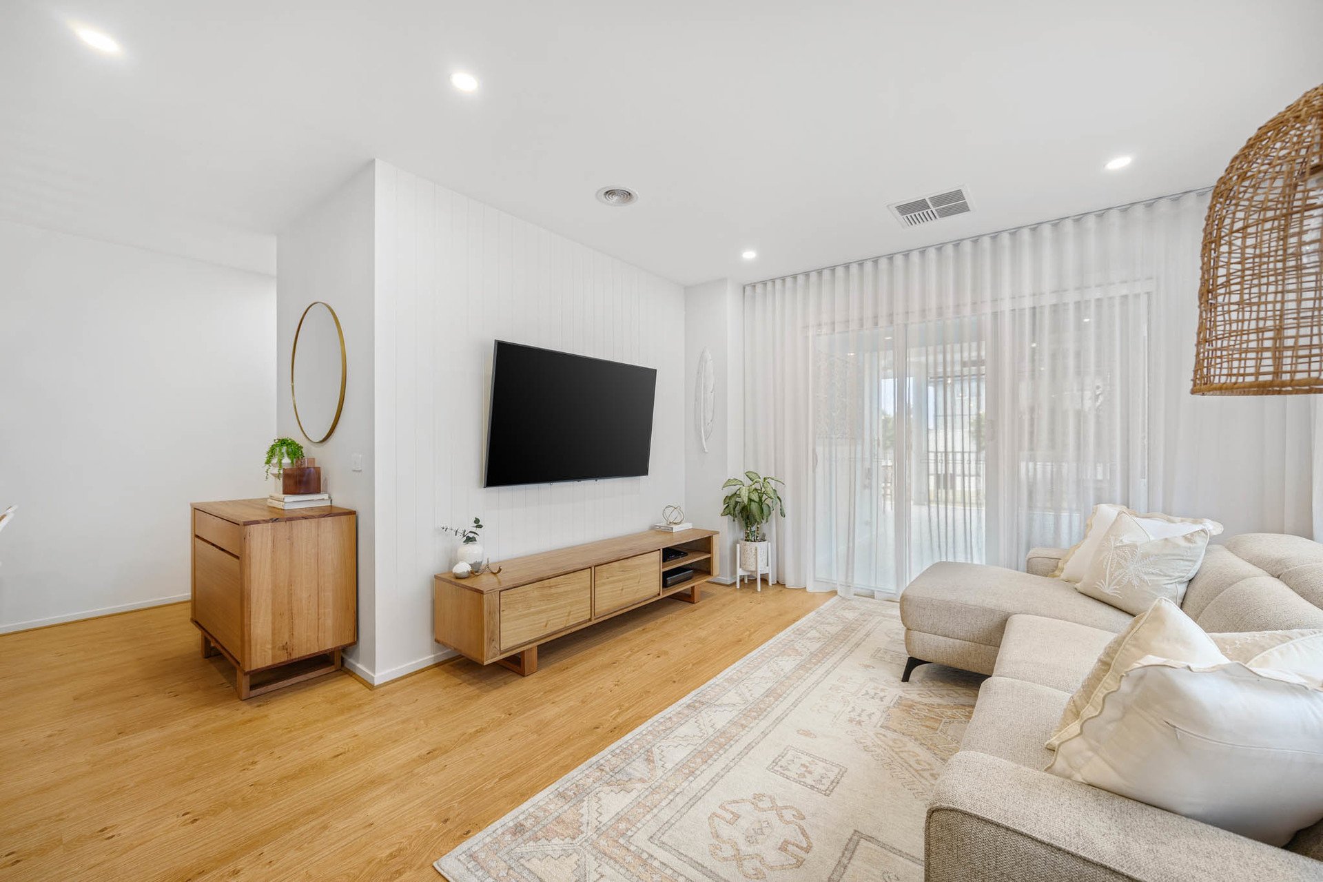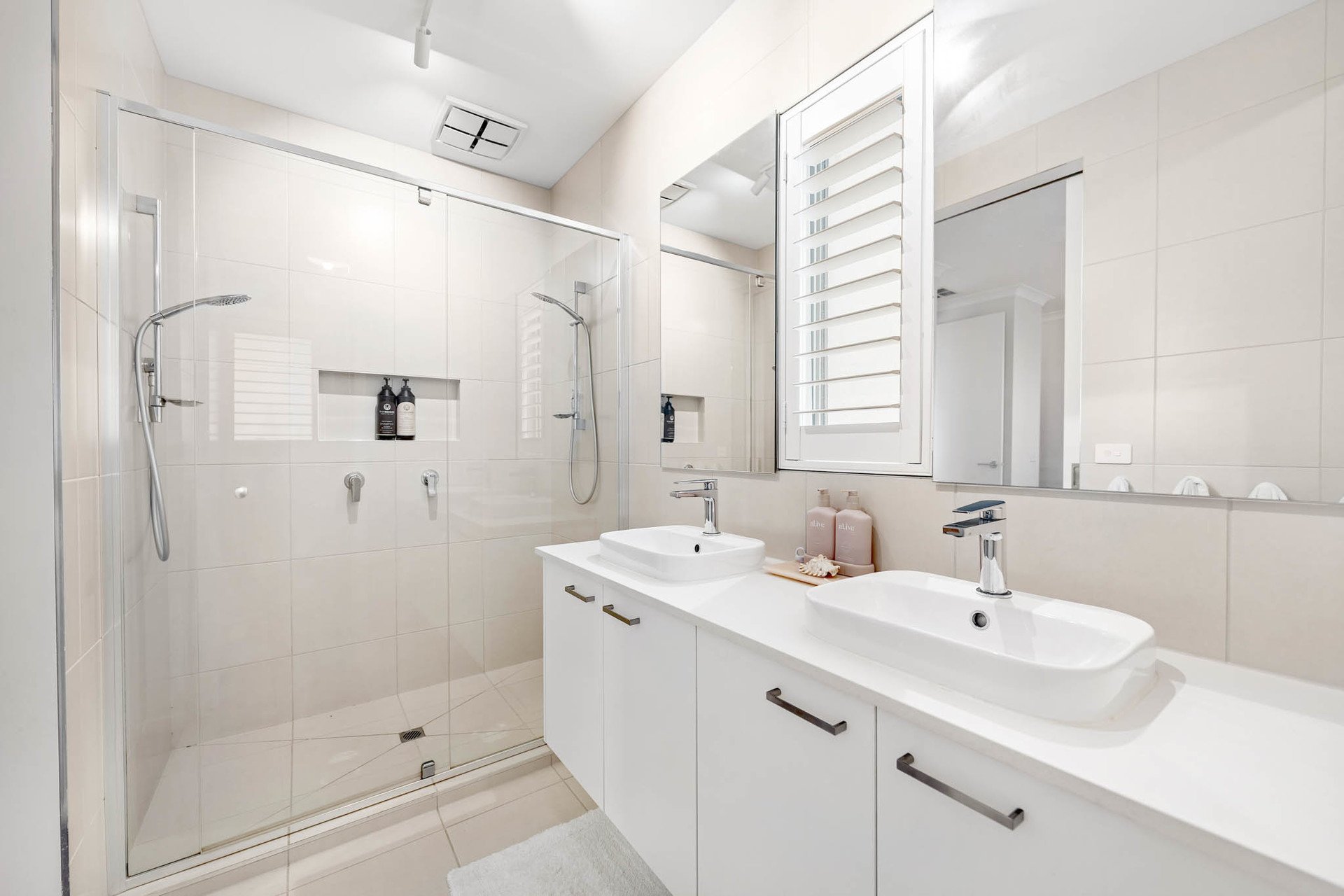 Showcasing striking vertical joinery, a larger statement front door and full landscaping with mature gardens, the home immediately impresses. Sustainable living is assured with solar panels, a Rain Bird smart sprinkler system, and full CCTV security.