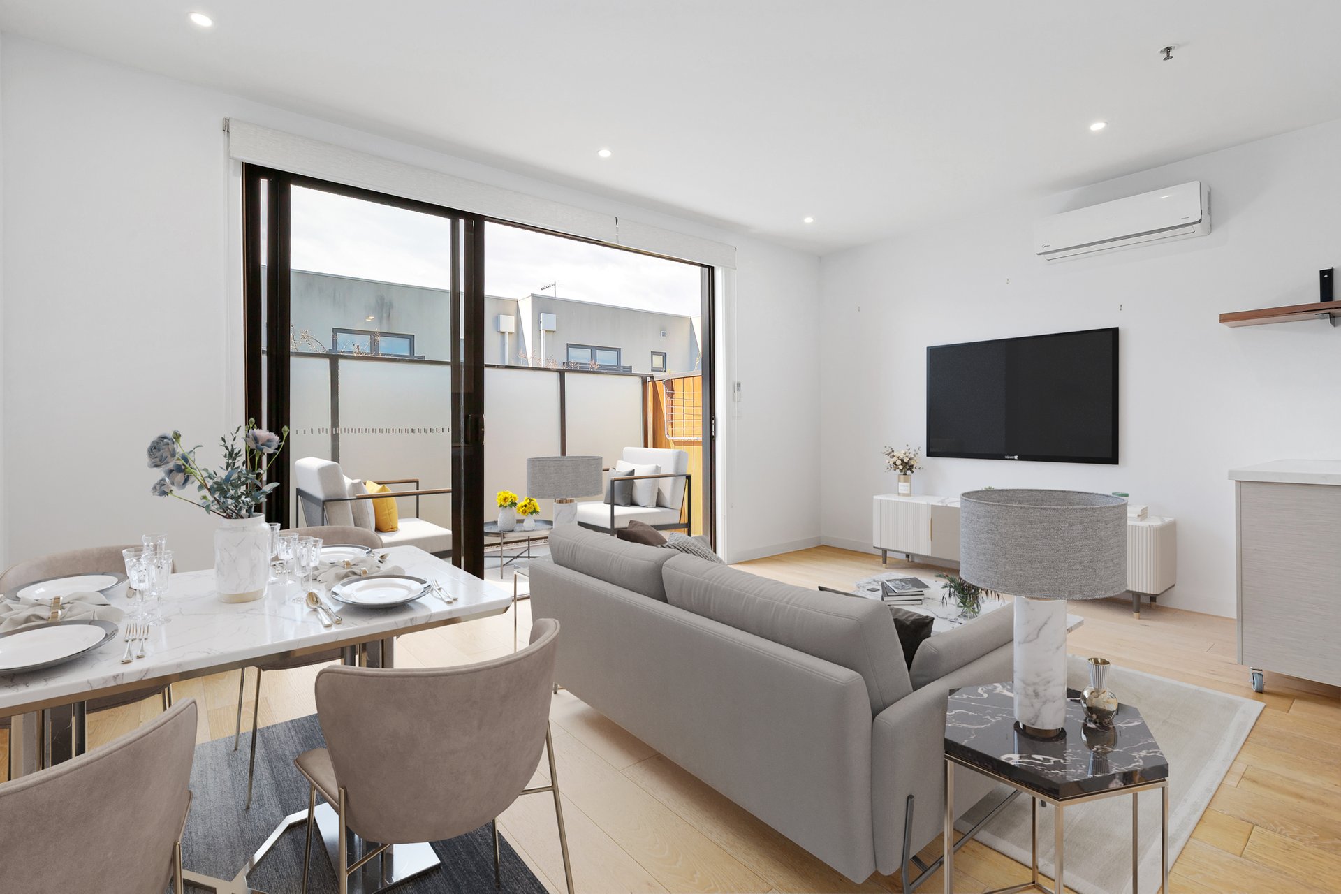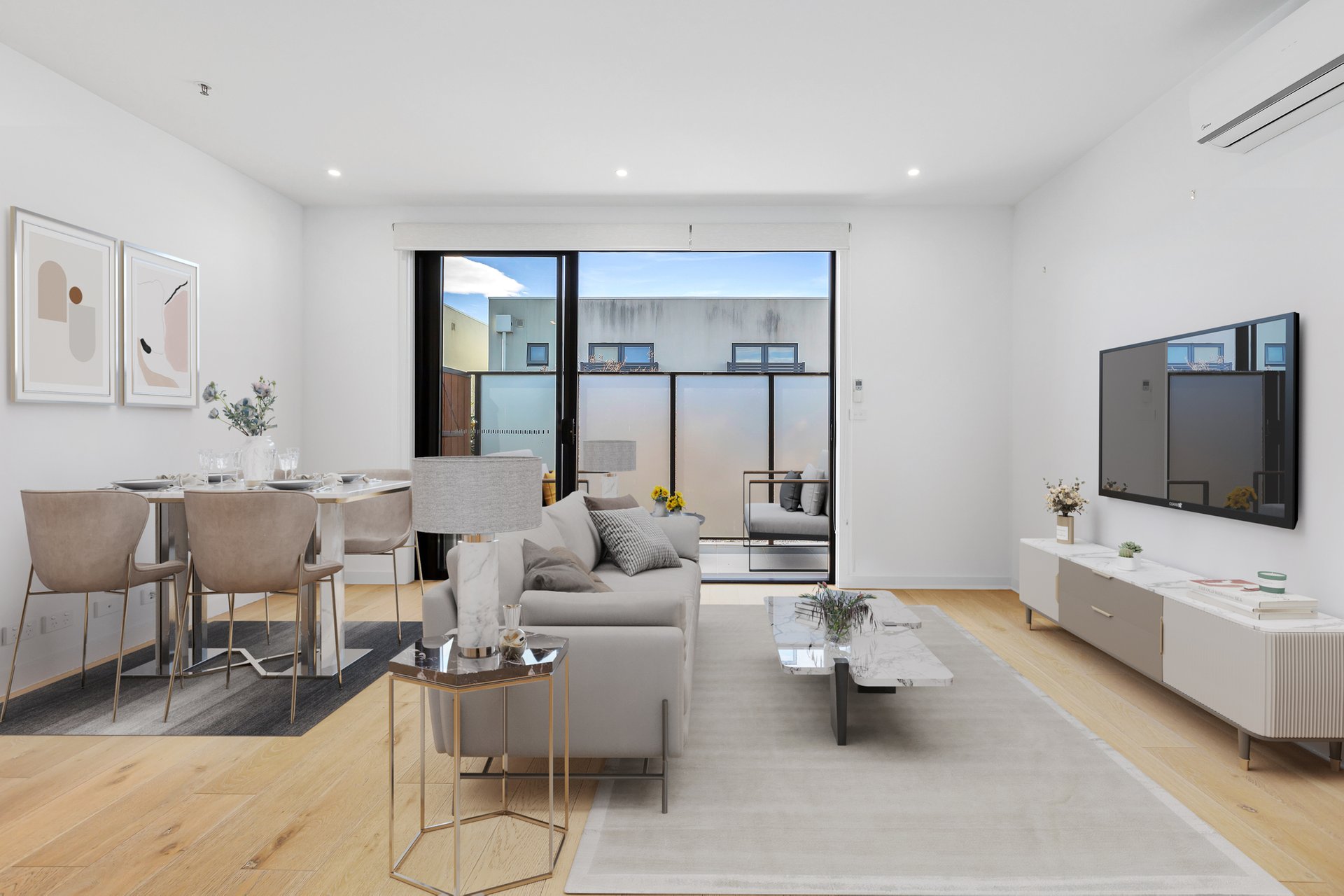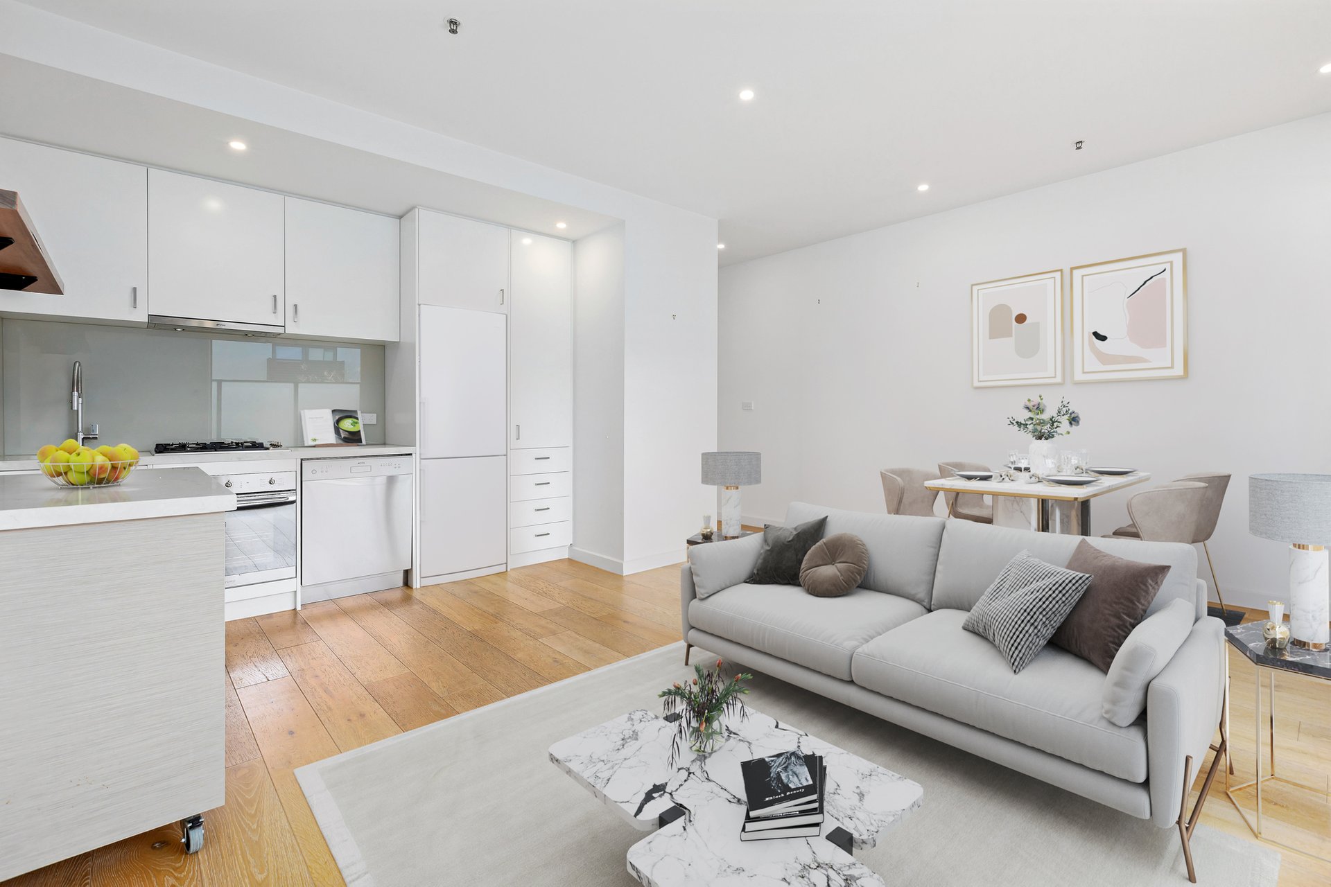 Offering a unique wraparound corridor entry, this thoughtfully designed residence opens into a spacious open-plan kitchen, living and dining area, complemented by sleek timber floors and abundant natural light. The adjoining private balcony provides a tranquil spot to relax or entertain, perfectly extending the living space outdoors.