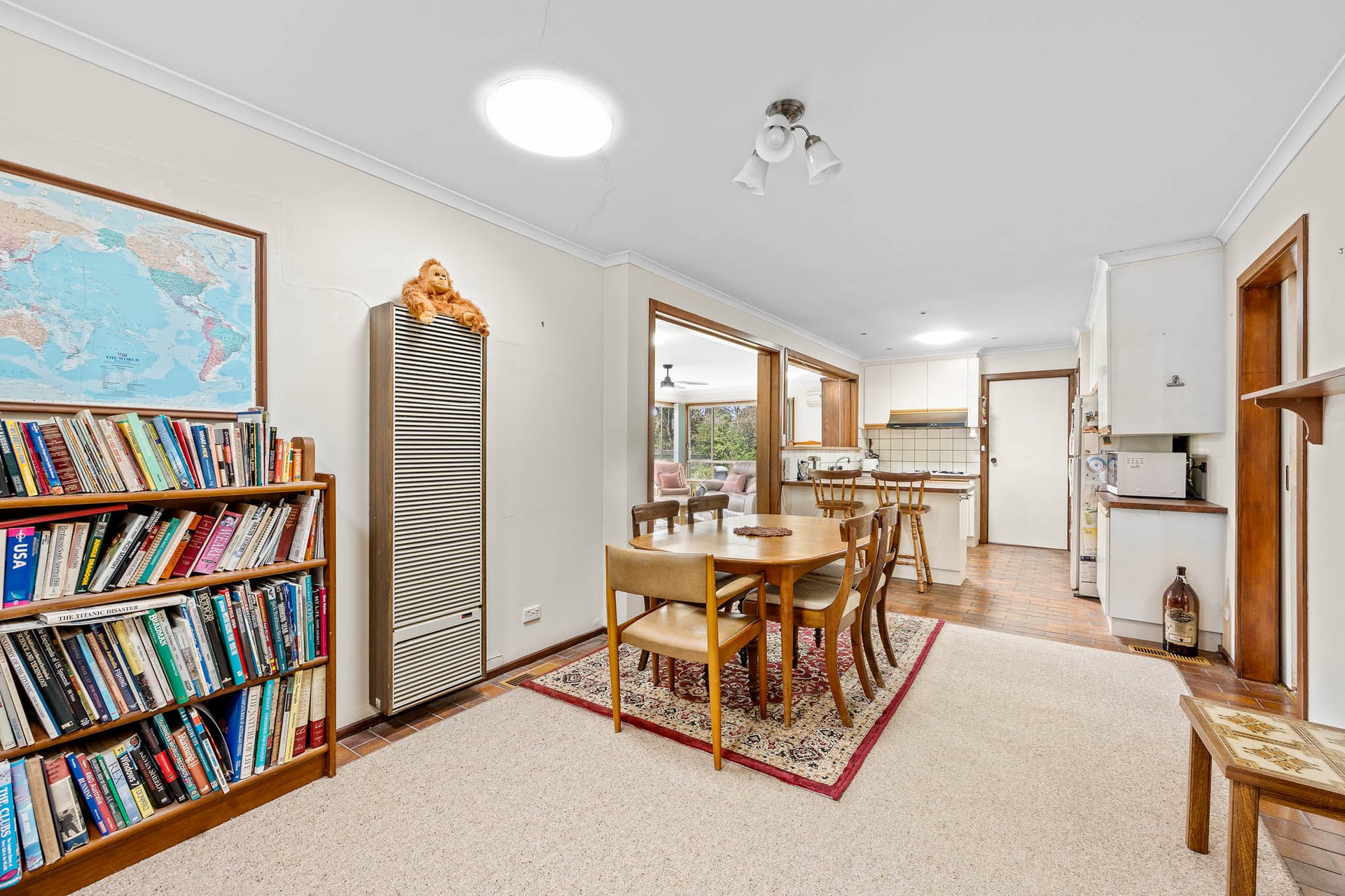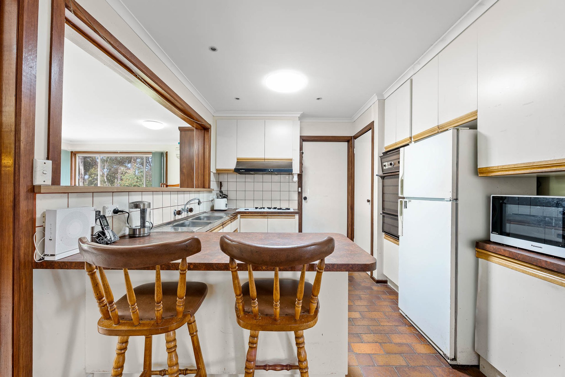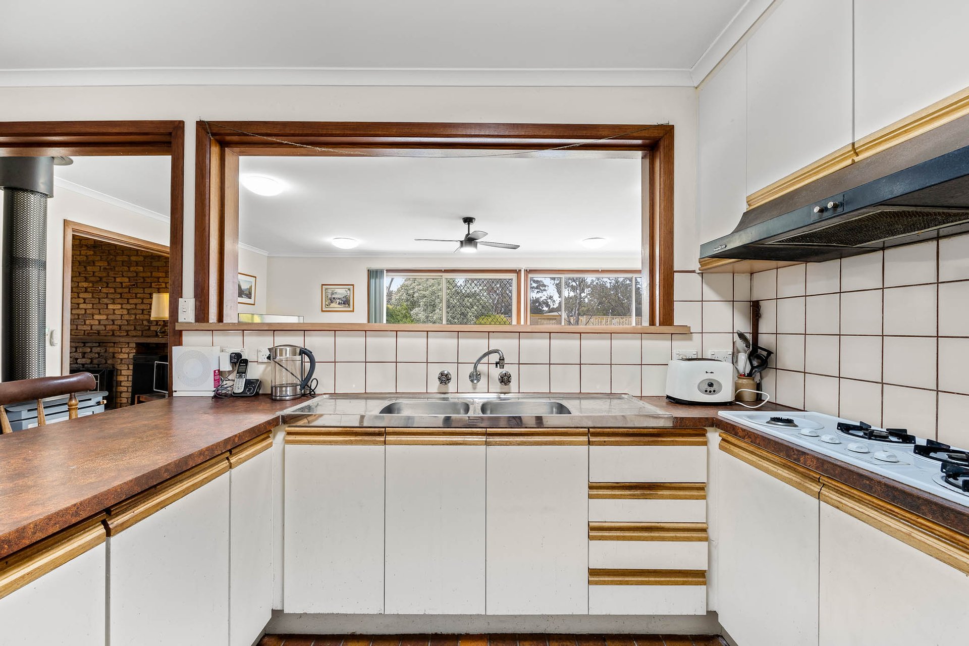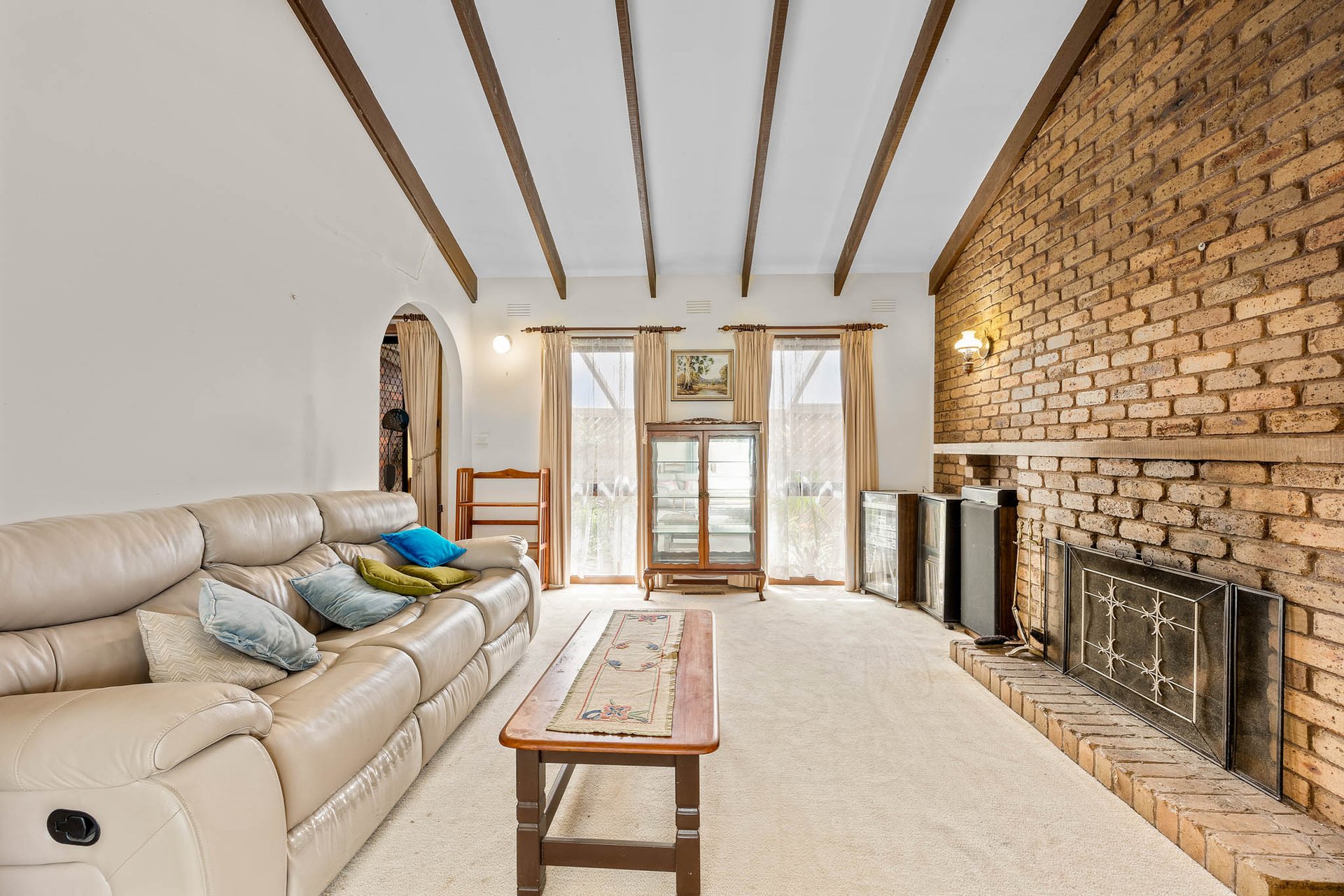 Street appeal starts with a front patio of vintage charm, before interiors reveal a classic sequence of spaces: a lounge anchored by an exposed brick feature wall and open fireplace, a separate living zone, and a dining area adjoining a wonderfully retro kitchen evoking mid-century cool, featuring a breakfast bar, wall oven, and 4-zone cooktop - primed for either a sympathetic refresh or a full contemporary re-imagining.