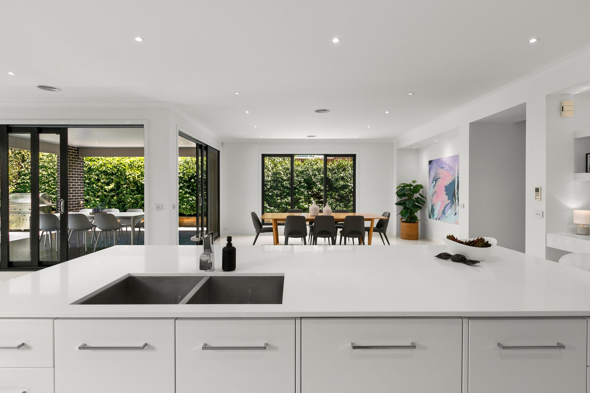 The wide and open entry introduces you to exquisite floor tiles which delivers an immediate statement, as does the private formal lounge which could easily be converted into a 5th bedroom. Step on through and marvel at the natural light and utter size of the central living zone, which has enormous space for dedicated family and dining areas. Incorporated into the main hub is the elegant and aspirational stone kitchen, which shows off with an oversized island bench, butler’s pantry, and top quality appliances including dual ovens.
