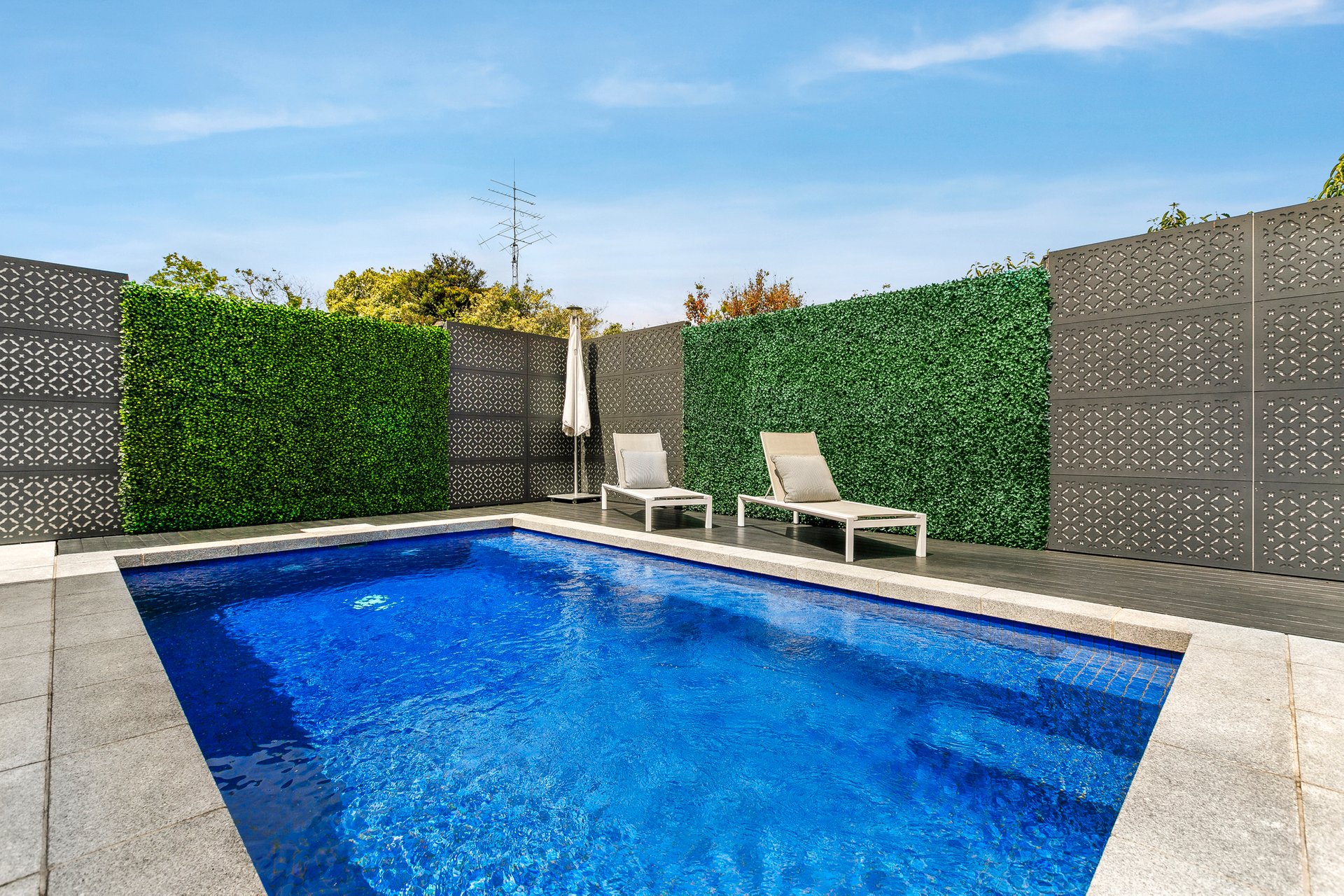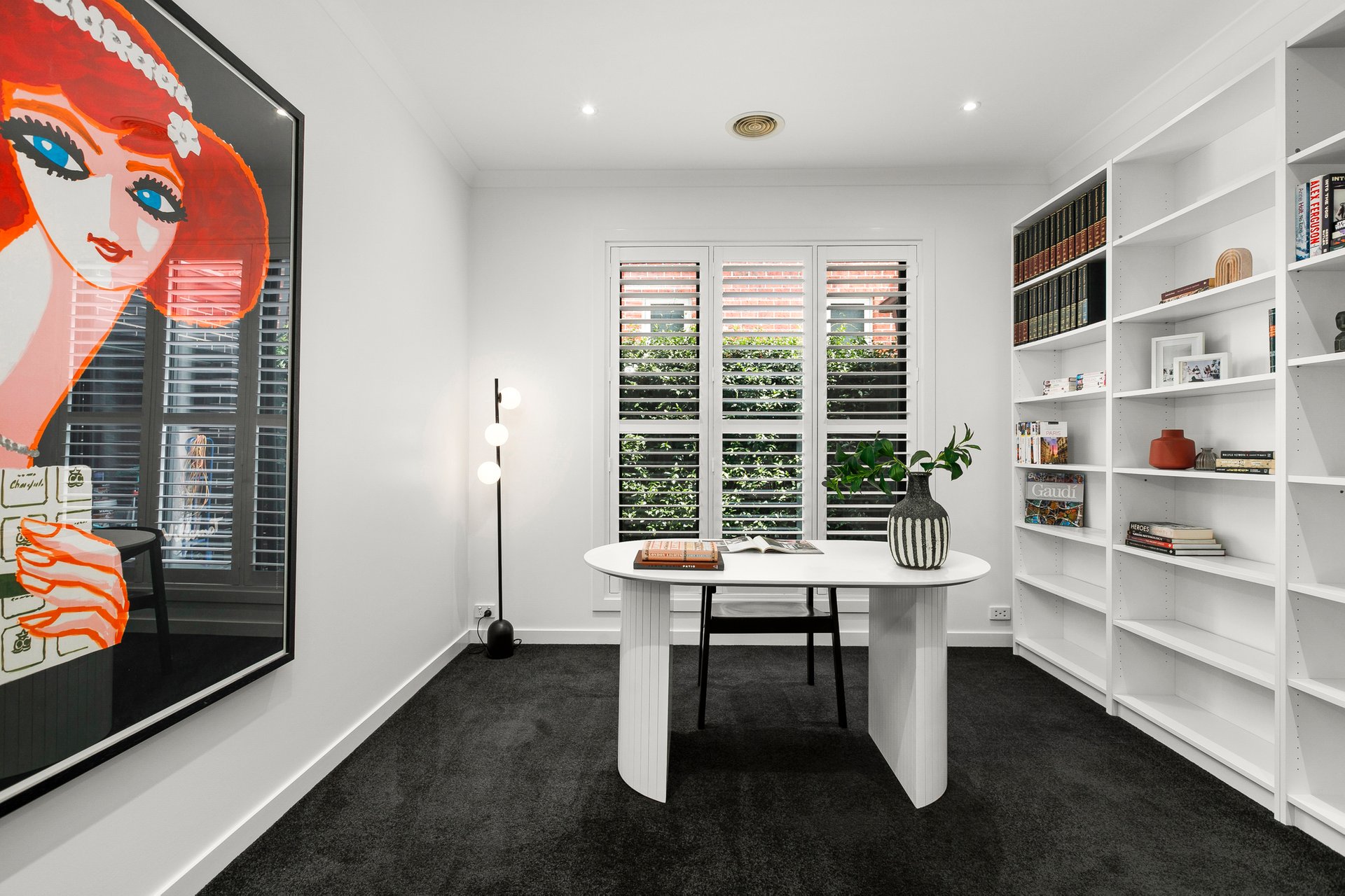 The back area will exceed your summer wishes with a covered entertainer’s deck and solar-heated swimming pool. Other home extras include a designated home office with built-in shelving, large downstairs powder room, spacious laundry, plantation shutters throughout, refrigerated ducted heating and cooling, ducted vacuum, security alarm, heated flooring in bathroom/ensuite, solar hot water, and a double remote garage.