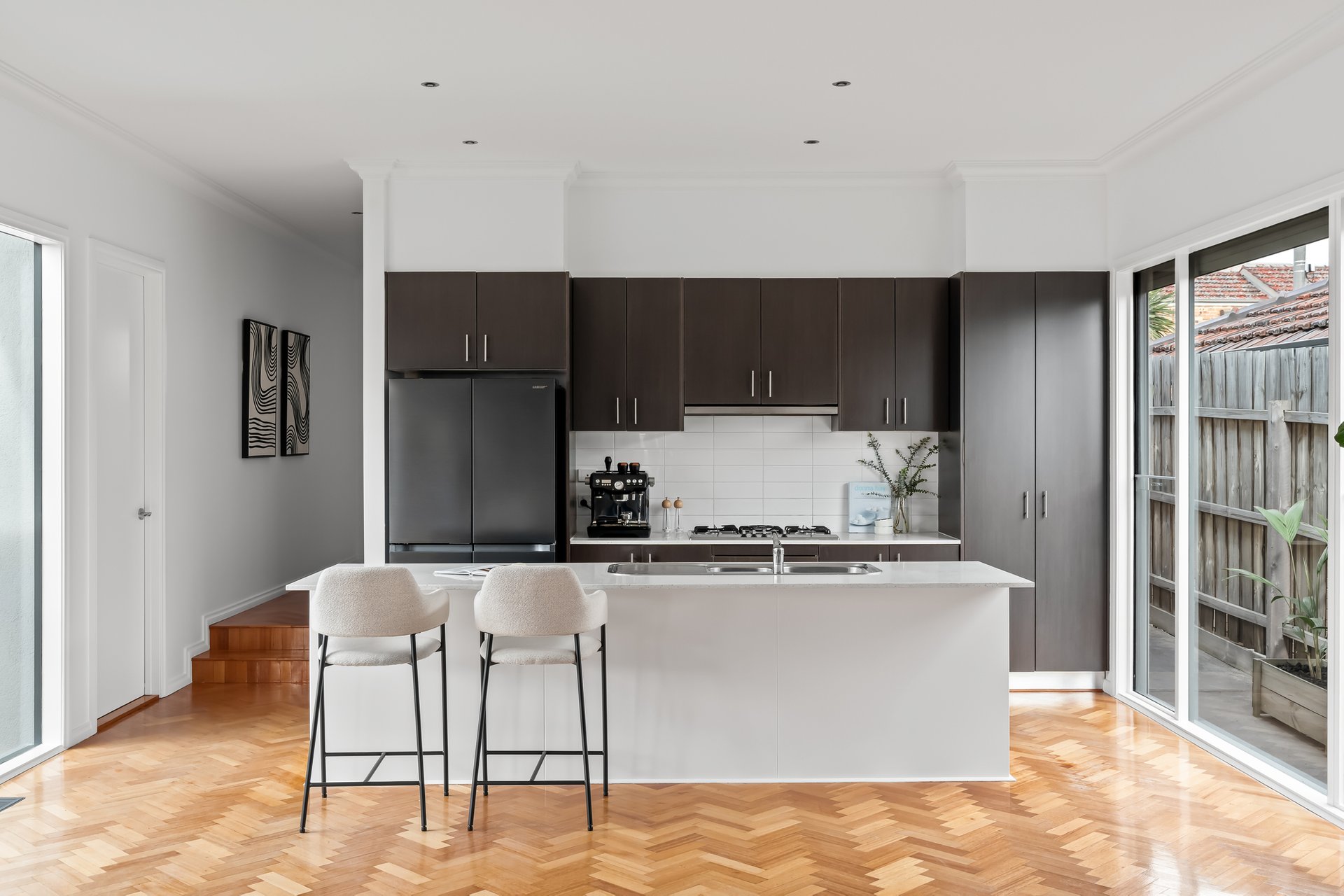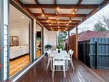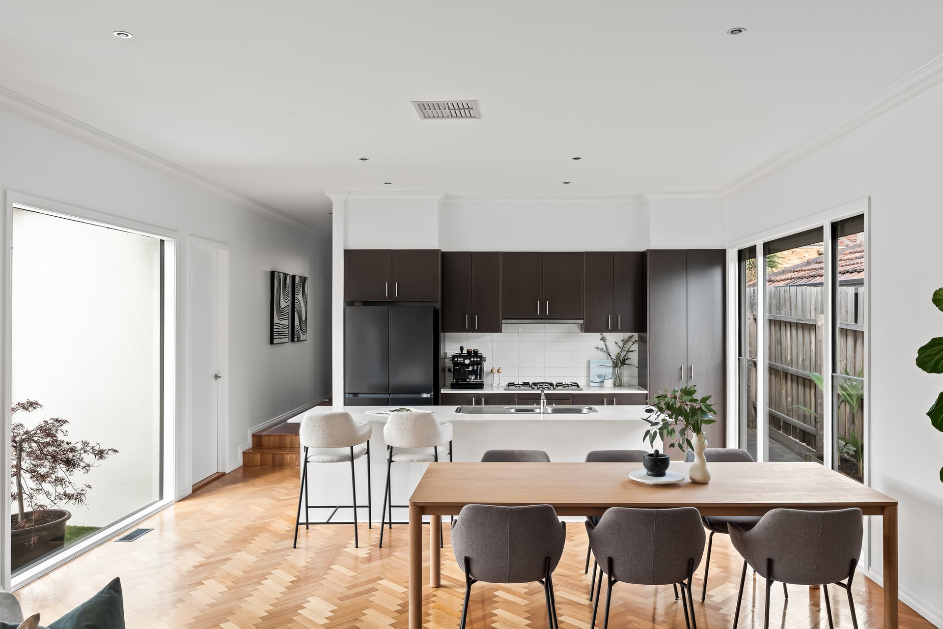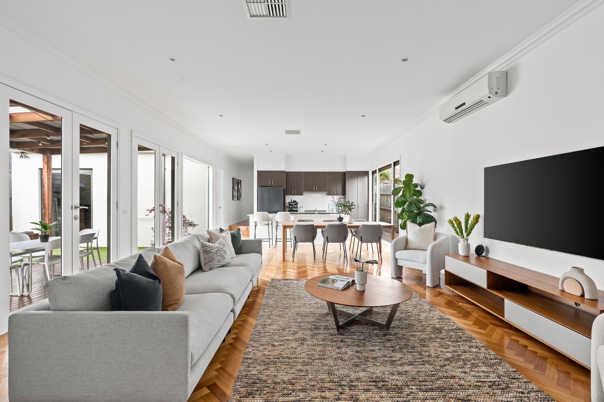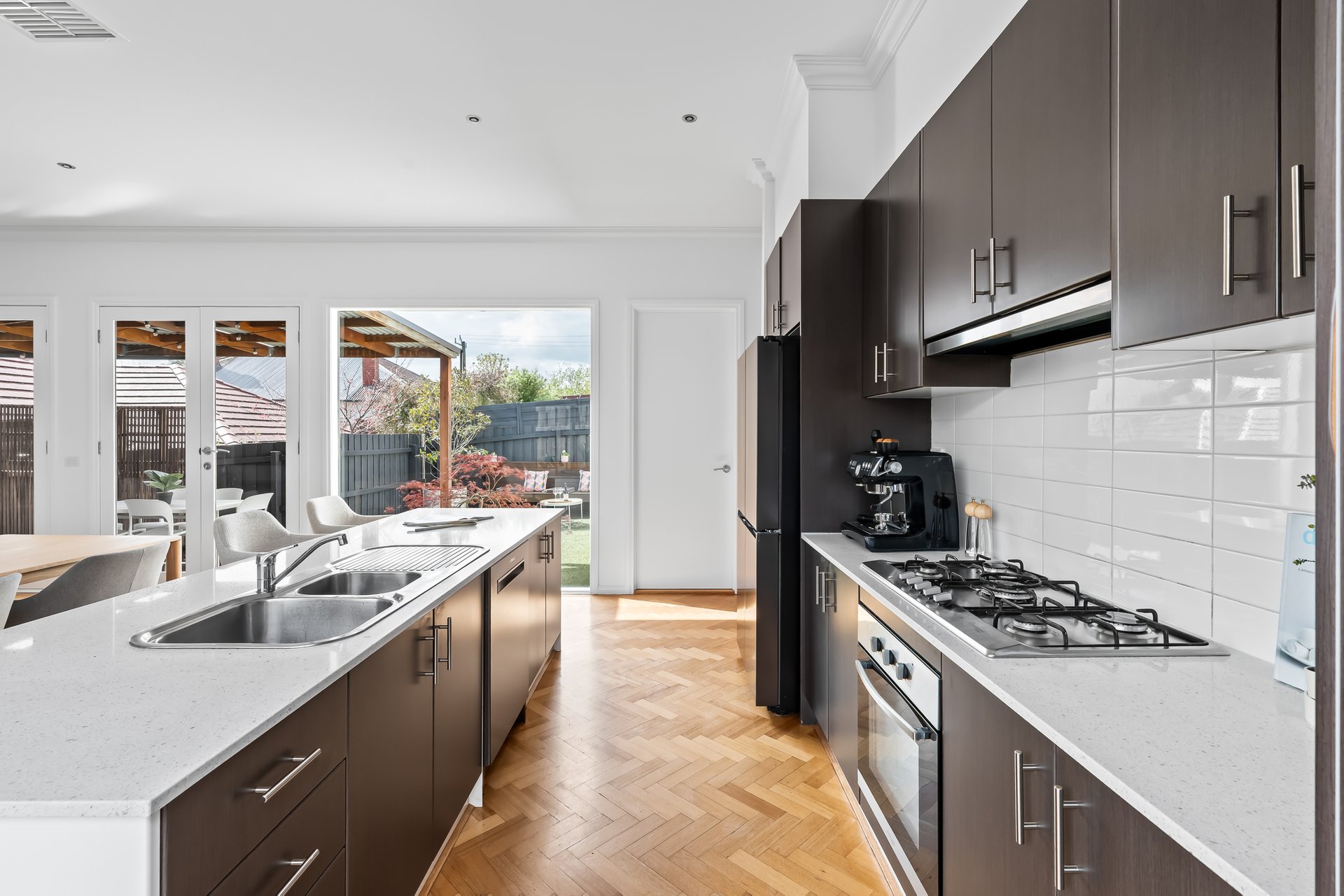 Welcome to this refined family home in Reservoir, where period design and modern luxury come together seamlessly. This beautiful residence offers three well-sized bedrooms, each with built-in robes, while the master suite provides a luxurious walk-in robe and ensuite, ensuring complete privacy and convenience. The expansive open-plan living and dining area, distinguished by a spacious and light filled layout and parquetry flooring, invites you to entertain in style. The kitchen is a culinary haven with state-of-the-art fixtures and thoughtful design, ideal for any cooking enthusiast. Outside, enjoy the undercover entertaining area that sets the stage for alfresco dining or relaxation. The property also features a versatile double garage/studio, offering limitless potential for personalisation and a large 5kw solar system along with three phase power supply. Enjoy elegantly appointed bathrooms, a laundry room with an attached linen closet, air conditioning, and a charming outdoor in-built lounge in the landscaped yard. Positioned in the sought-after Regent location; walking distance to Regent station, Preston Market and within Preston Primary and High school zones, featuring central heating and cooling, electric garage, gate and shutters, plantation shutters in all the bedrooms, this home offers a blend of modern luxury and period elegance, perfect for those seeking a sophisticated living experience.