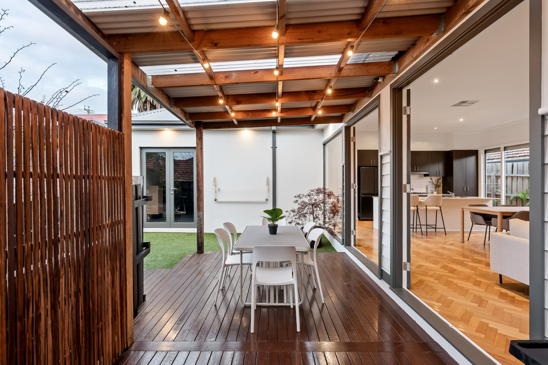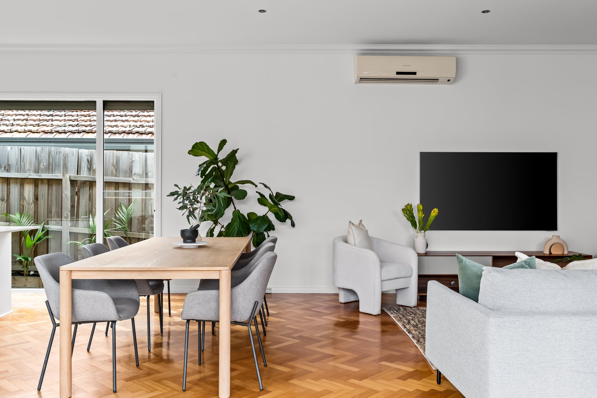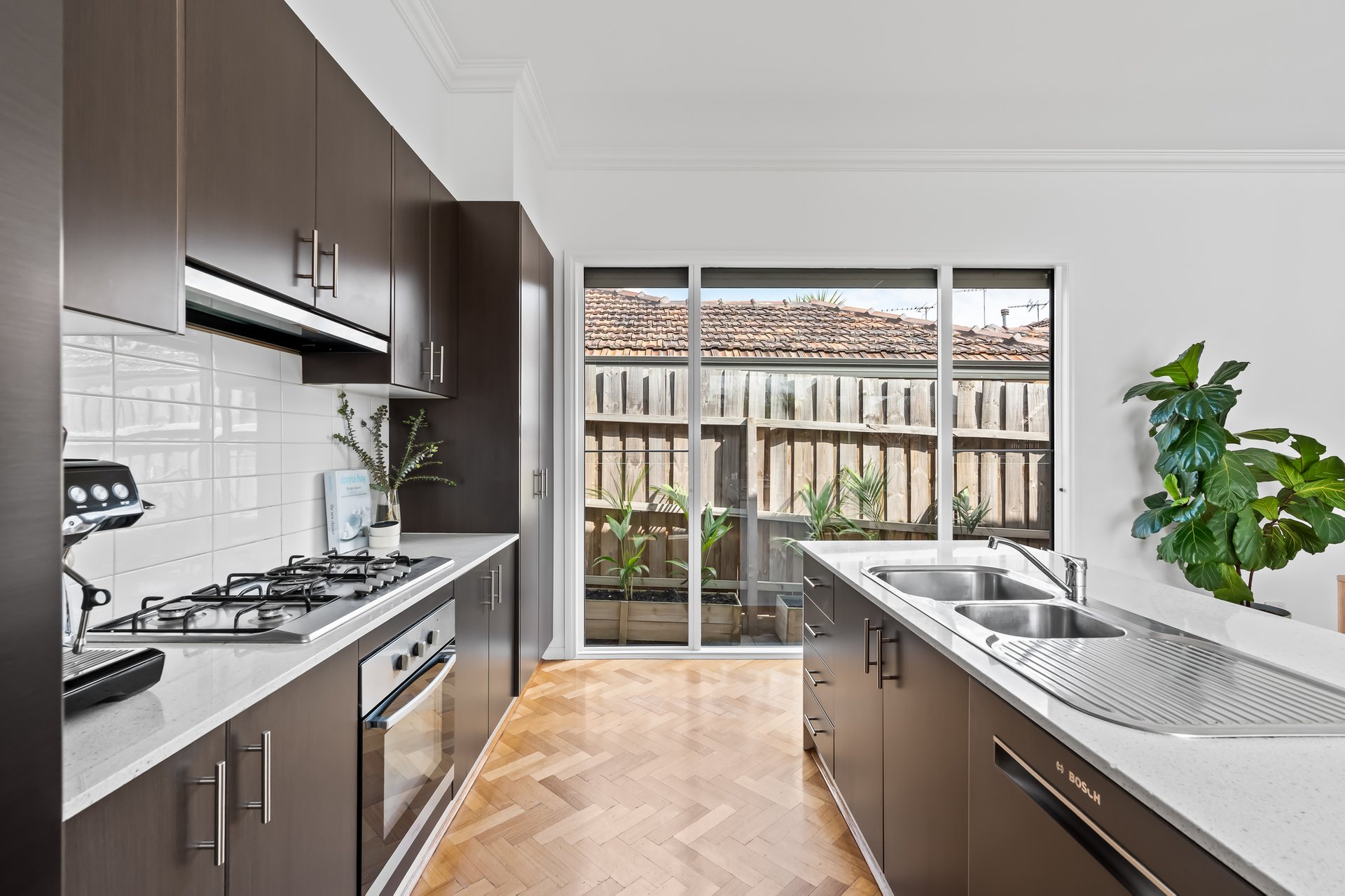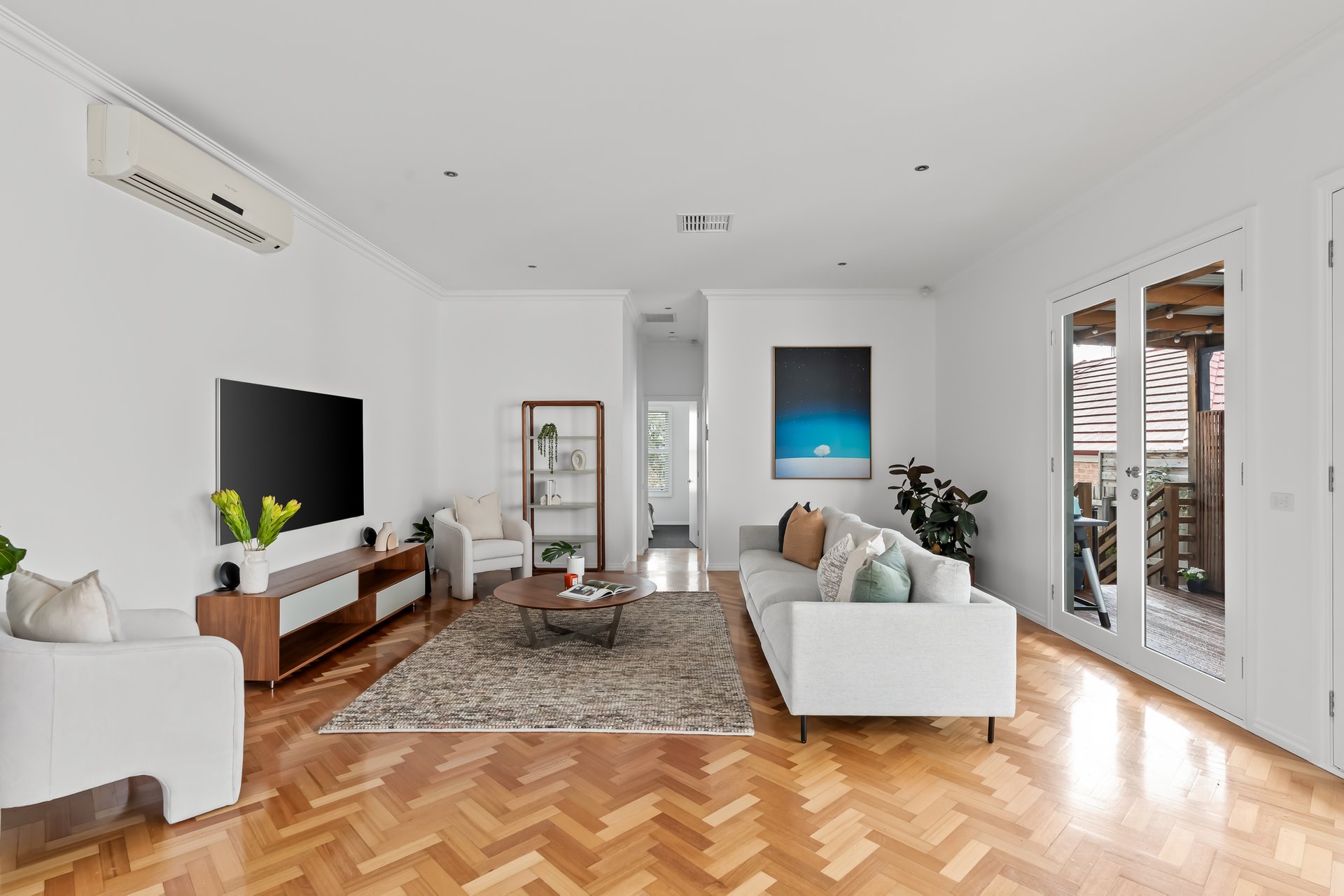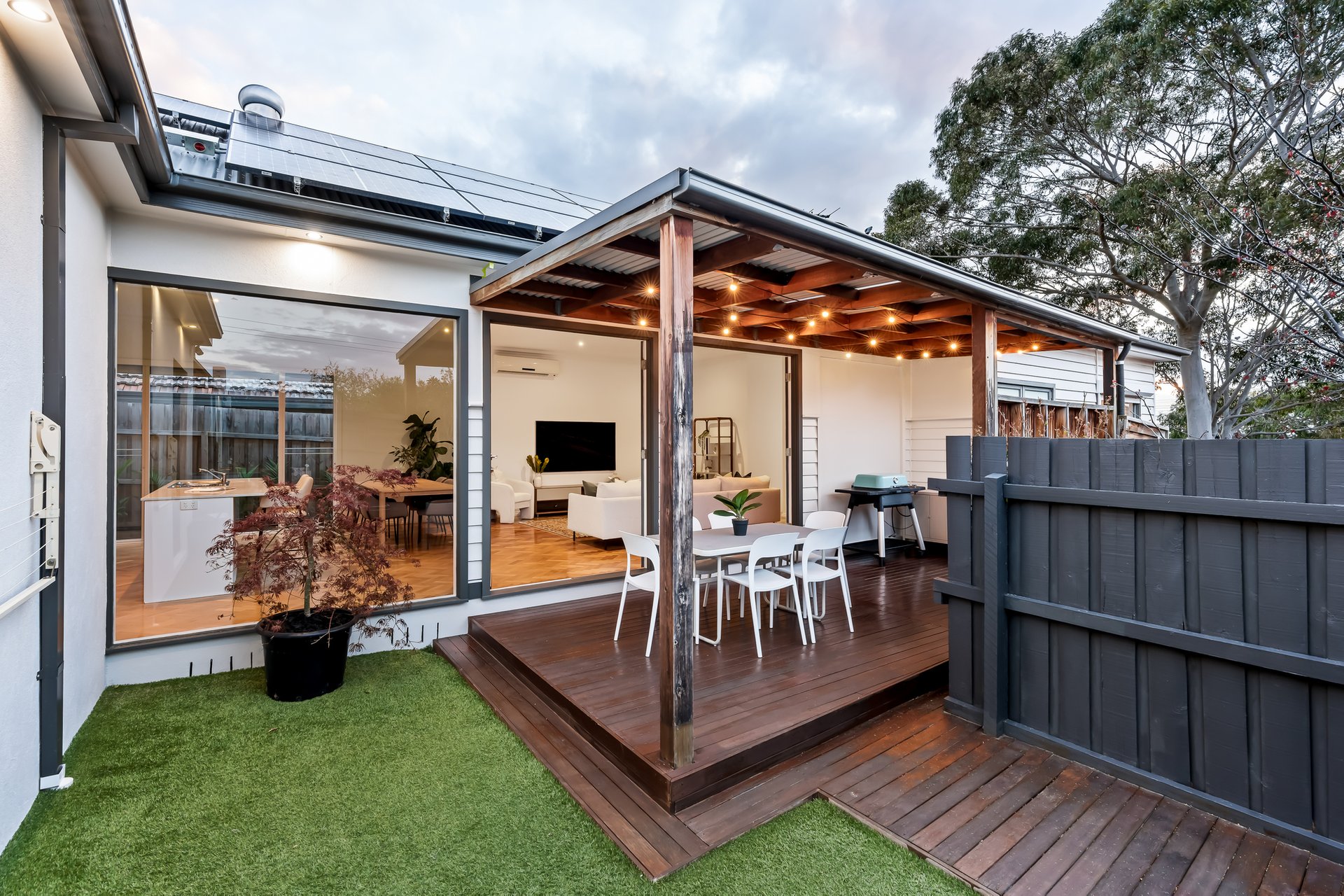 Welcome to this refined family home in Reservoir, where period design and modern luxury come together seamlessly. This beautiful residence offers three well-sized bedrooms, each with built-in robes, while the master suite provides a luxurious walk-in robe and ensuite, ensuring complete privacy and convenience. The expansive open-plan living and dining area, distinguished by a spacious and light filled layout and parquetry flooring, invites you to entertain in style. The kitchen is a culinary haven with state-of-the-art fixtures and thoughtful design, ideal for any cooking enthusiast. Outside, enjoy the undercover entertaining area that sets the stage for alfresco dining or relaxation. The property also features a versatile double garage/studio, offering limitless potential for personalisation and a large 5kw solar system along with three phase power supply. Enjoy elegantly appointed bathrooms, a laundry room with an attached linen closet, air conditioning, and a charming outdoor in-built lounge in the landscaped yard. Positioned in the sought-after Regent location; walking distance to Regent station, Preston Market and within Preston Primary and High school zones, featuring central heating and cooling, electric garage, gate and shutters, plantation shutters in all the bedrooms, this home offers a blend of modern luxury and period elegance, perfect for those seeking a sophisticated living experience.