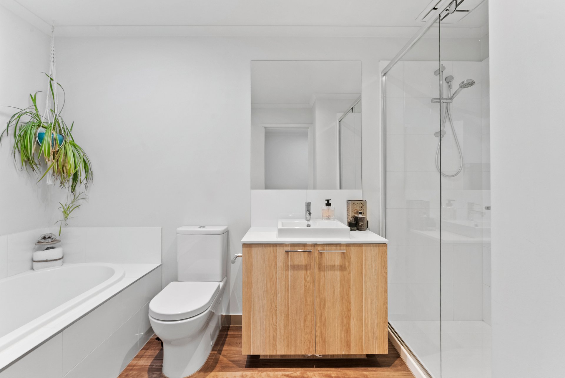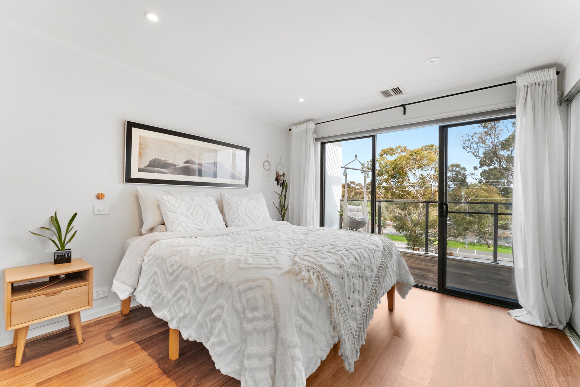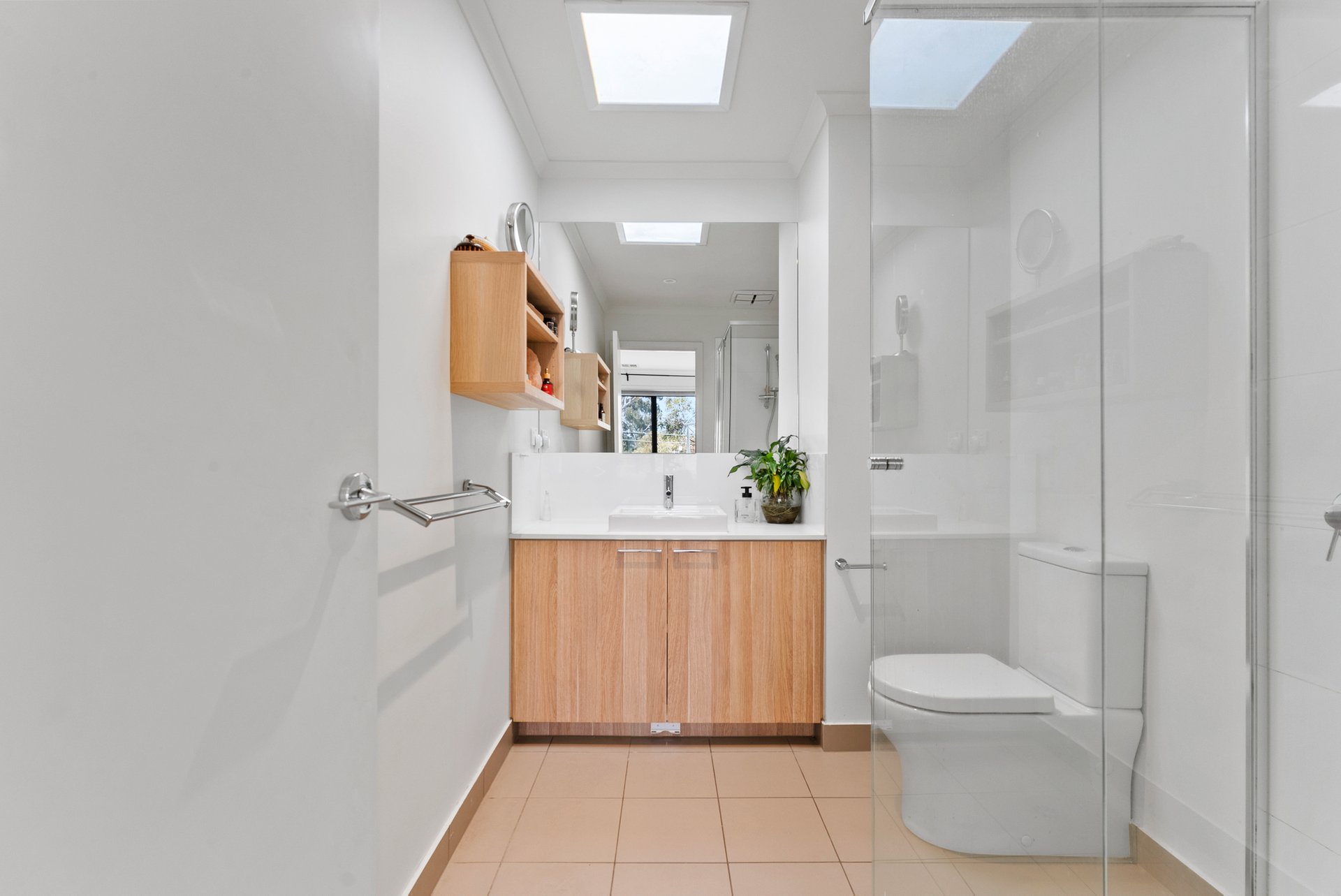 Comprising three generous bedrooms, each with built-in robes, natural light flows throughout the home, enhanced by three skylights on the top floor. The master suite features its own ensuite and private balcony, while the main bathroom includes both a bathtub and separate shower for everyday comfort. A third bathroom adds further flexibility for families or guests.