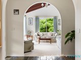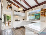 The north-facing living zones is bathed in natural light and enhanced by vaulted ceilings that create an impressive sense of space and openness. The kitchen's charming bay window frames serene treetop and bay aspects, making it the heart of the home.