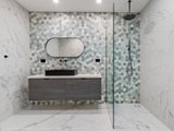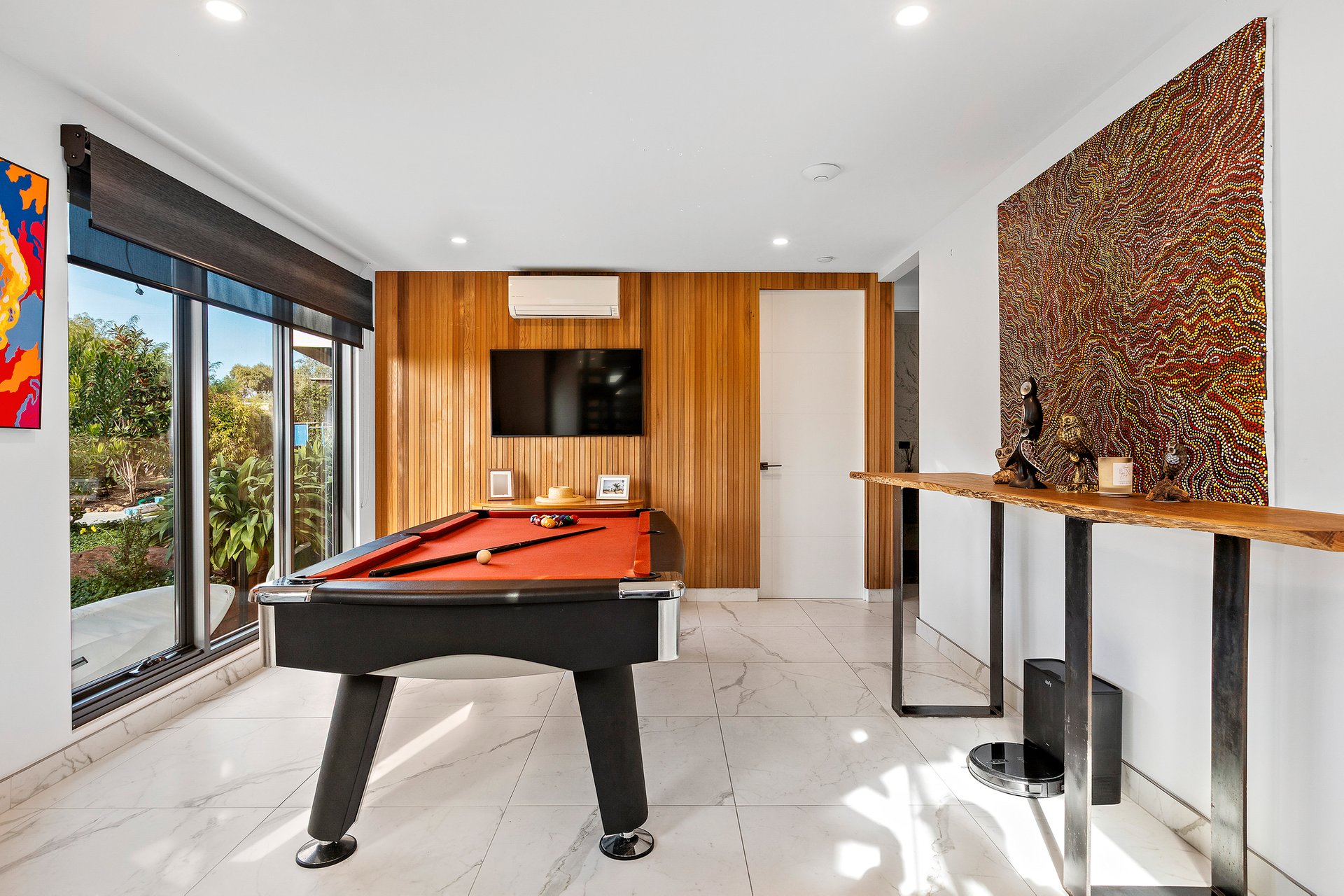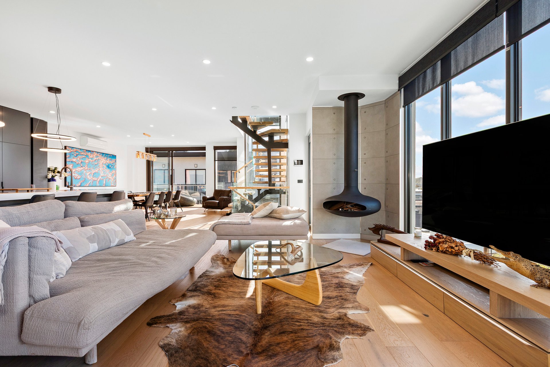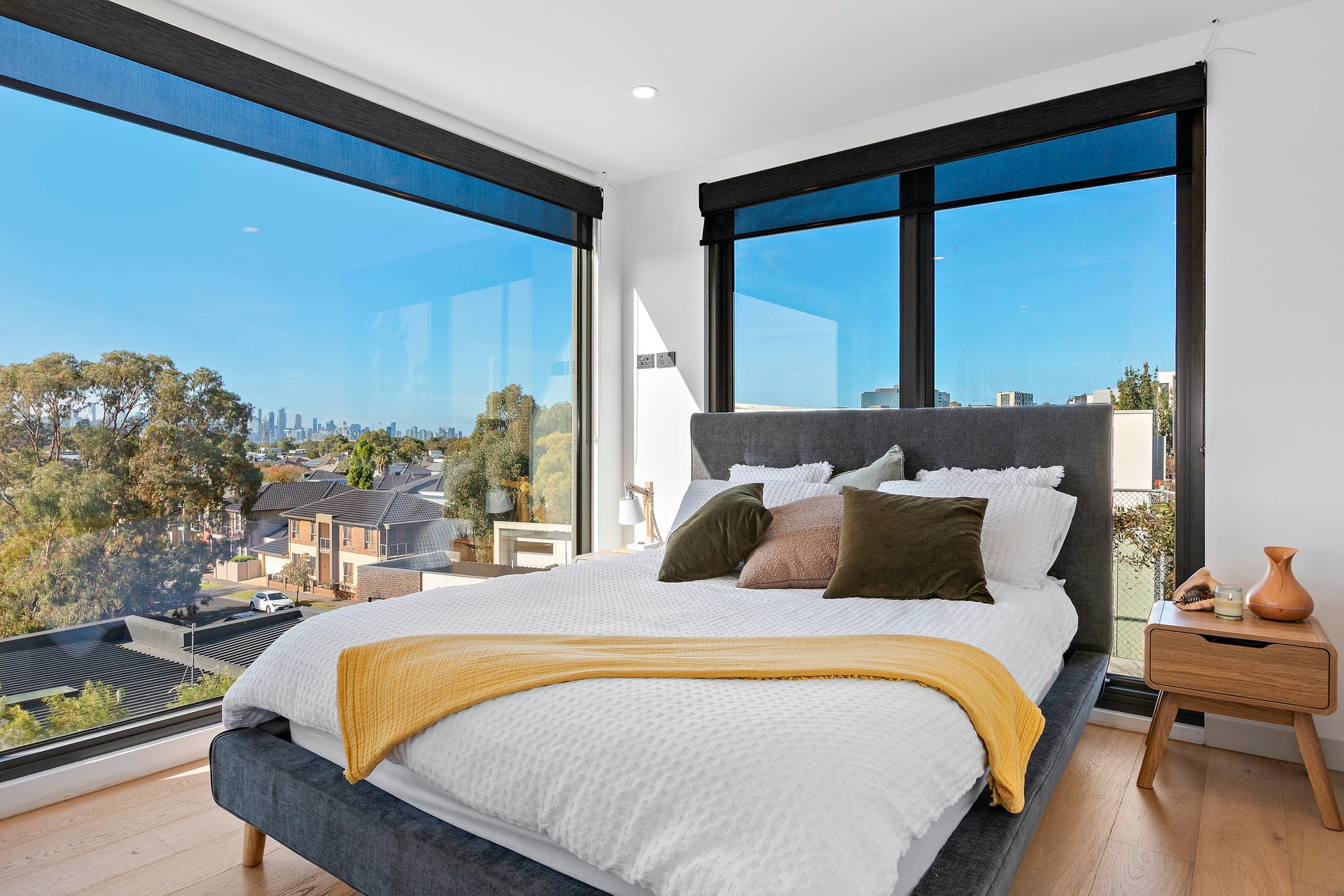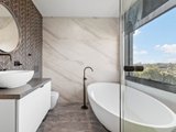The open-plan living and dining area is filled with natural light and panoramic views of the Melbourne city skyline, while the sleek kitchen comes equipped with quality appliances and ample storage. Step outside to the expansive decked entertaining zone, where you'll find a built-in spa bath and outdoor shower - the perfect place to relax and unwind in total privacy.