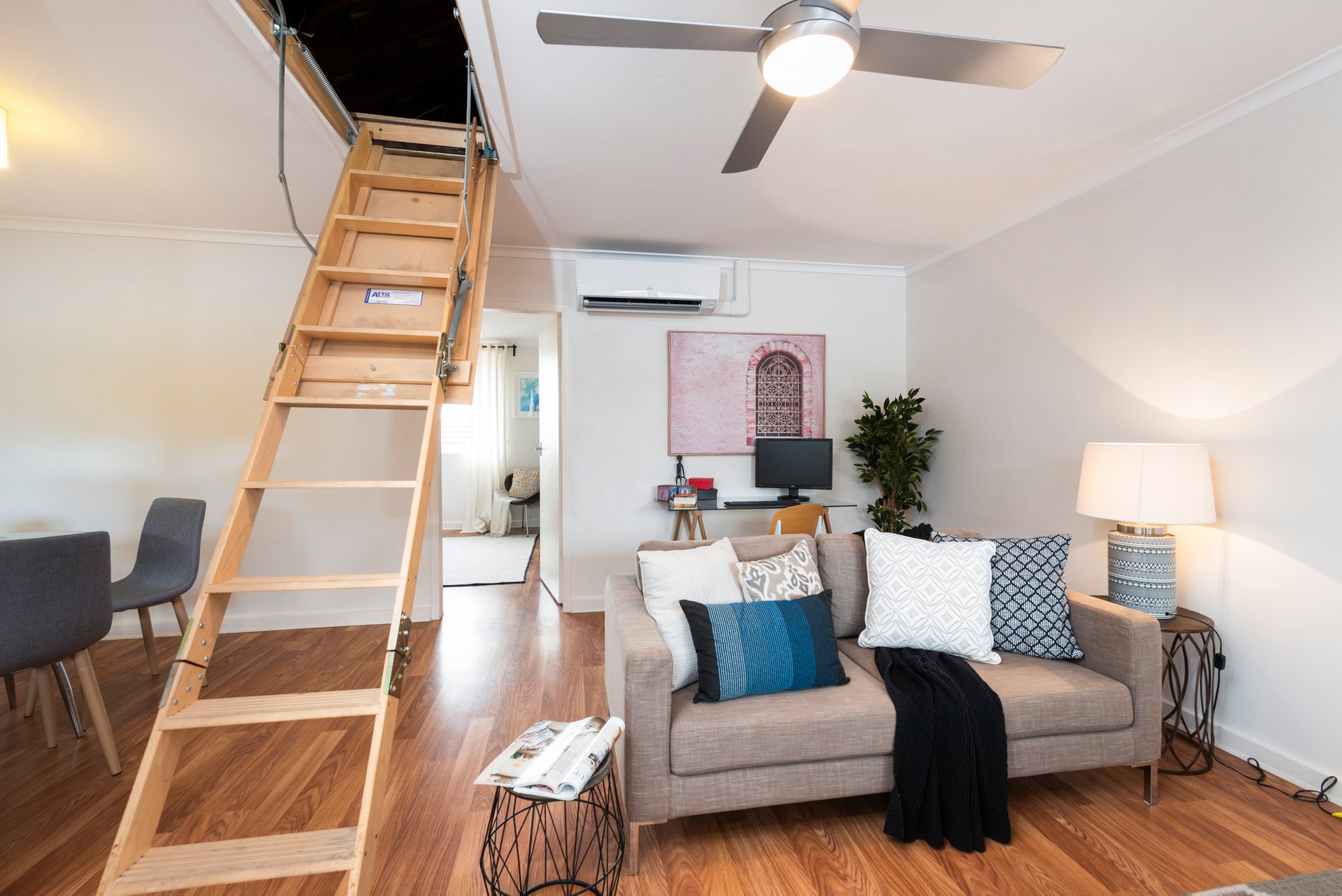 Take advantage of a wealth of living highlights which include generous central living with designated spaces for lounge and dining, reimagined modern kitchen with soft-closing drawers and stainless steel appliances, light-filled bedroom with walk-in robe storage, modern and bright bathroom with an immaculate presentation and laundry facilities, huge attic storage (accessed via the living zone), reverse cycle heating and cooling, ceiling fans, remote control lighting, and undercover car space on title via security entry. Double-glazed windows throughout the apartment provide excellent insulation for both sound and temperature, ensuring year-round comfort and peace and quiet.