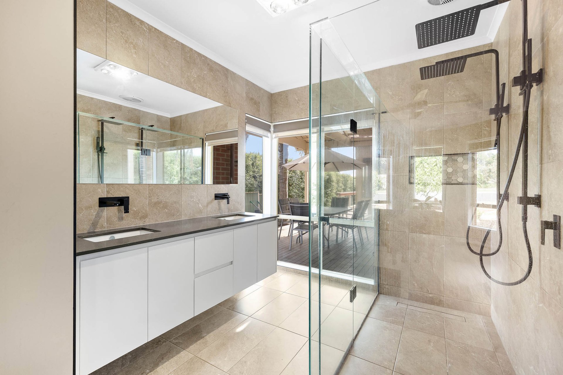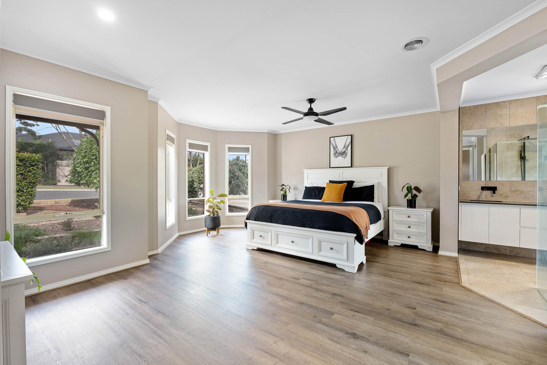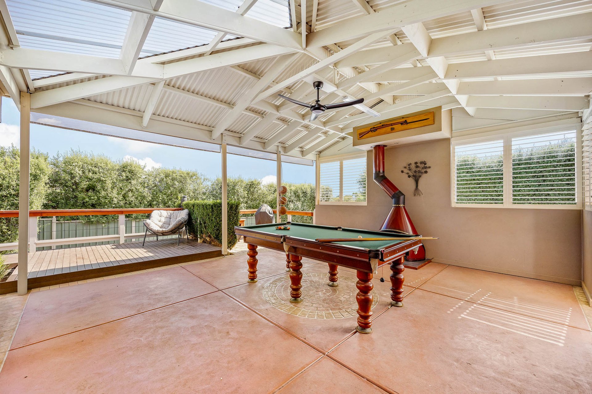 Entertaining extends with purpose to a substantial alfresco domain, semi-enclosable with white plantation shutters and bistro blinds and warmed by a Royale fireplace. The north-facing rear yard captures natural light throughout the day and includes a sun deck, fire pit area, and a 2nd covered entertaining space, all set within low-maintenance 850m2 (approx.) landscaped grounds offering blissful privacy.