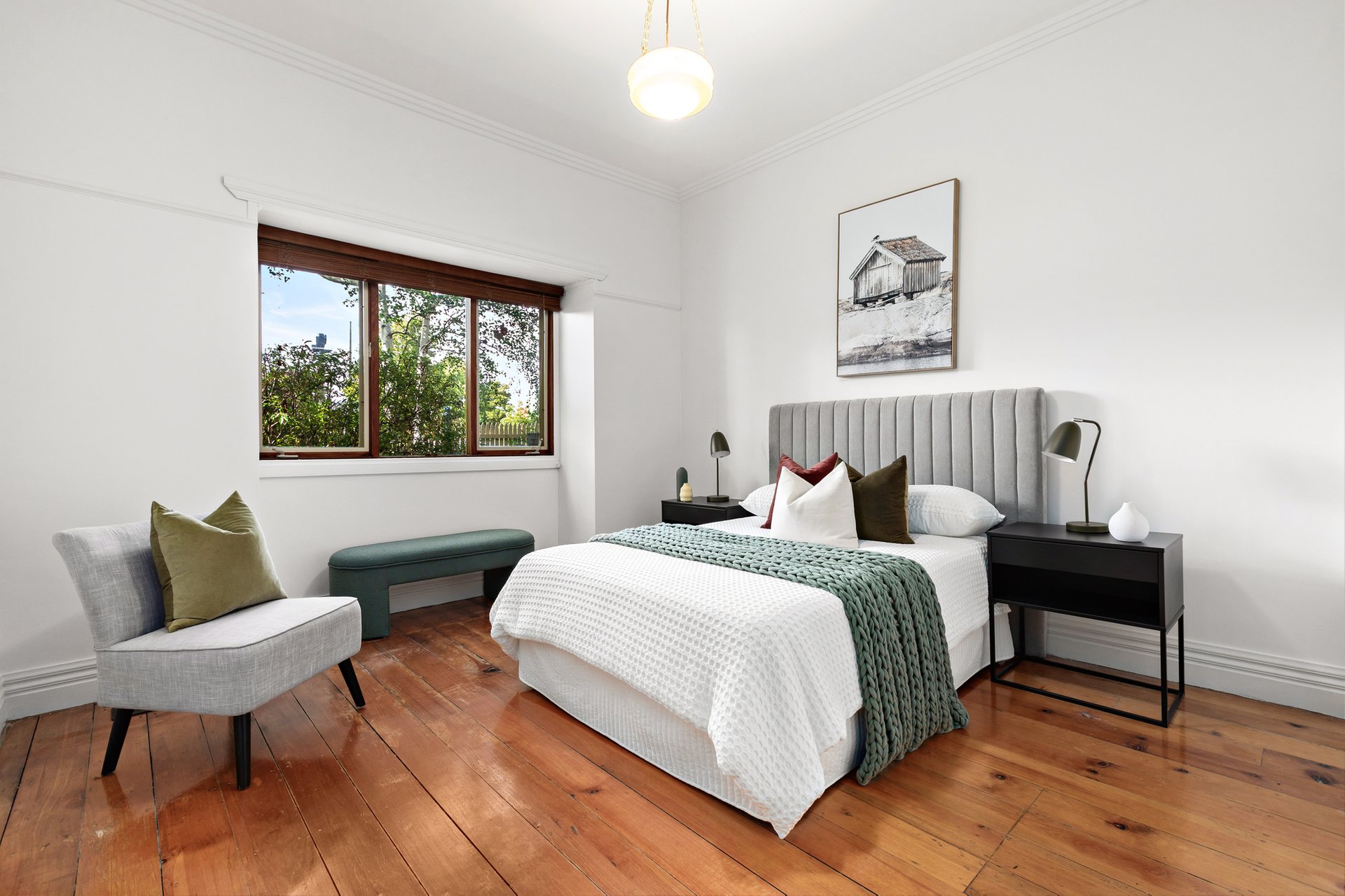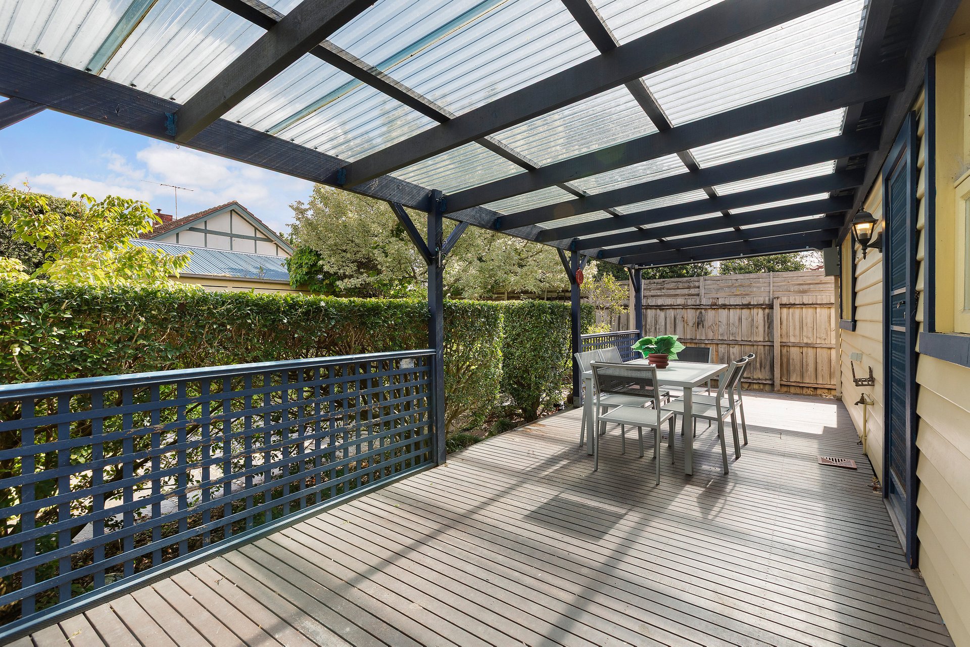 All of the bedrooms are equipped with built-in robes including the generous main bedroom, meanwhile the bathroom offers retro allure with a clawfoot bathtub and separate powder room. Also embrace a European laundry, ducted heating, sizeable covered entertainer’s deck at the rear which leads to a private and established garden, additional garden space, and double garage (via Bishop Street).