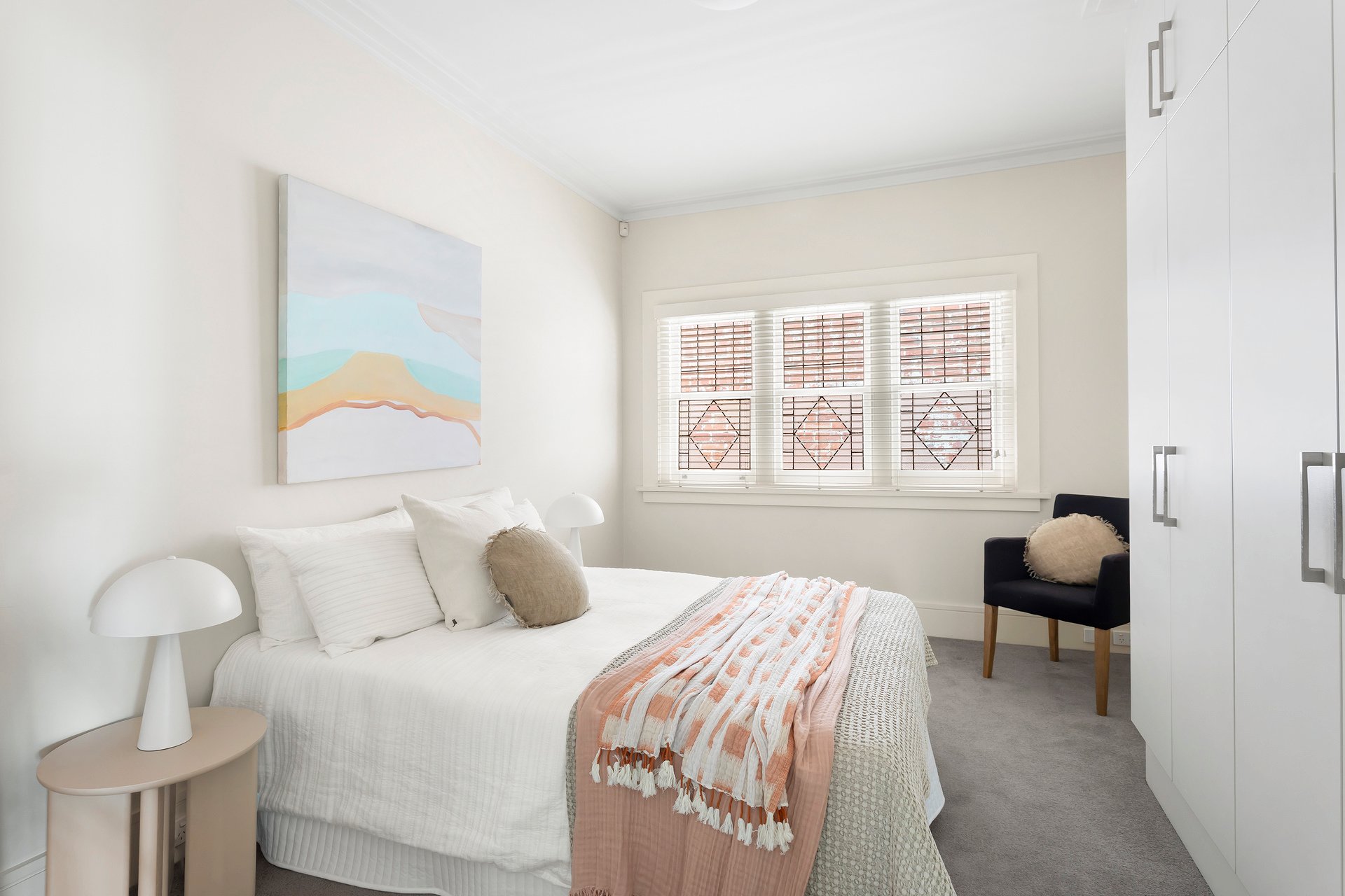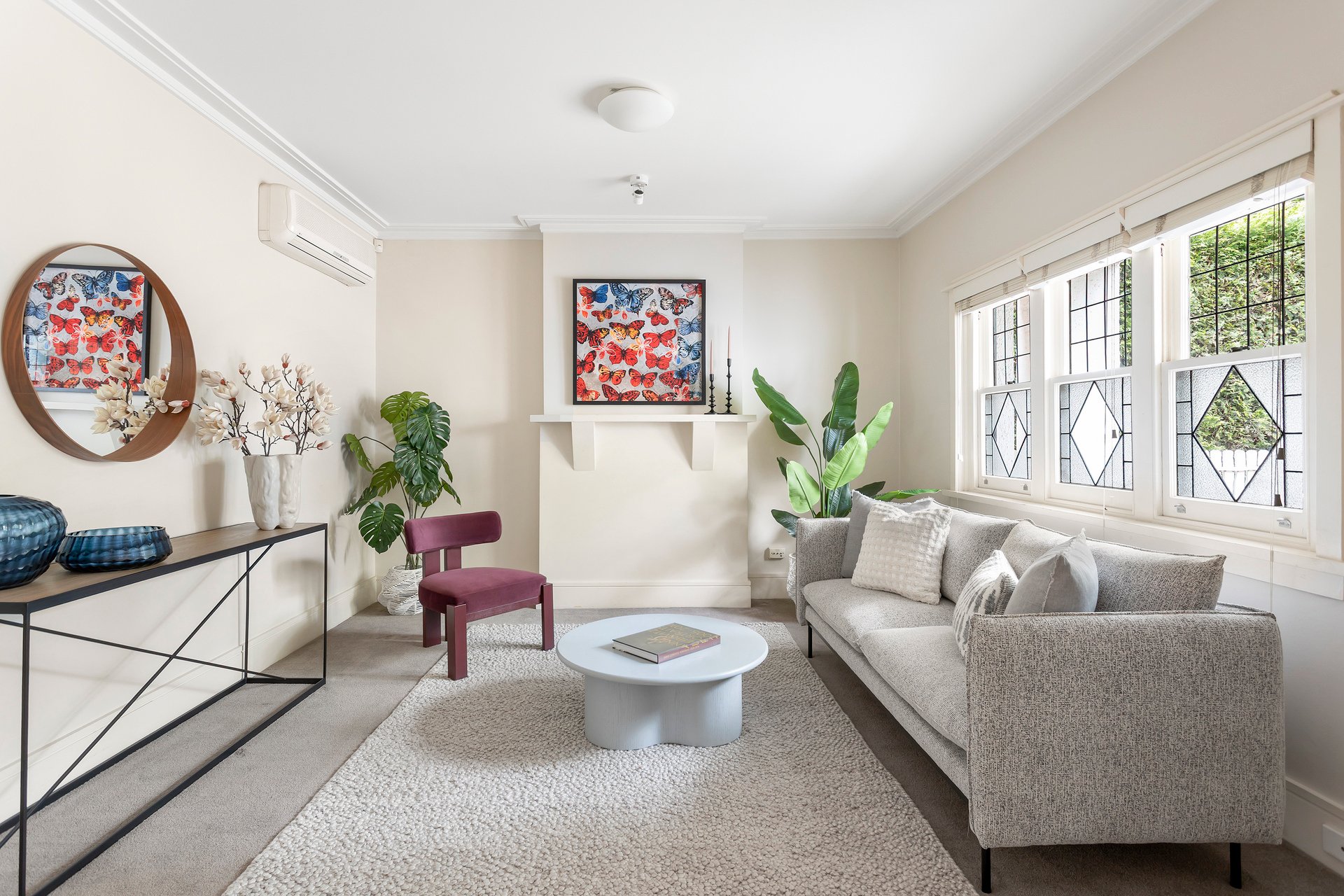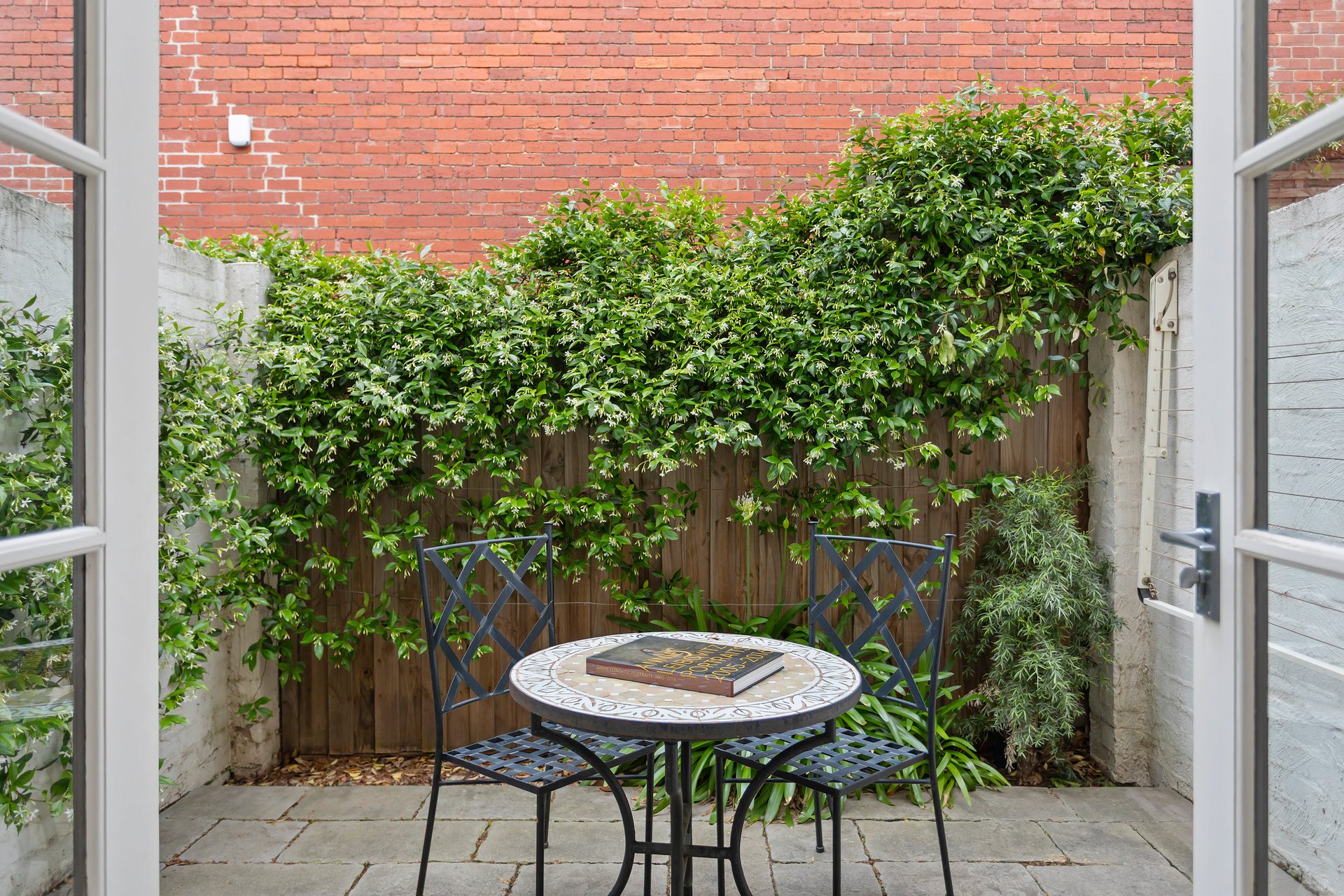 Original 1930s period features, including soaring ceilings and decorative detailing, showcase the home’s rich heritage, while tasteful modern touches enhance everyday comfort. The kitchen features stylish stone benchtops and splashbacks, blending modern functionality with classic charm. French doors open from the kitchen area to a private, sun-drenched front courtyard – a true highlight, ideal for entertaining or relaxing in a serene garden setting.