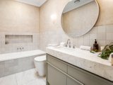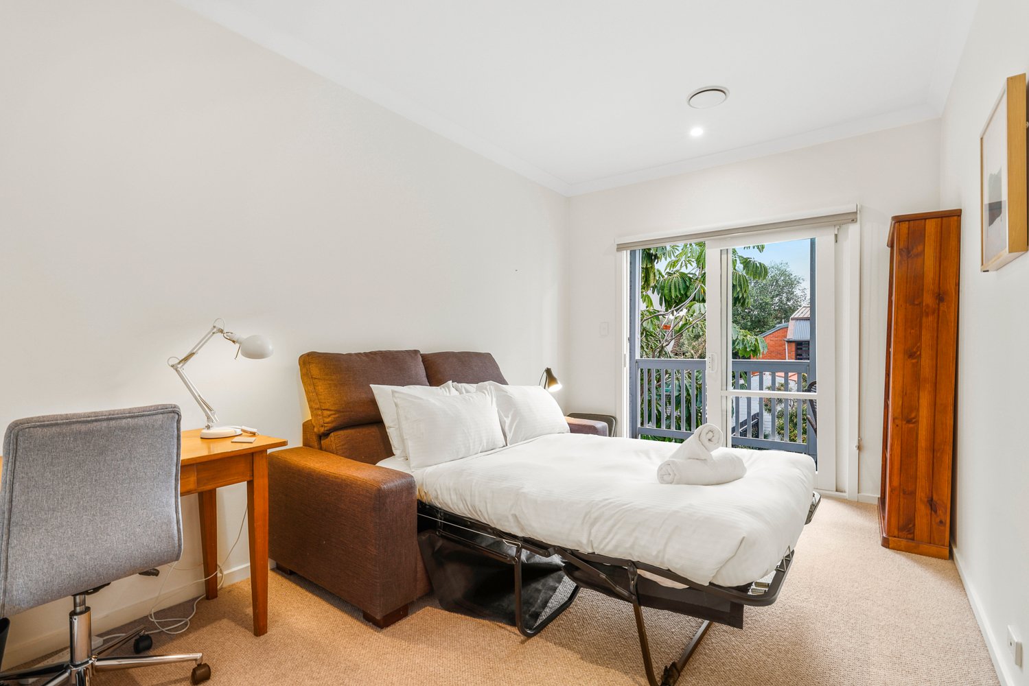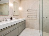 Upstairs, three sun-filled bedrooms all feature balcony access, the main suite with walk-in robe and marble ensuite. A double study nook, central bathroom, powder room and ample storage complete the picture of low-maintenance luxury.