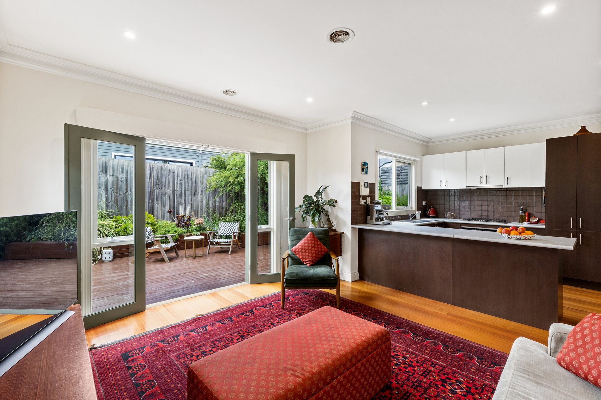 Warm timber floors flow throughout, creating a sense of continuity and style, while the contemporary kitchen connects seamlessly to the living zone and a comfortable lounge. Double doors open from the lounge to the rear garden, where the low-maintenance outdoor space offers the perfect setting for relaxing or enjoying time with family and friends.