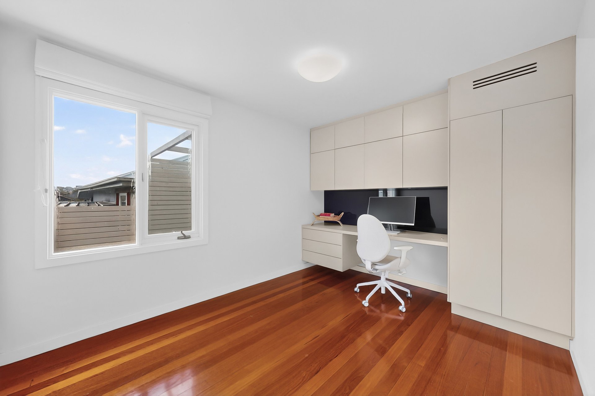 Positioned in one of Strathmore’s most sought after pockets, this well designed home offers a wonderfully versatile layout ideal for families, professionals, or those seeking additional space to work from home. The first floor brings the heart of the home together with an open plan living and dining zone spilling out to a generous balcony, perfectly oriented for light and airflow. A well appointed kitchen with dishwasher and ample cabinetry makes daily living effortless, while ducted heating, refrigerated cooling and ducted vacuum provide year round comfort and practicality. Fresh carpet in the bedrooms. The master bedroom with ensuite and walk in robe provides comfort and privacy. A second bedroom on this level is complemented by a central bathroom and thoughtful separation between living and sleeping zones.