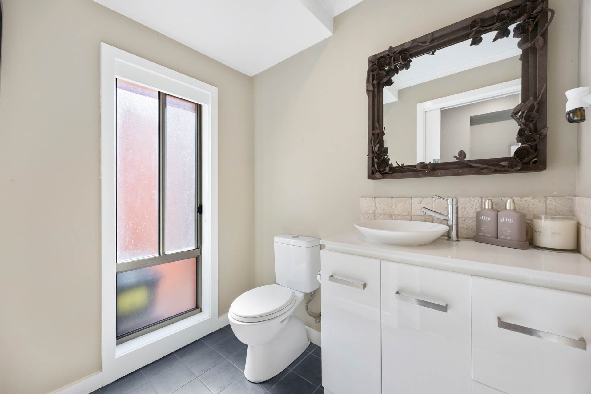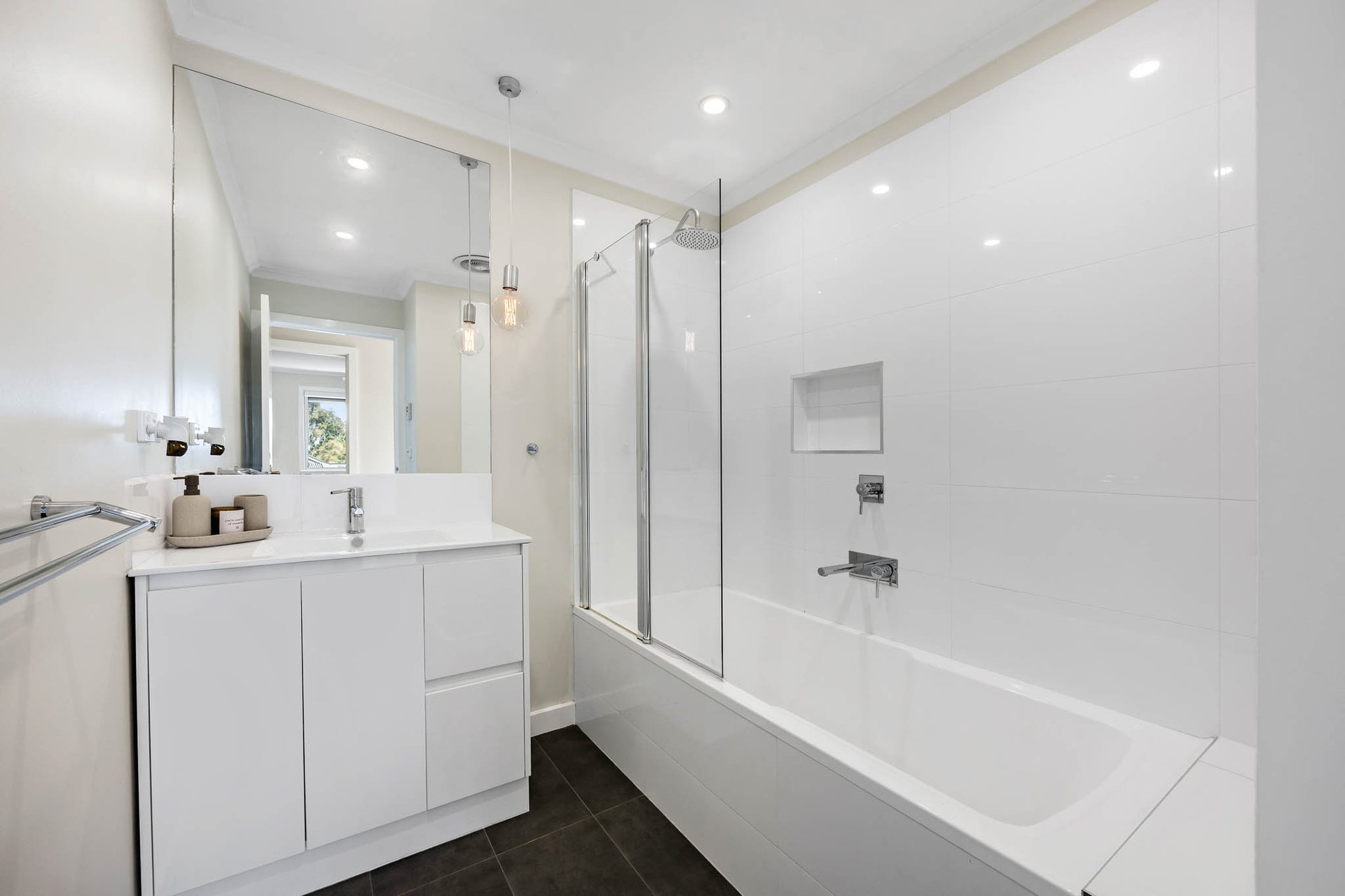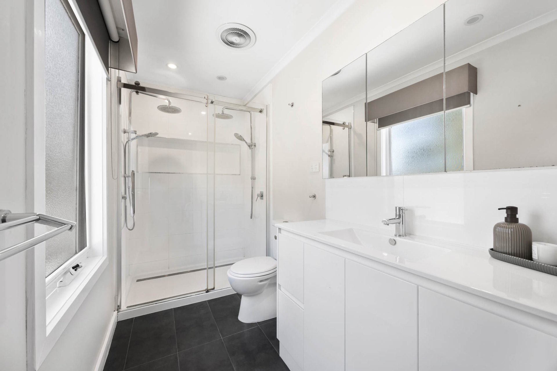Upstairs on the 2nd storey, accommodation comprises three robed bedrooms. The main bedroom enjoys a modern double-shower ensuite; the central bathroom presents a timeless aesthetic with a niched shower-over-bath.