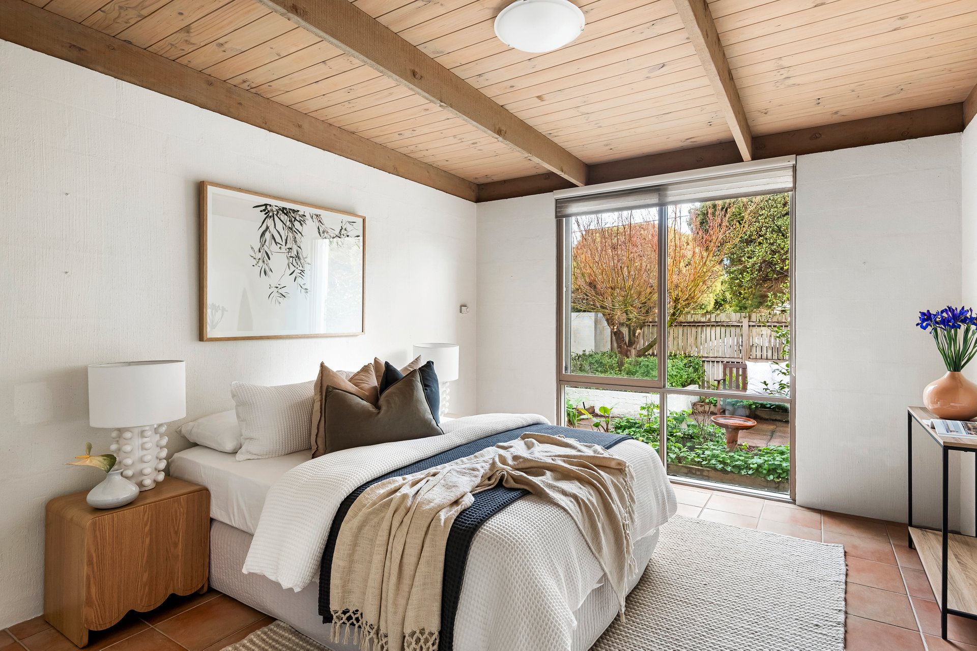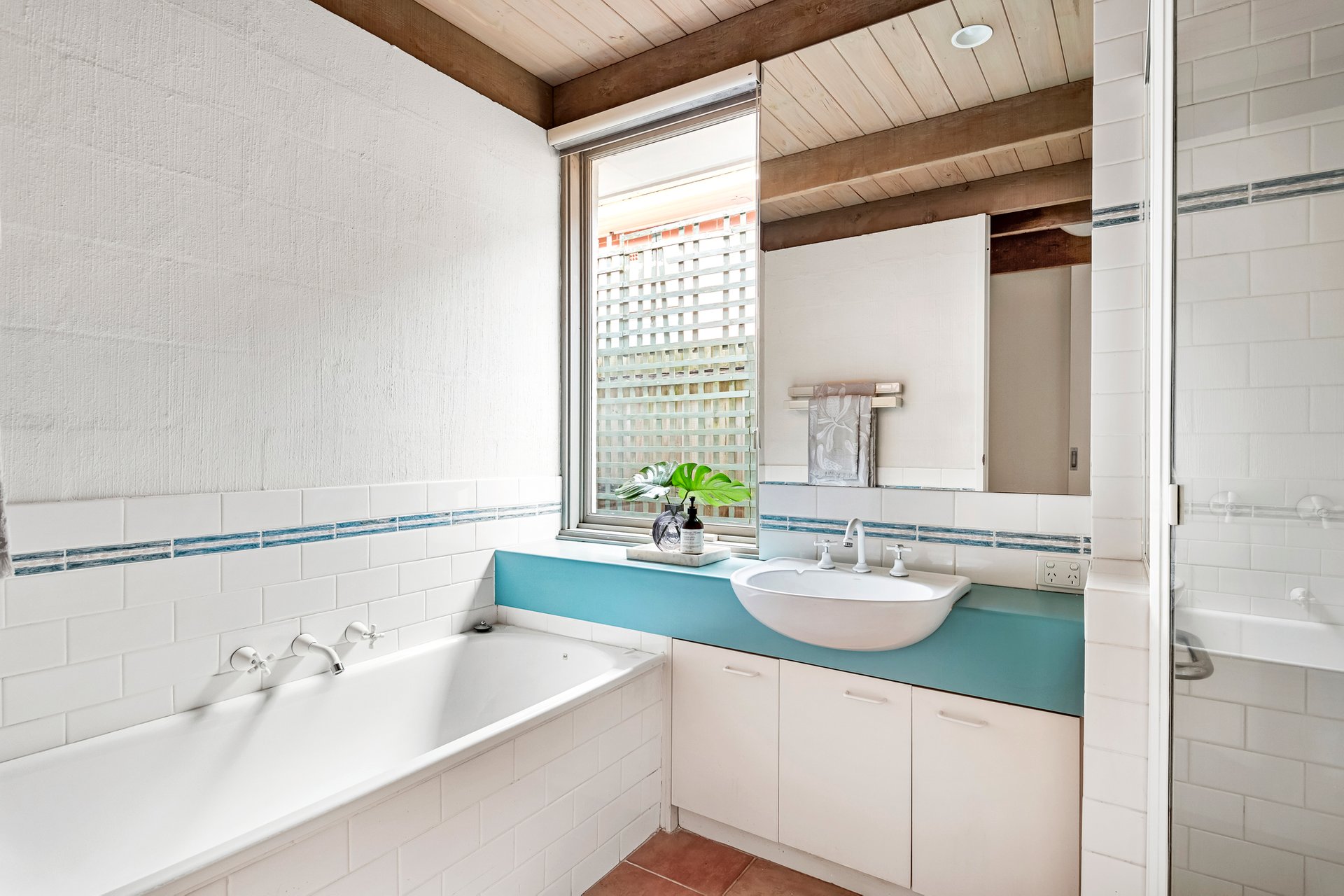 Two bedrooms are positioned downstairs, including the ensuited master retreat which looks out across a private front courtyard. Two more bedrooms are positioned upstairs – there is also the convenience of a full bathroom on each level, and a ground-floor powder room for guests.