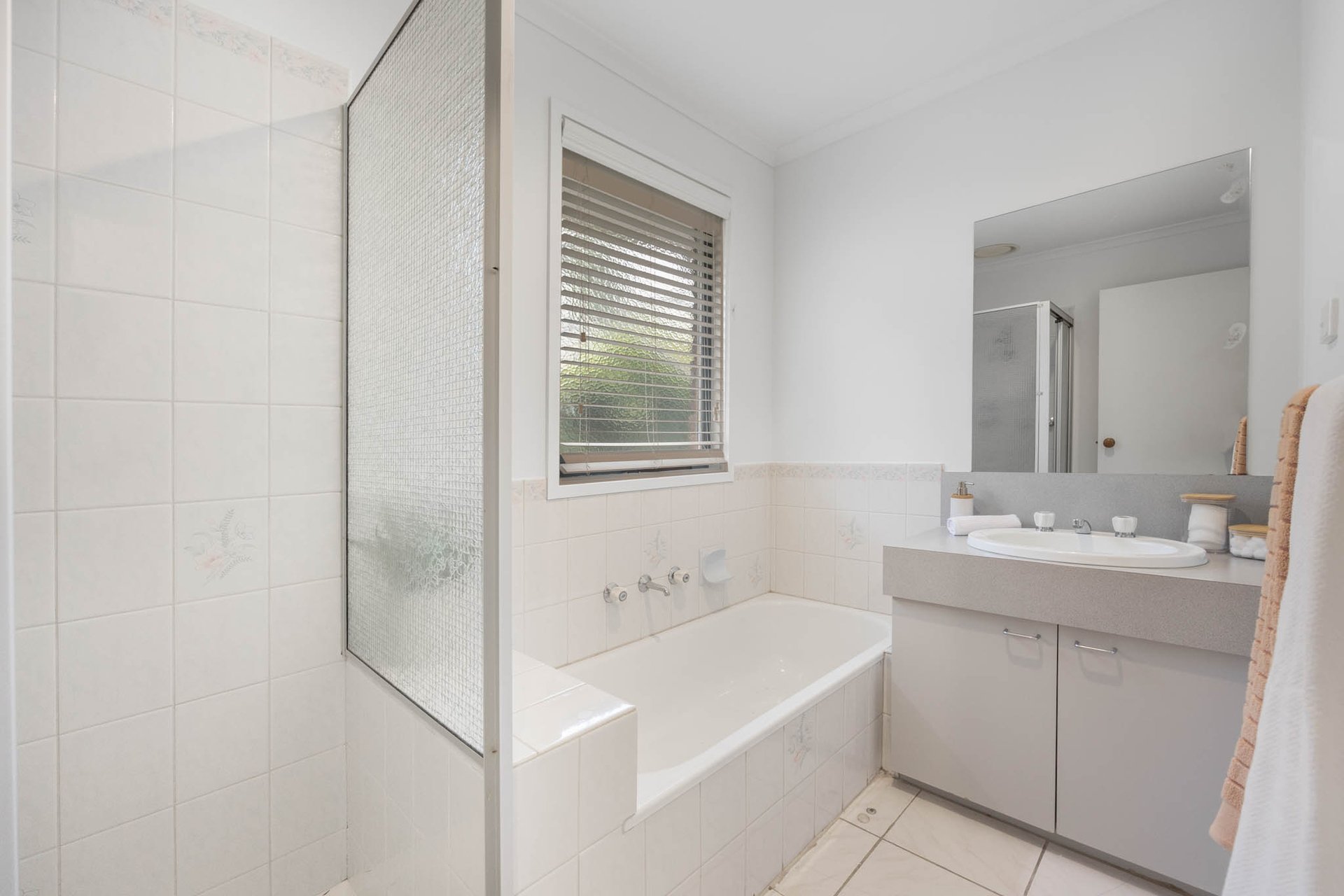 Accommodation comprises 4 bedrooms, led by a main suite with a walk-in robe and ensuite. Three further bedrooms are served by a central bathroom appointed with a shower, bath, and separate WC.