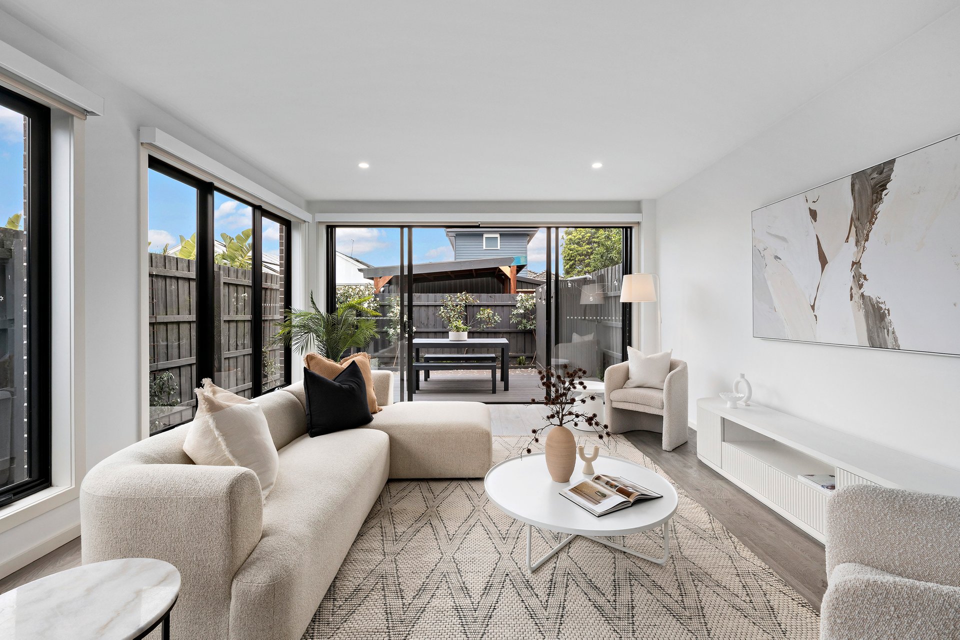 Beautifully presented and bathed in natural light, this four-bedroom, three-bathroom home is superbly positioned directly opposite Angliss Reserve in a tightly held, family-friendly pocket of Yarraville. Offering generous proportions, modern sophistication and effortless indoor-outdoor living across two well-designed levels, it promises an exceptional lifestyle within easy walking distance of shops, cafés and parkland.
