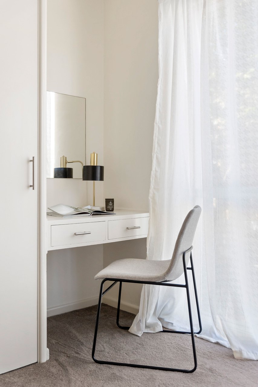 The generous bedroom is a genuine highlight – spacious, peaceful and complete with built-in wardrobes and an integrated study nook perfectly suited for remote work, creative pursuits or weekend planning. It's a balanced, multi-functional space that feels both private and inspiring.