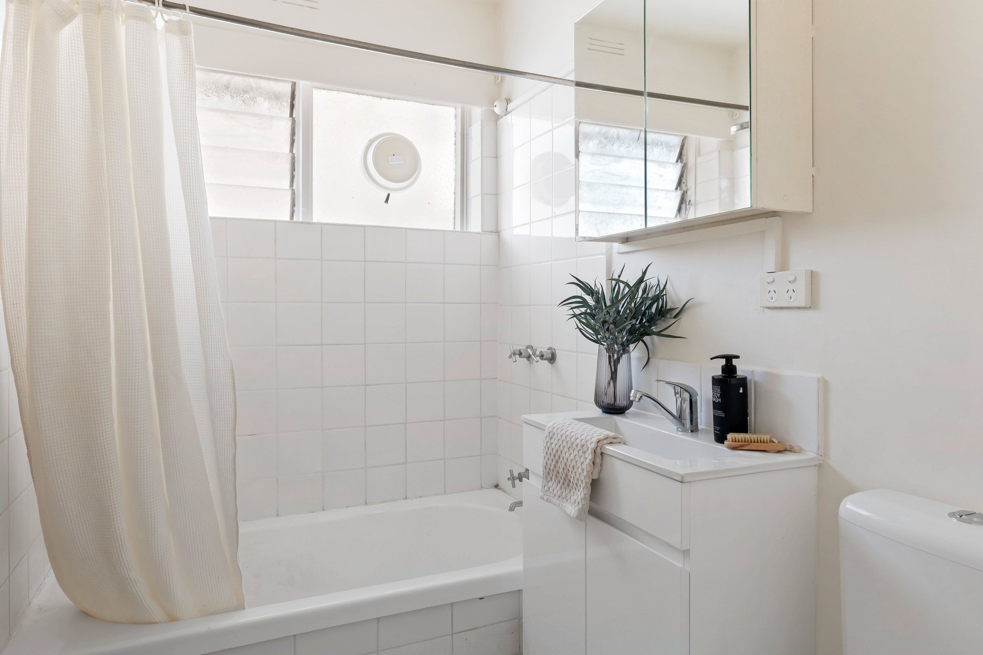 A bright living and dining zone anchors the home, opening onto a beautiful balcony that captures the calm, established atmosphere this older-style block is known for. The bathroom has been lightly renovated with a new vanity, bringing a clean and modern finish while still retaining the property's timeless appeal.