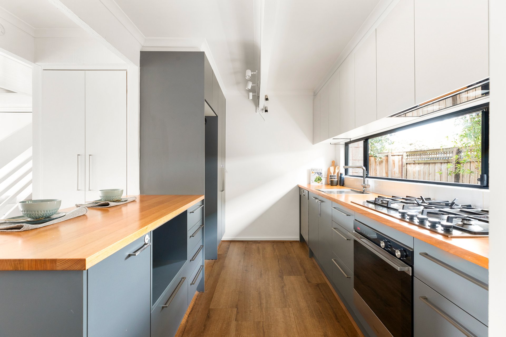 Upon entry, an open plan living/dining zone welcomes guests inside, before unfolding to the well-appointed gourmet kitchen with timber benchtops, gas cooktop and stainless steel dishwasher.