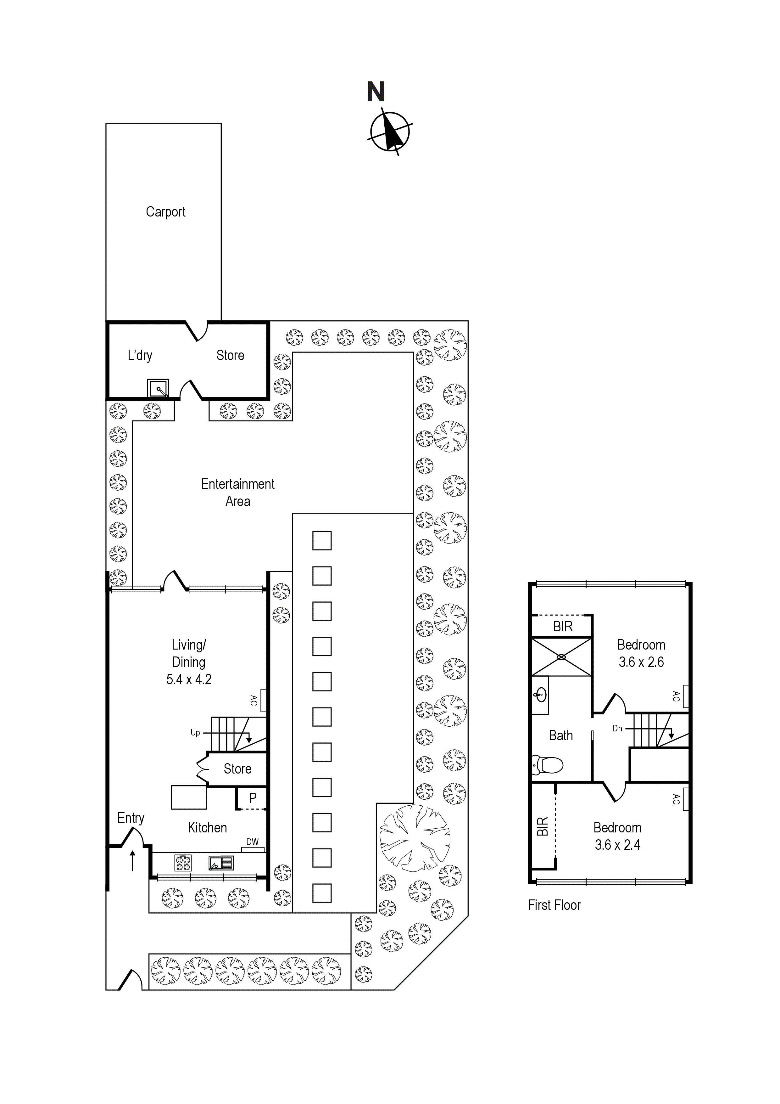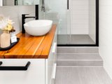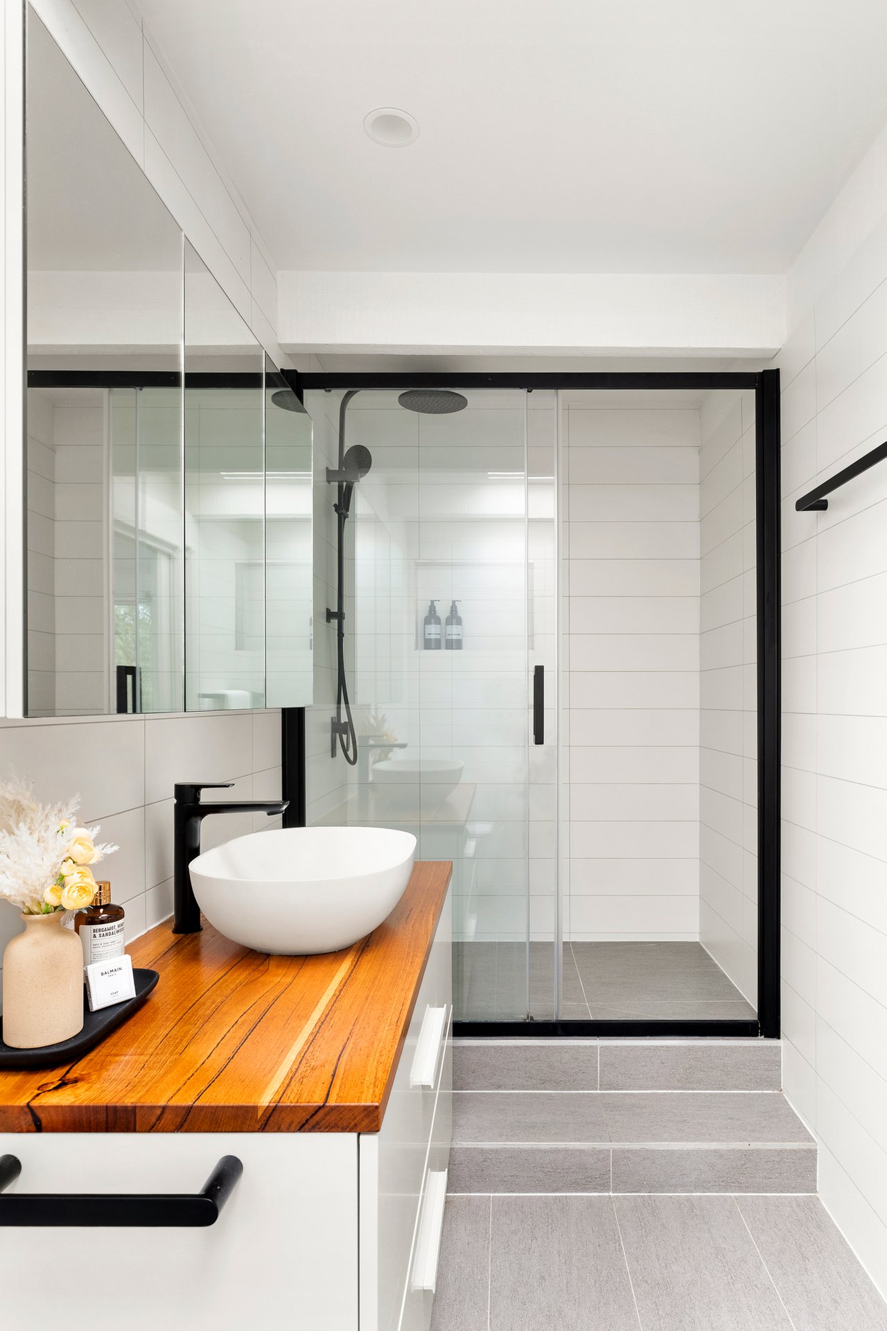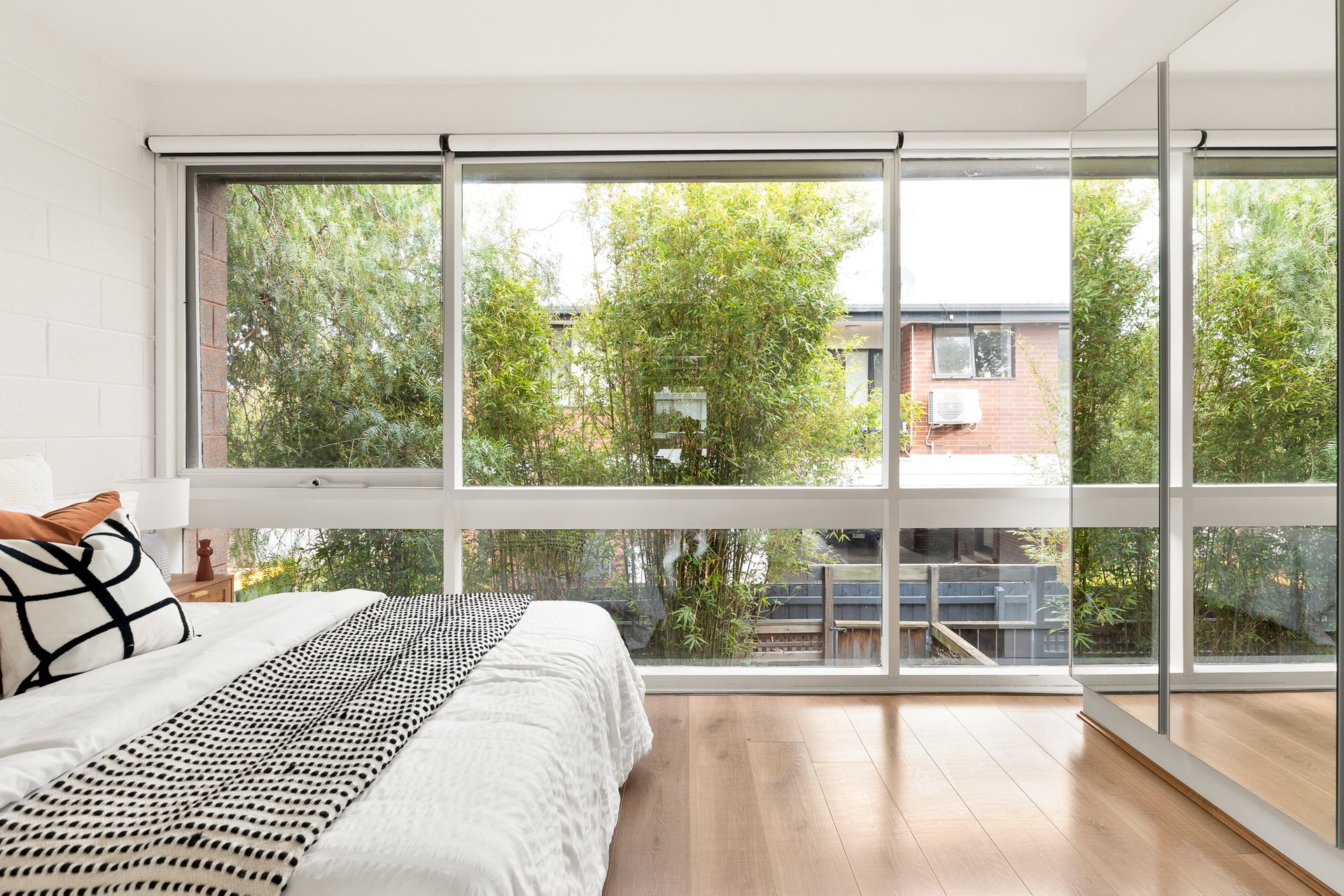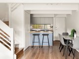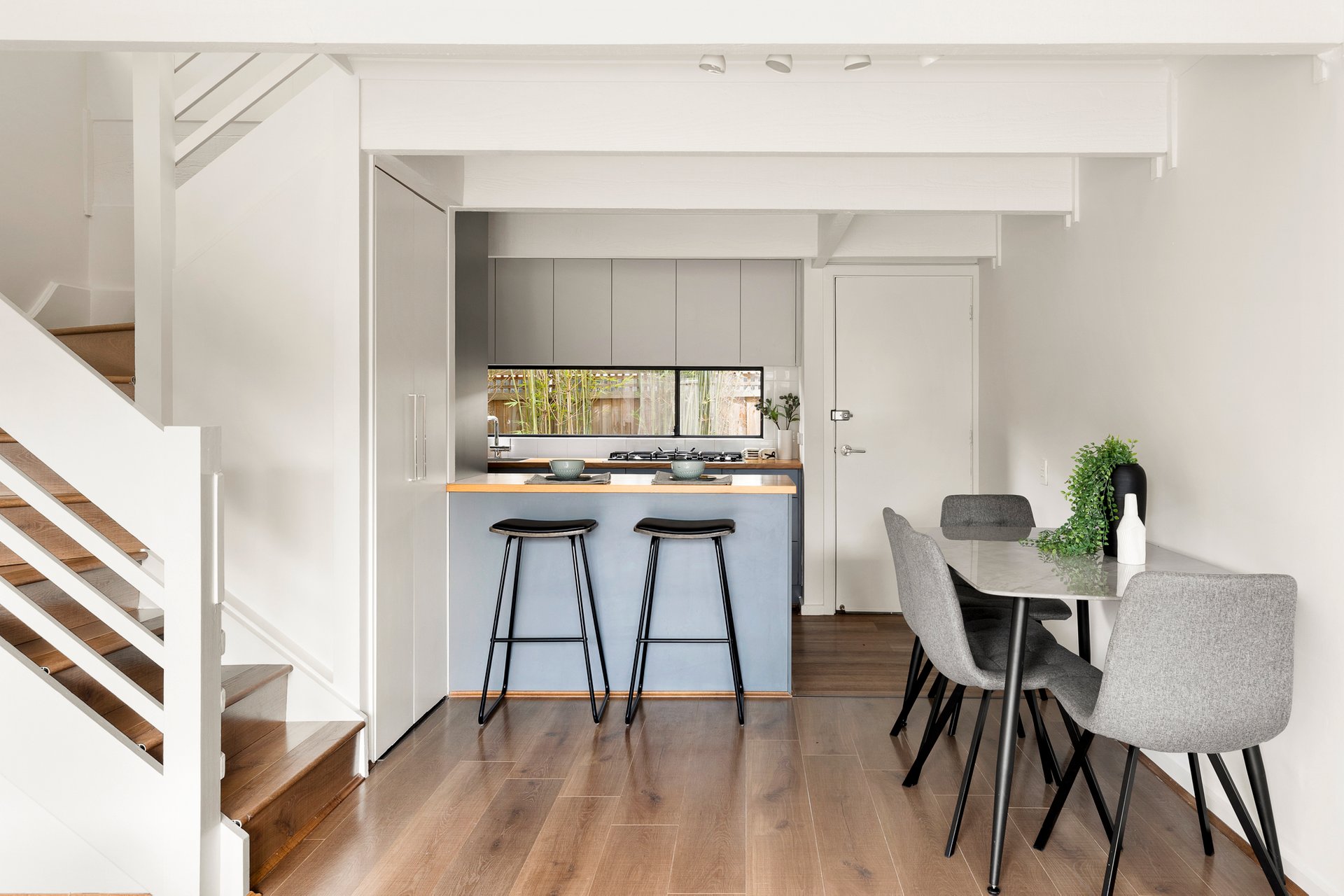 Both light-lavished windows are tucked away upstairs, alongside a stunningly renovated skylit bathroom with floor-to-ceiling tiles, matte black fixtures and timber-topped vanity. Both bedrooms boast storage whilst also offered are split systems, a rear storage/laundry, carport and visitor’s parking.