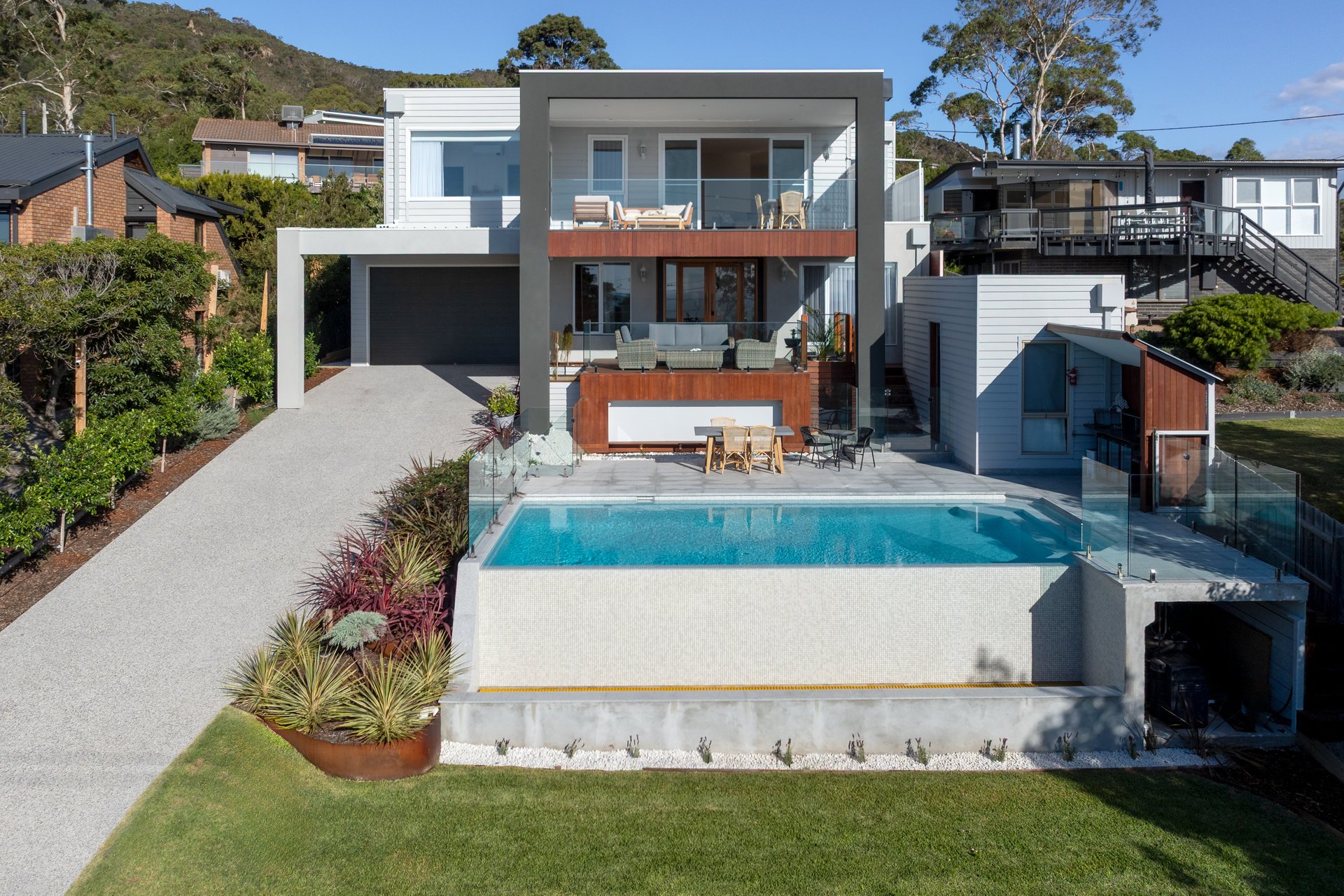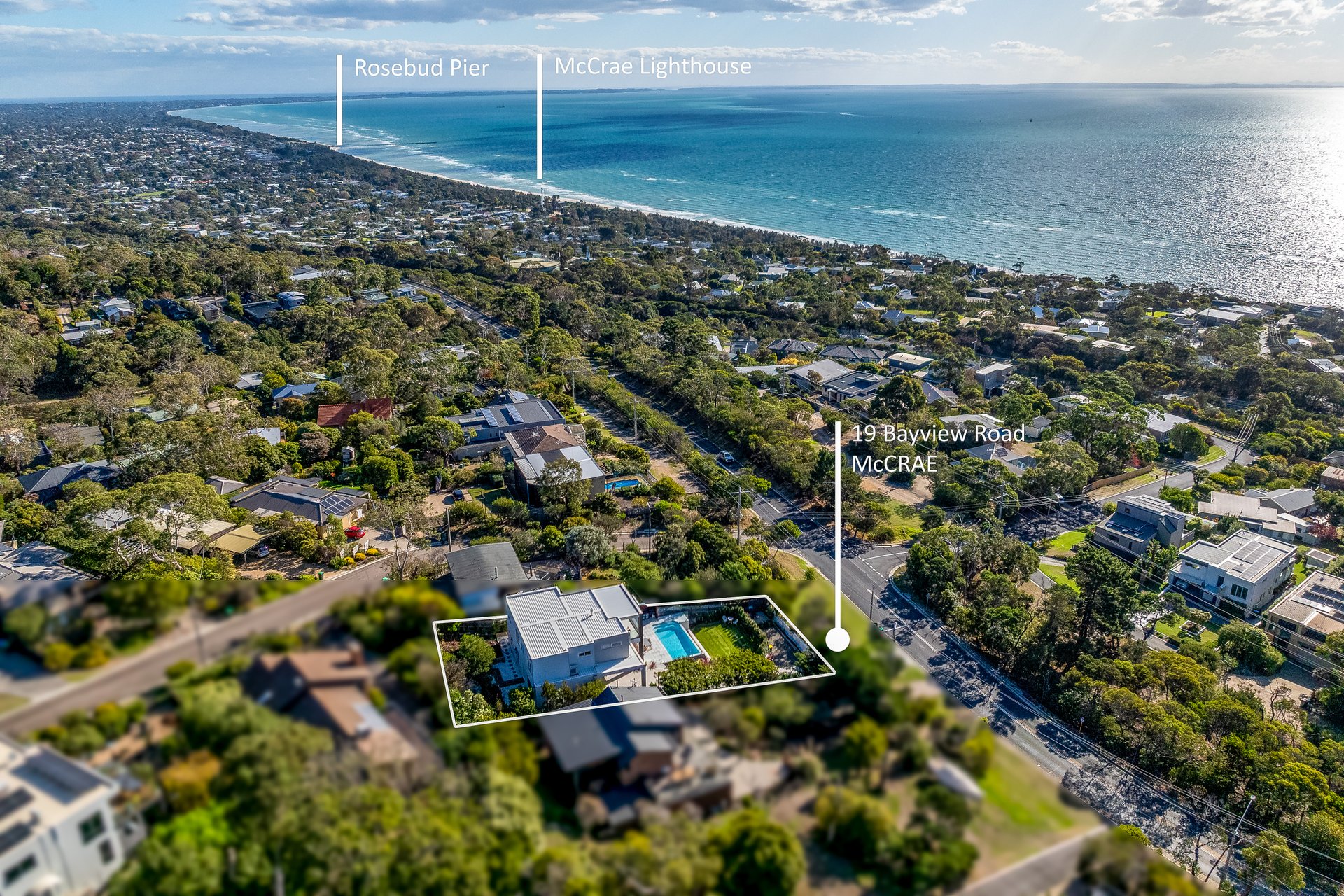 Elevated in one of McCrae's most coveted locations, this brand-new, architecturally designed residence at 19 Bayview Road is a contemporary coastal luxury, offering uninterrupted views across Port Phillip Bay, sweeping from the city skyline to The Heads.