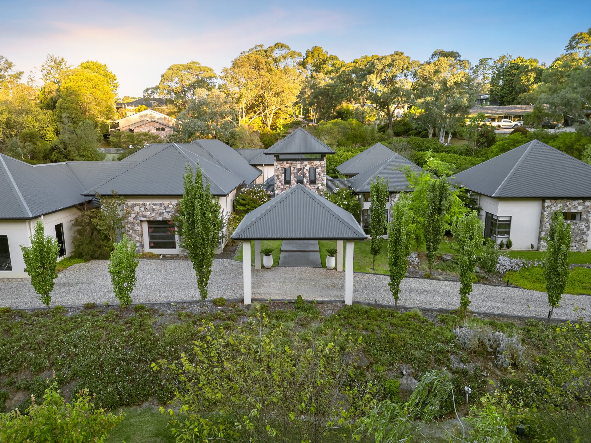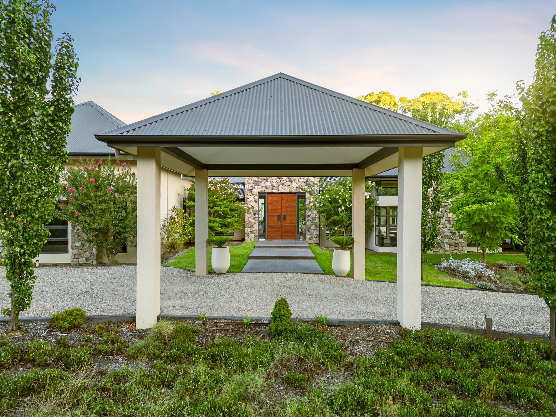 Wrapped in luxury and set within beautifully curated gardens, this extraordinary lifestyle retreat will exceed all your expectations. An architectural masterpiece, step inside to a welcoming foyer with a soaring timber-lined void, effortlessly connecting the different wings of the home and outdoor living spaces.