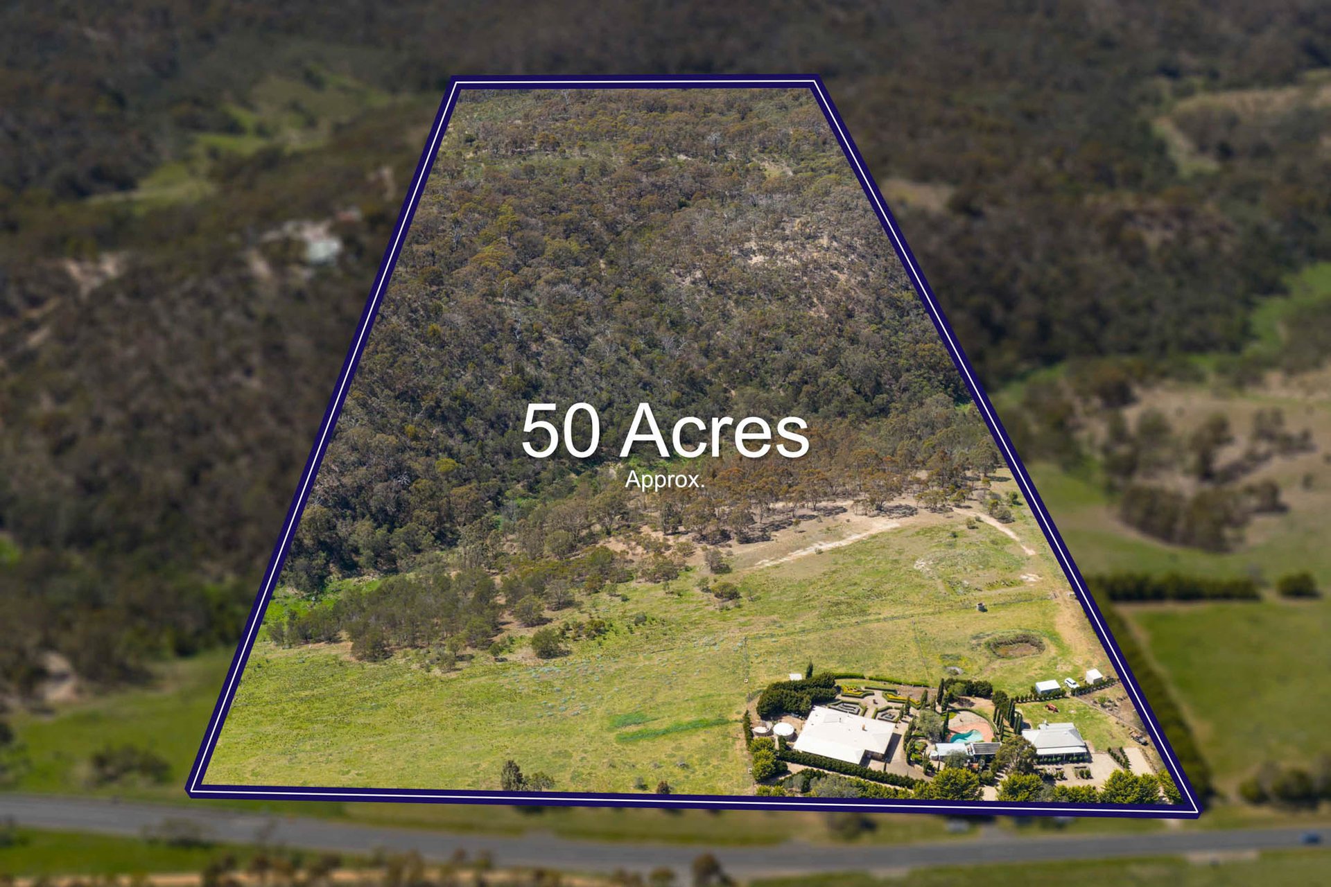 Commanding magnificent verdant views reaching to the city, this extraordinary 50-acre (approx.) estate encompasses a refined main residence with a resort-style solar-heated pool, and a fully self-contained 3-bedroom cottage – all amid glorious European-inspired gardens.