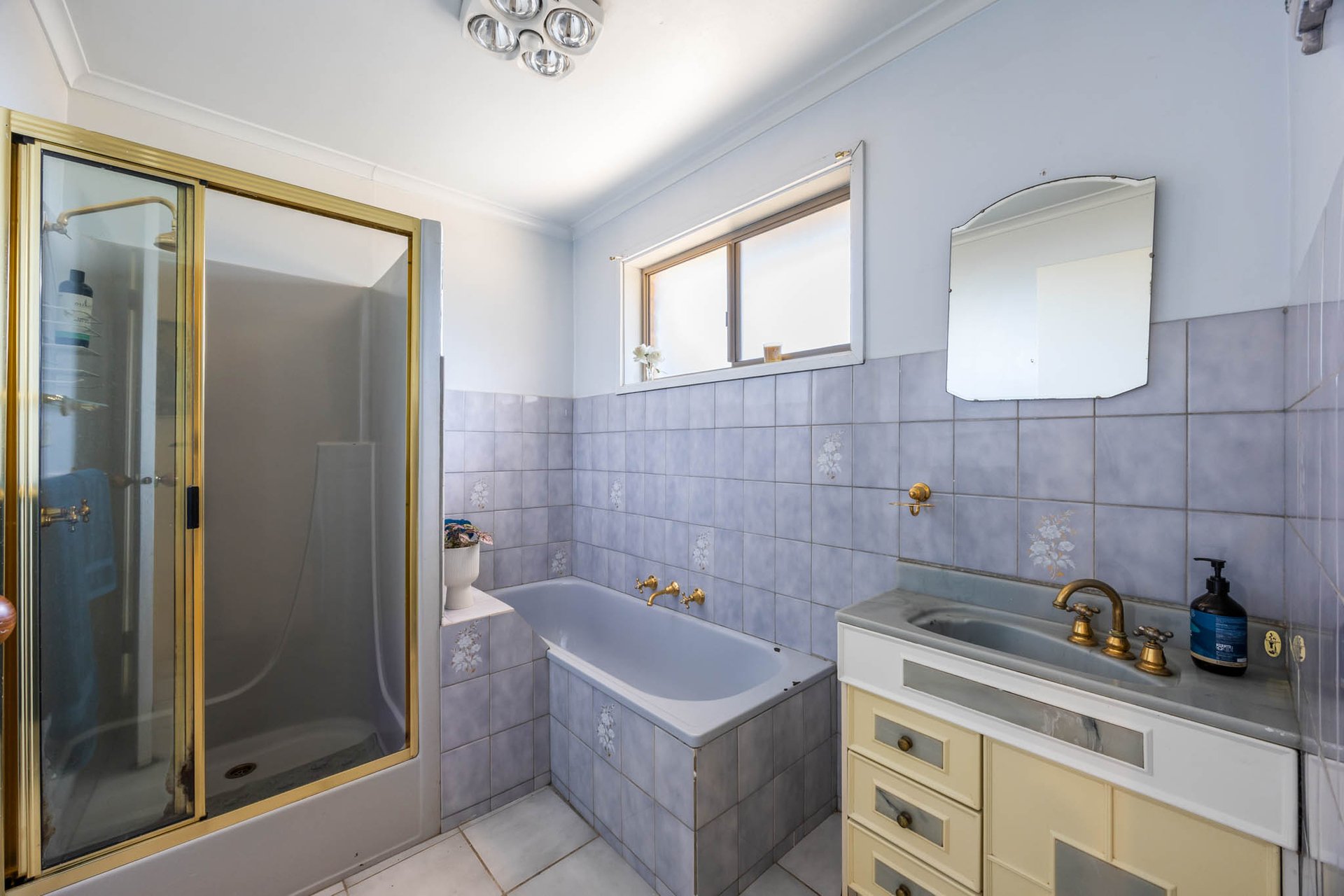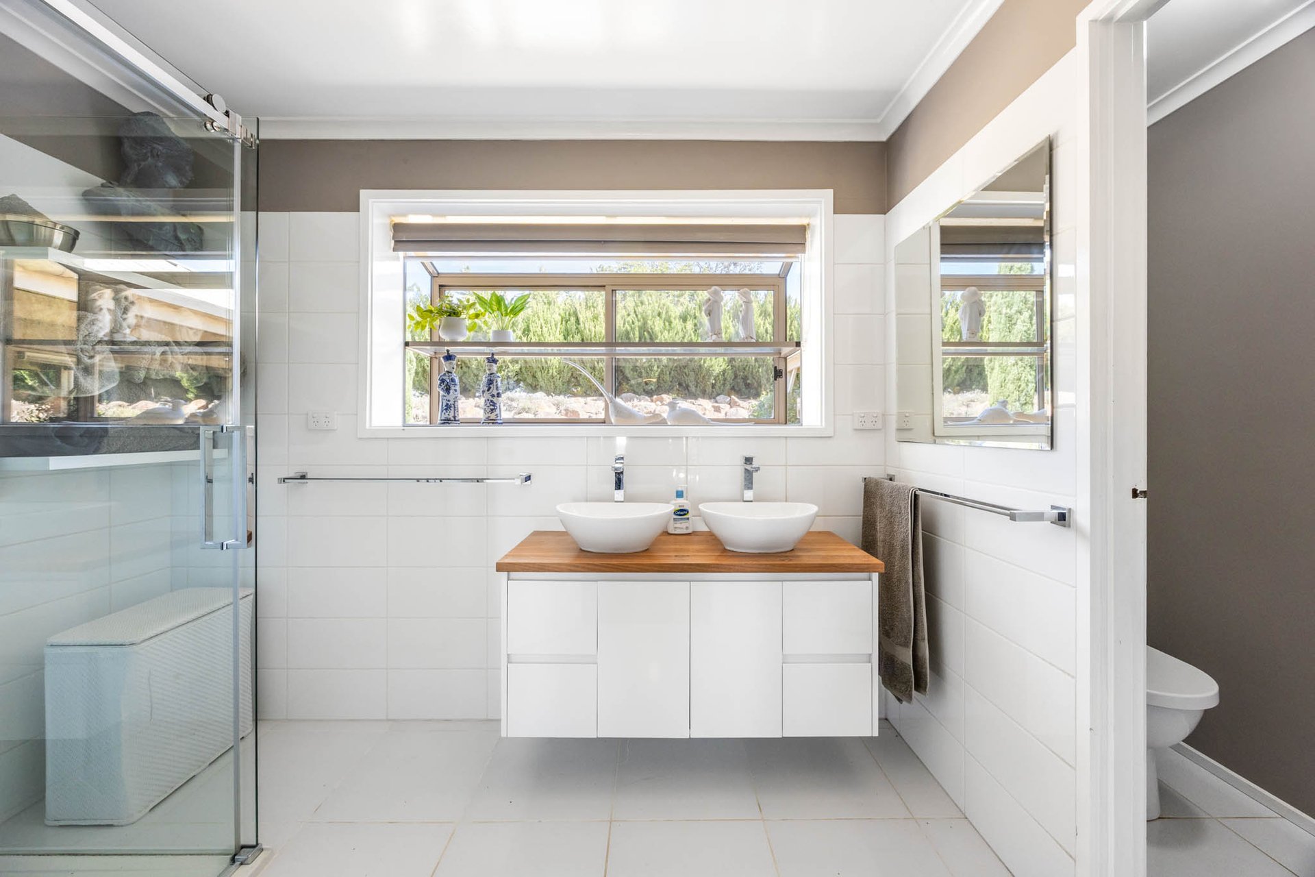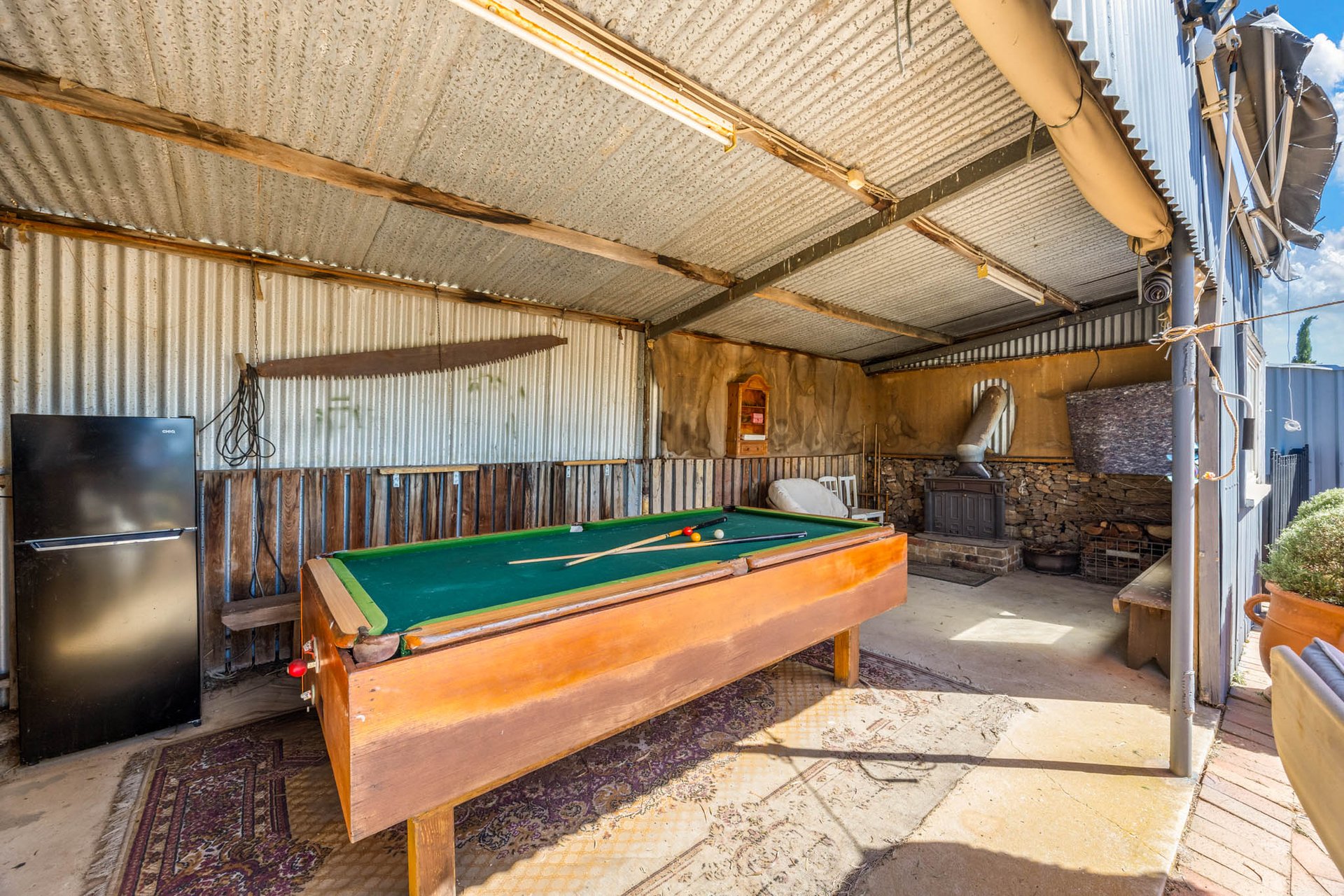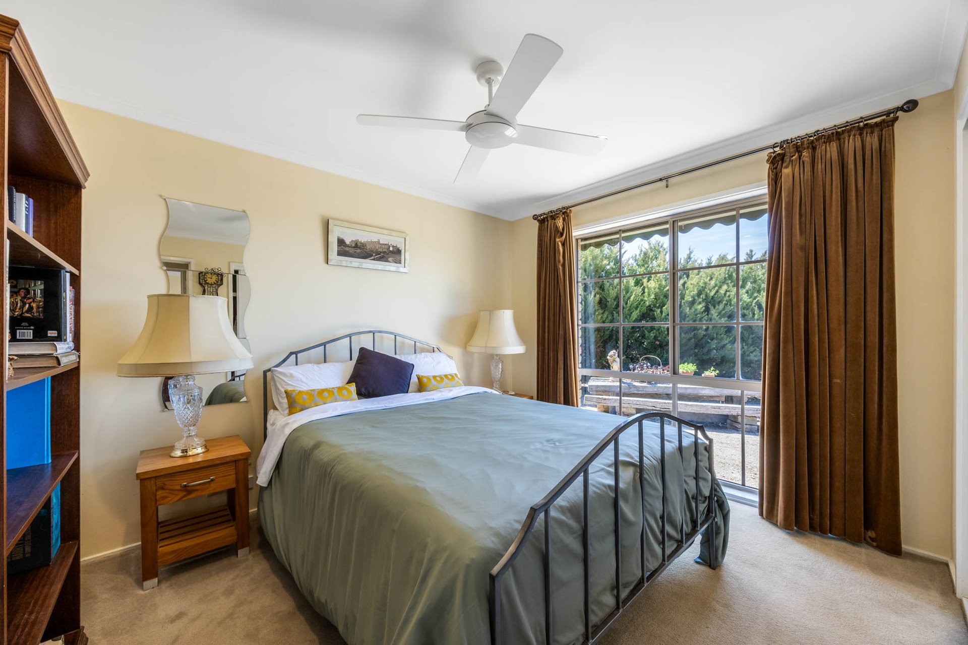 The main 4-bedroom, 2-bathroom residence showcases elegant architectural character and a warm, inviting interior. Everyday living unfolds across kitchen, dining, living, and family domains, with accommodation of four robed bedrooms including a main suite with walk-in robes and an ensuite. Includes a 16.8m x 6m carport, split-system heating/cooling, a log fire, ceiling fans, steel-frame construction with concrete slab and insulated roof, NBN connection, 34,500-litre water tanks, and a shed with an attached man cave.