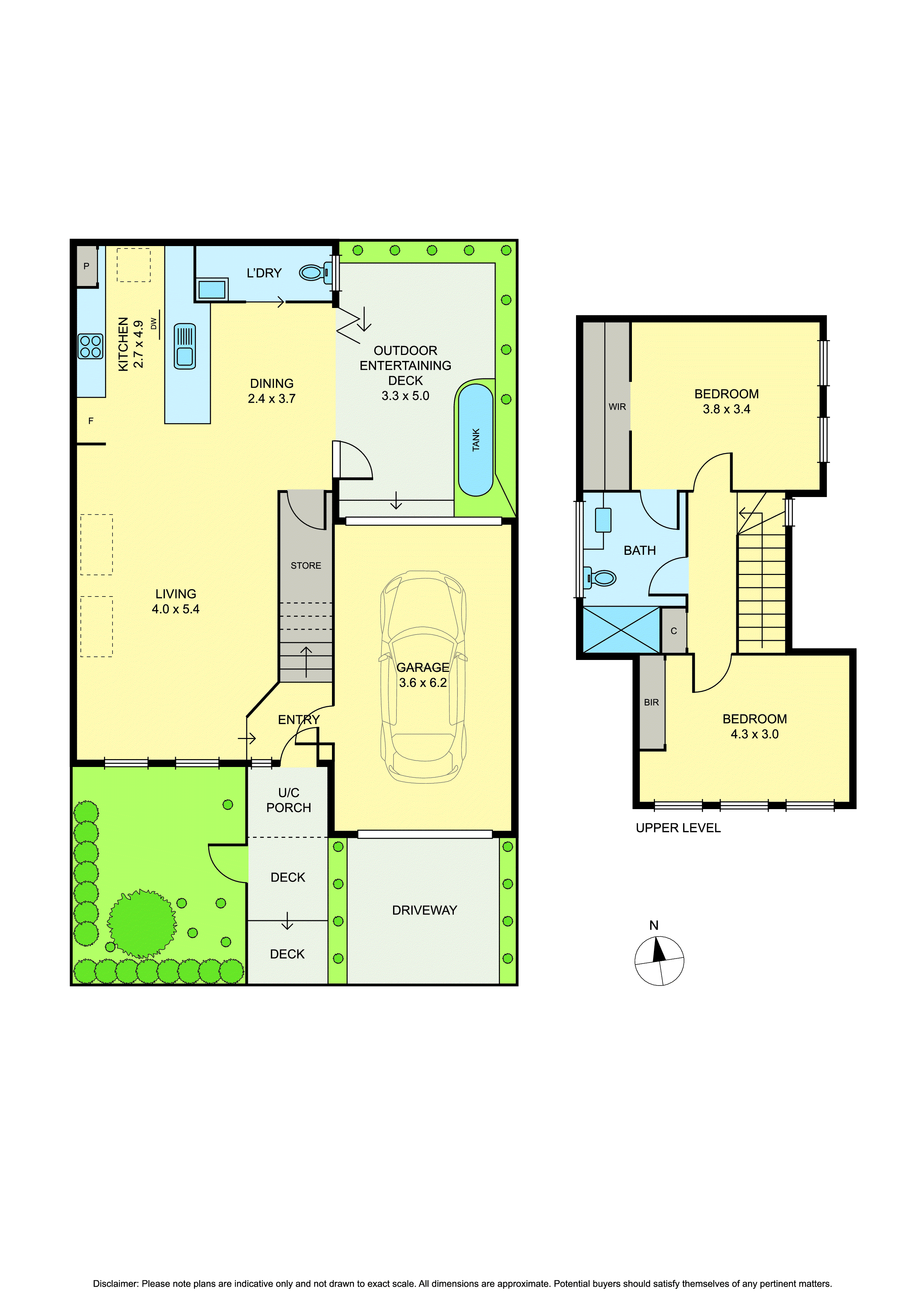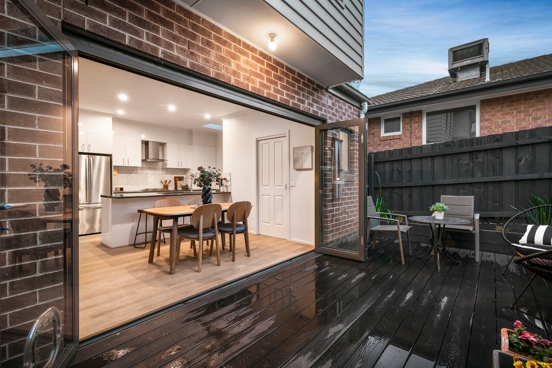 The main bedroom on the top floor is enhanced by a walk-in robe and semi-ensuite which features a rain shower, with the 2nd bedroom with BIR storage delivering a handy study nook. Further enjoy a downstairs laundry with toilet, ducted heating, evaporative cooling, under stairs storage, fabulous northern deck and garden, front deck (both deck areas were updated only a few months ago), rainwater tank, and single remote garage with rear access. The property also sits on its own title!