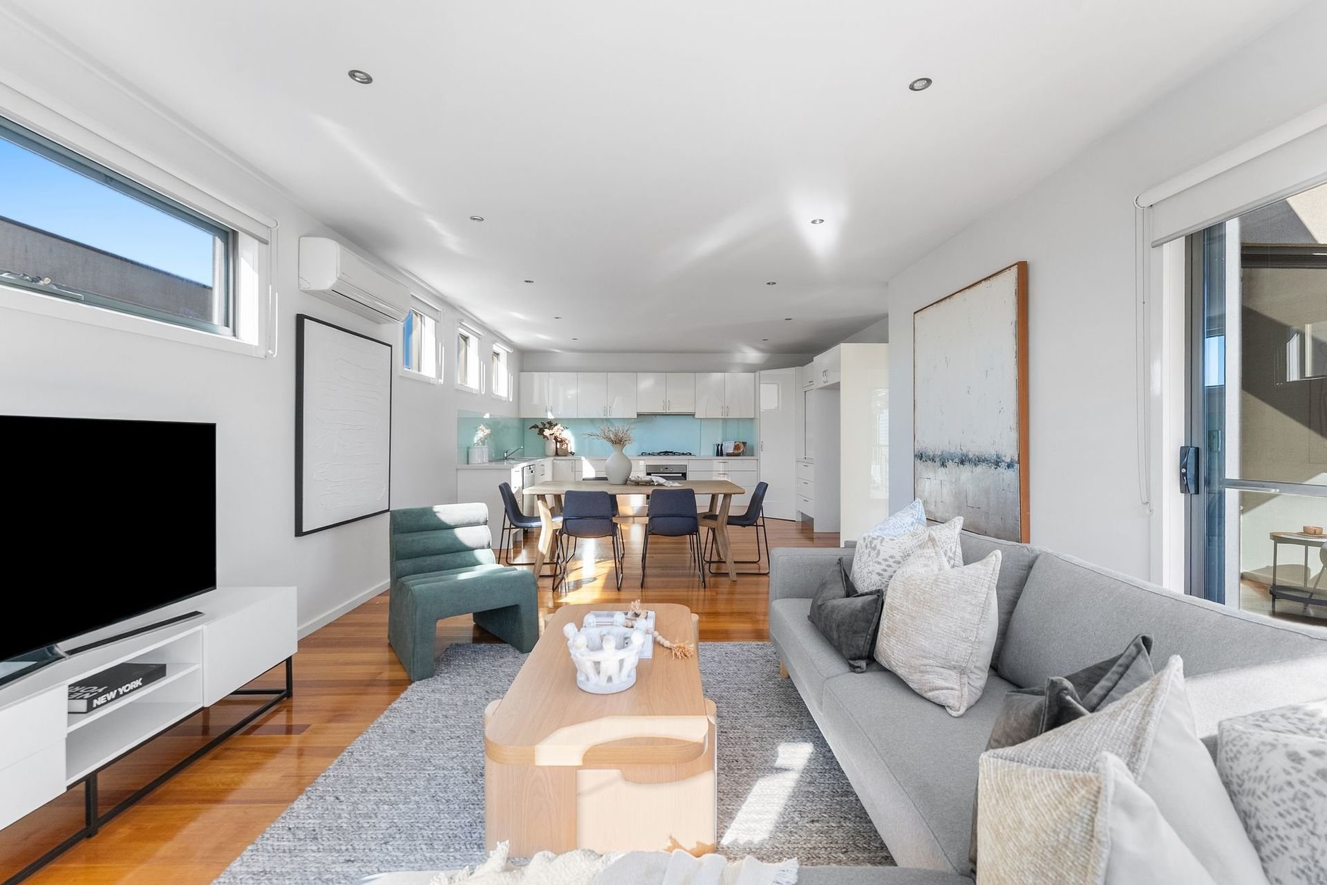 Bathed in natural light, the open-plan living and dining zone opens to a wide entertainer's balcony, ideal for alfresco dining or simply relaxing in the fresh air. The sleek, contemporary kitchen is appointed with stainless steel appliances, a gas cooktop, dishwasher and abundant storage, ensuring everyday functionality matches its stylish design.
