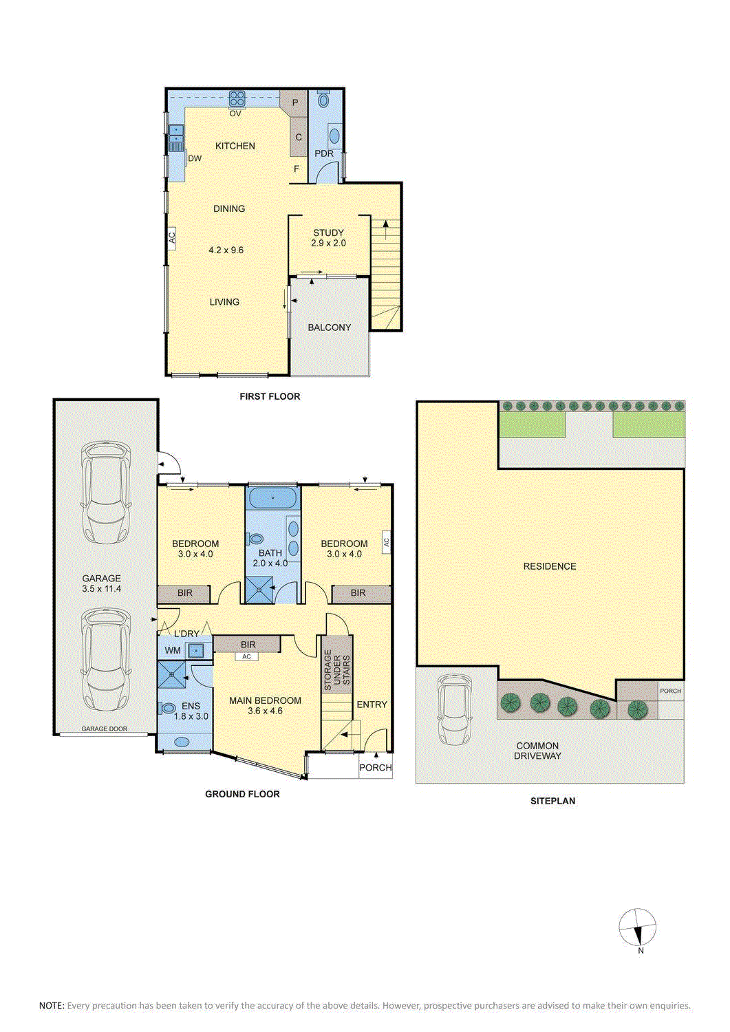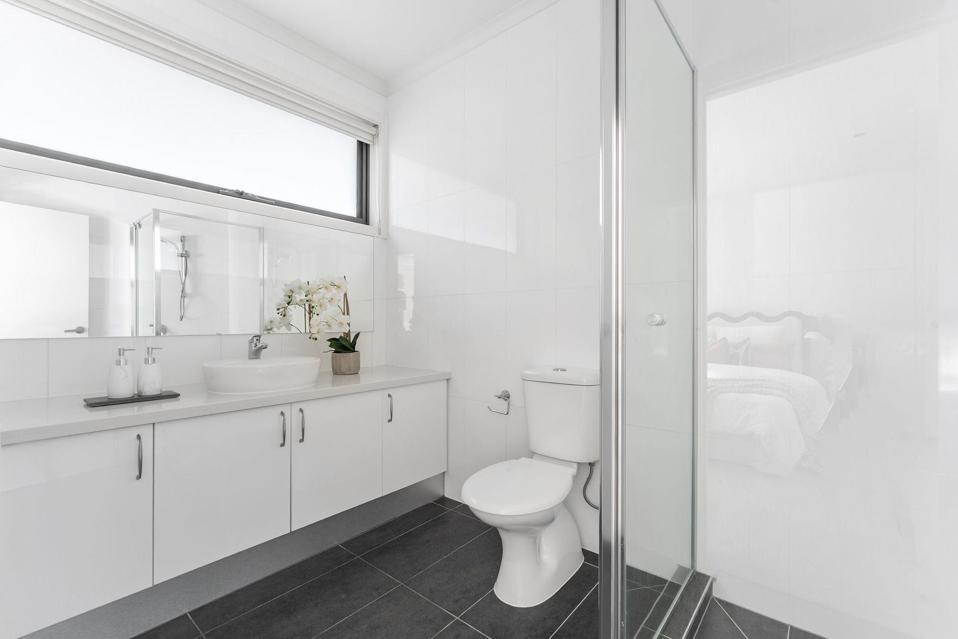The home offers three generous bedrooms, all with built-in robes. The master bedroom enjoys its own private ensuite, while the two additional bedrooms have direct access to a sunny, low-maintenance courtyard. A central bathroom with double vanity, shower and bath enhances family comfort, while a study nook and powder room provide the versatility today's living demands.