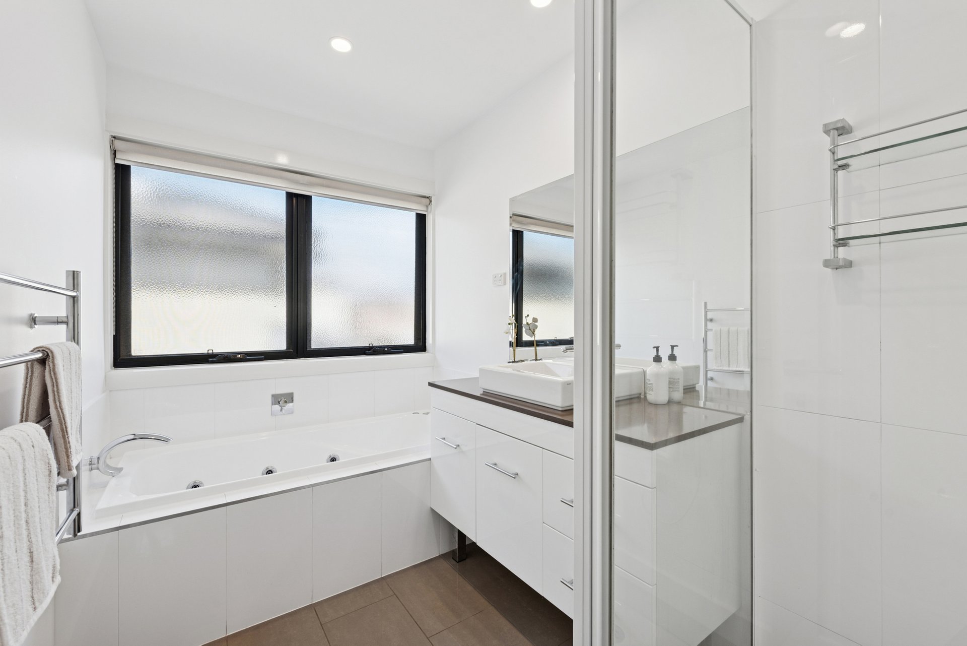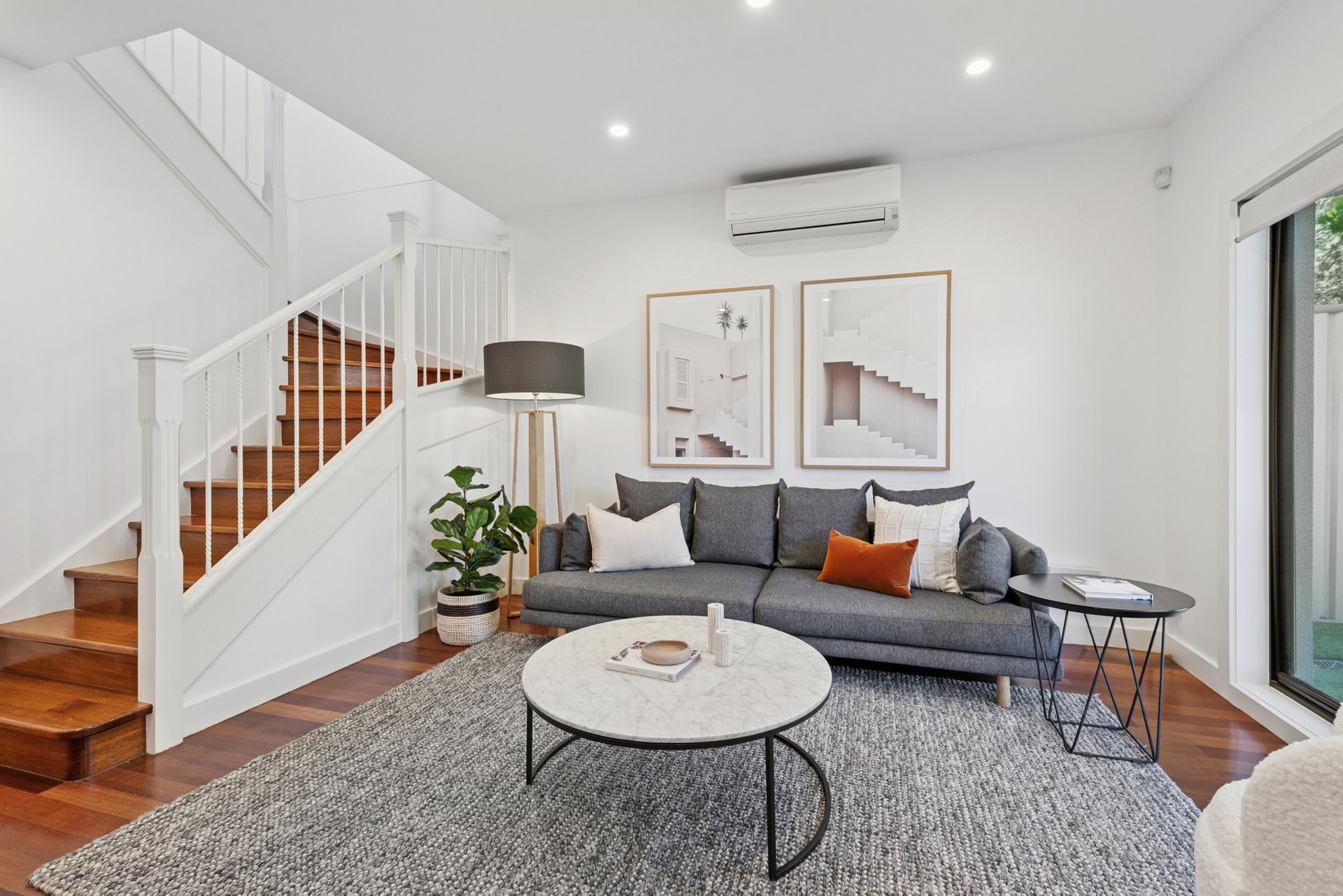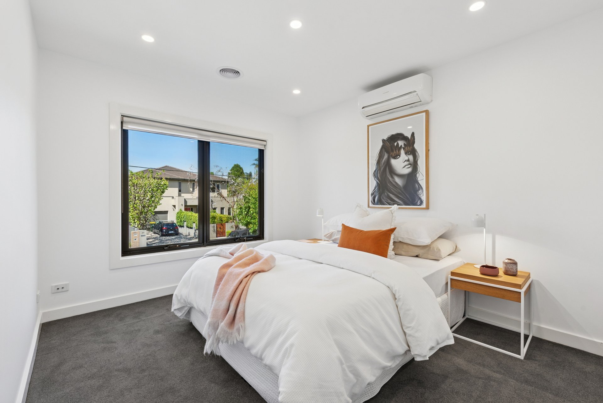 Upstairs, two bright bedrooms both feature built-in robes, while the bathroom comes with a spa bath for a proper soak, a step-in shower and a separate toilet. Ducted heating, a split system in the lounge and main bedroom, and ducted vacuum keep life running smoothly.