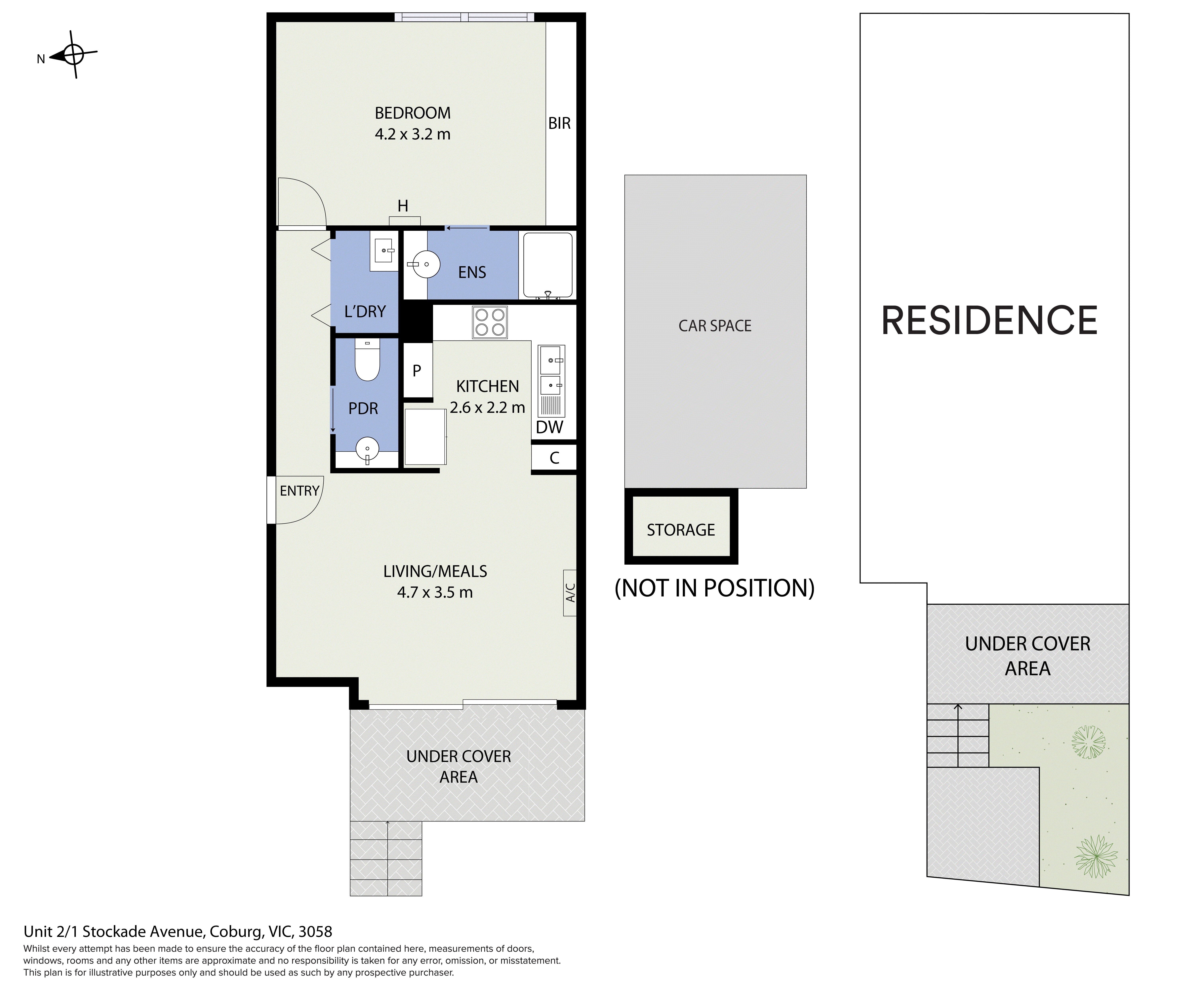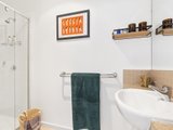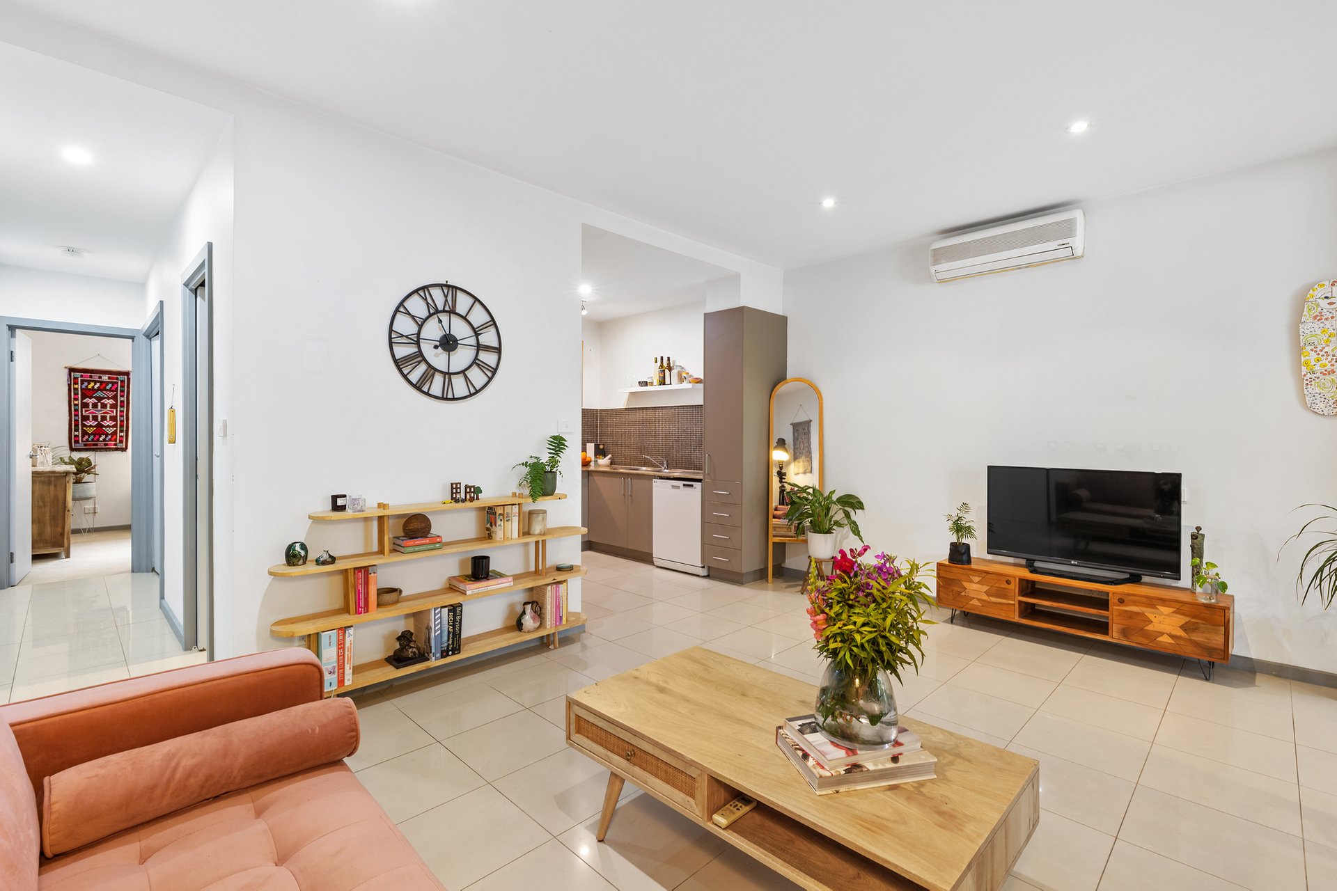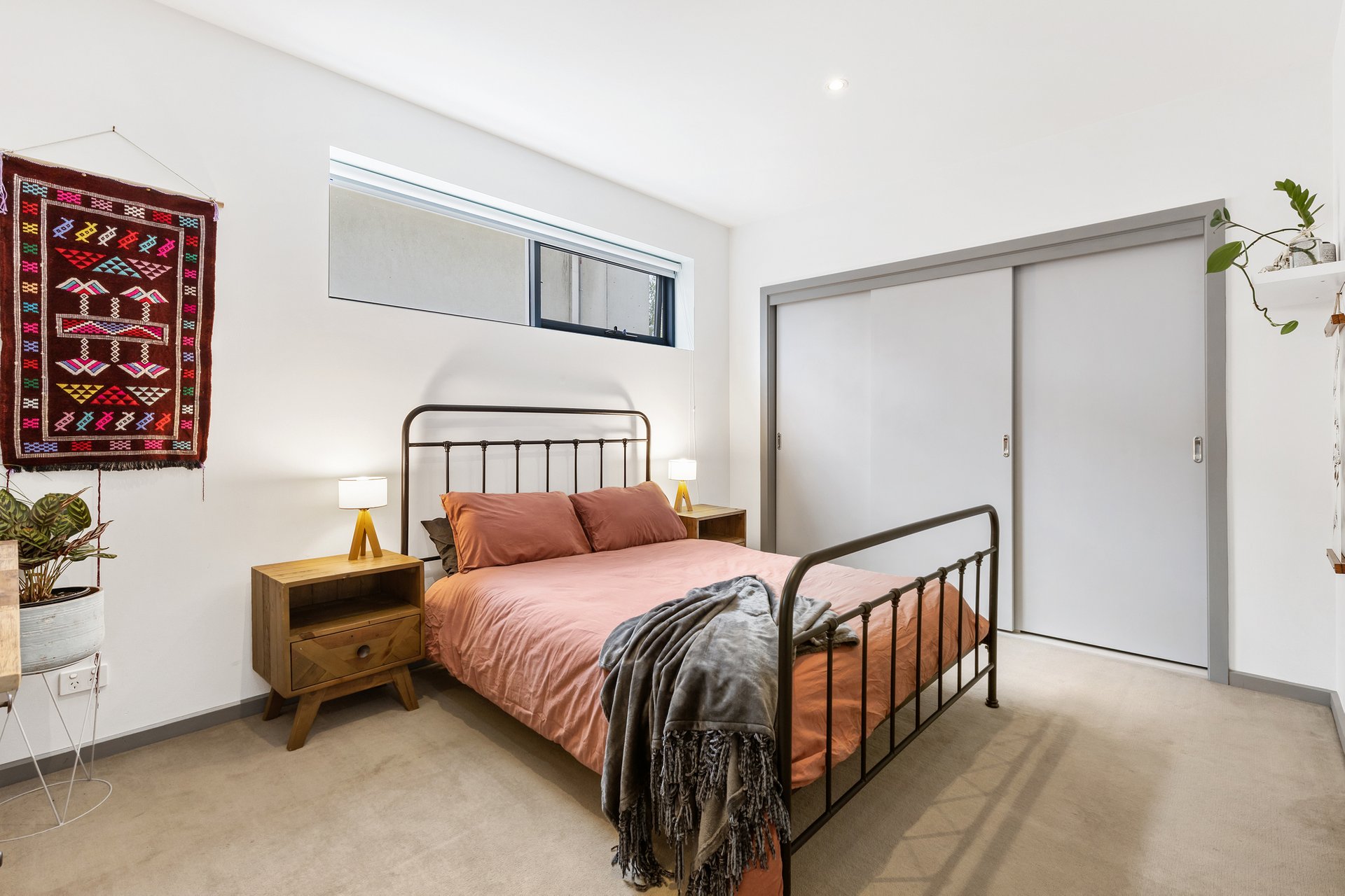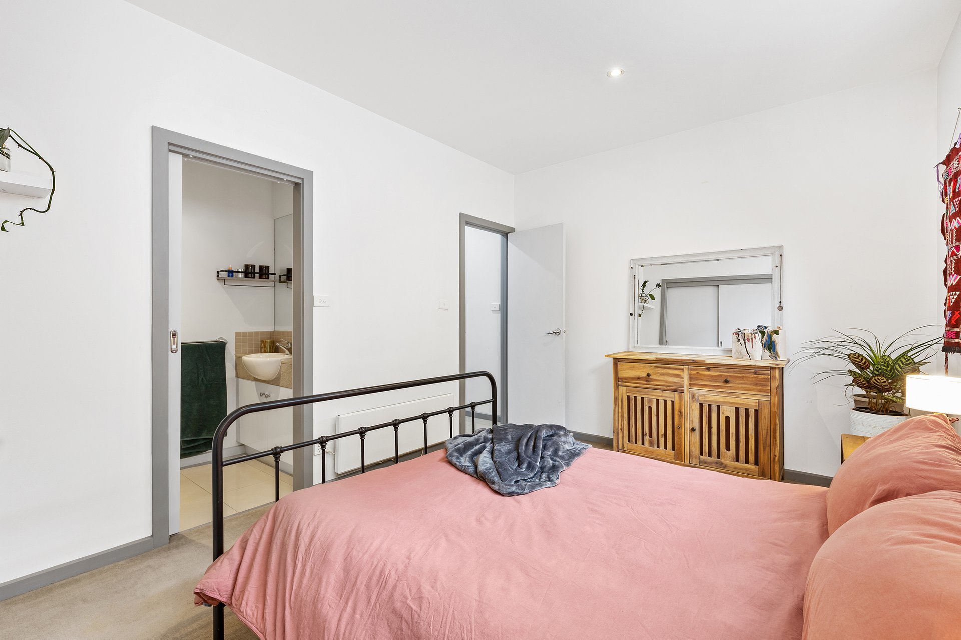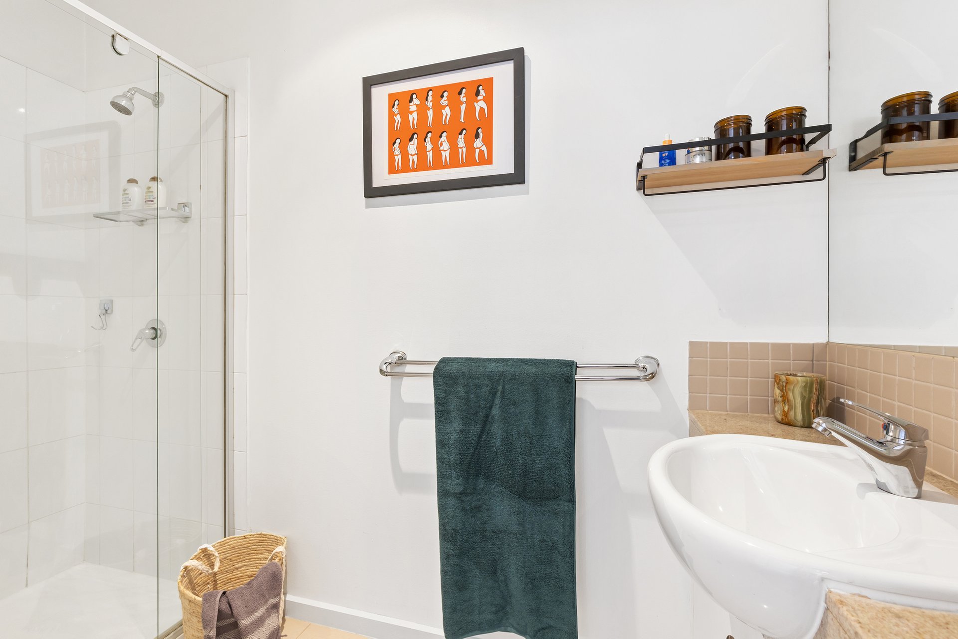 The spacious bedroom is complemented by wall-to-wall built-in robes and a stylish ensuite, providing a private retreat within the home. A powder room with a separate toilet and Euro-style laundry adds further convenience, catering perfectly to modern living. Comfort is assured year-round with heating, air-conditioning, and secure entry, while an allocated car space and storage cage provide added practicality.