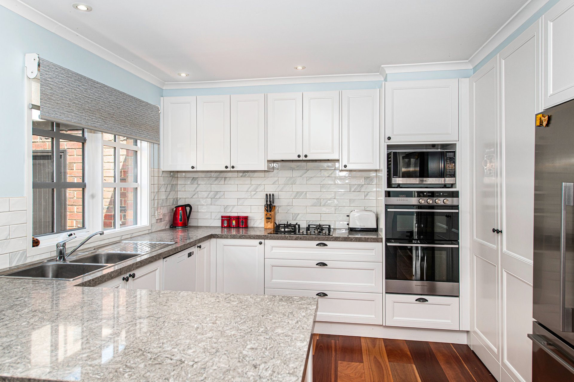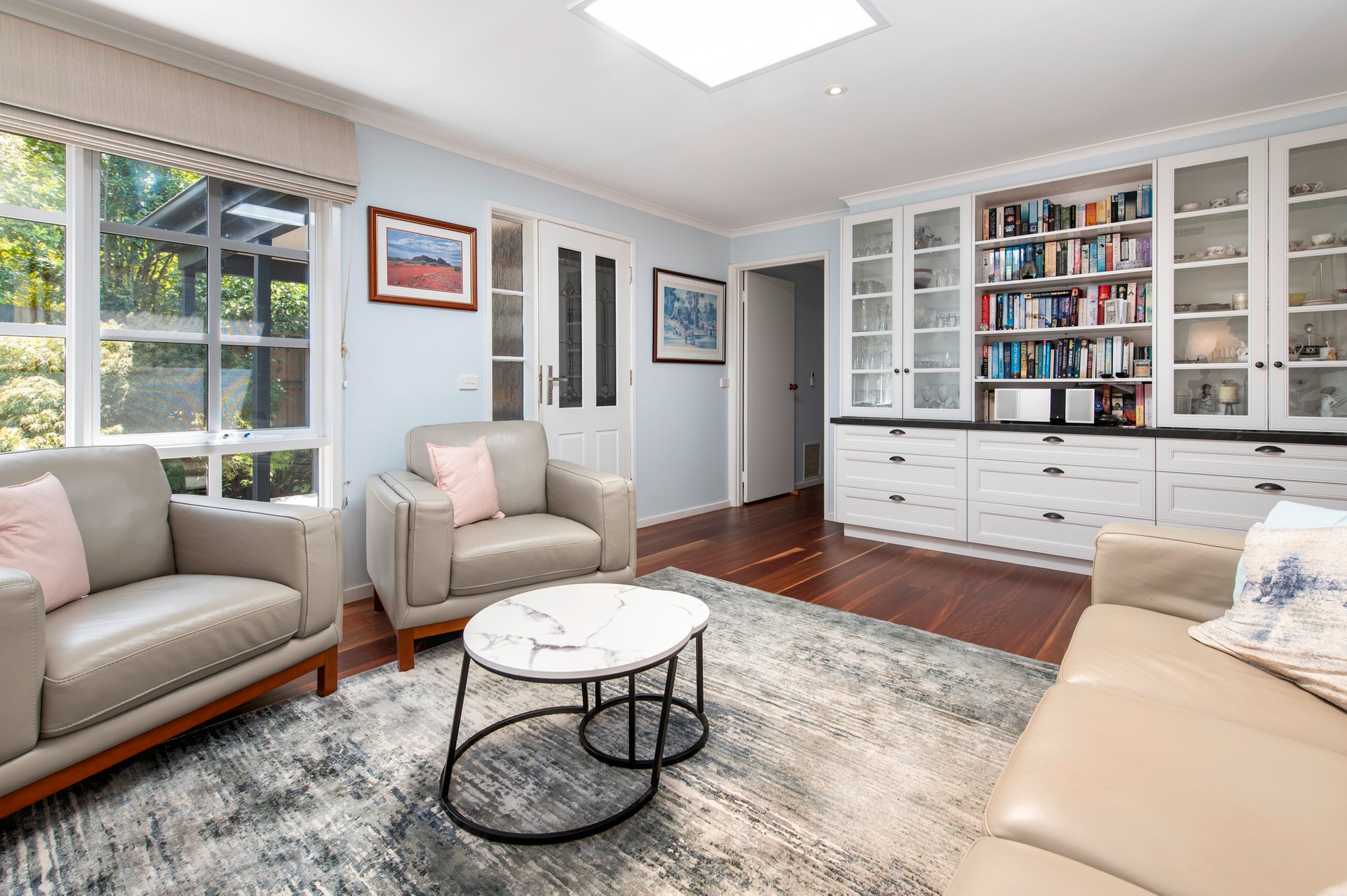 Spotted gum timber floors are a stylish feature of much of this immaculate abode, including through the light-filled front lounge room with high quality built-in joinery which is the ultimate spot for relaxing. Breakfasts and dinners can be enjoyed in the sizeable dining room, which directly neighbours the modern stone kitchen which delivers a meals counter and quality appliances including an ASKO dishwasher.
