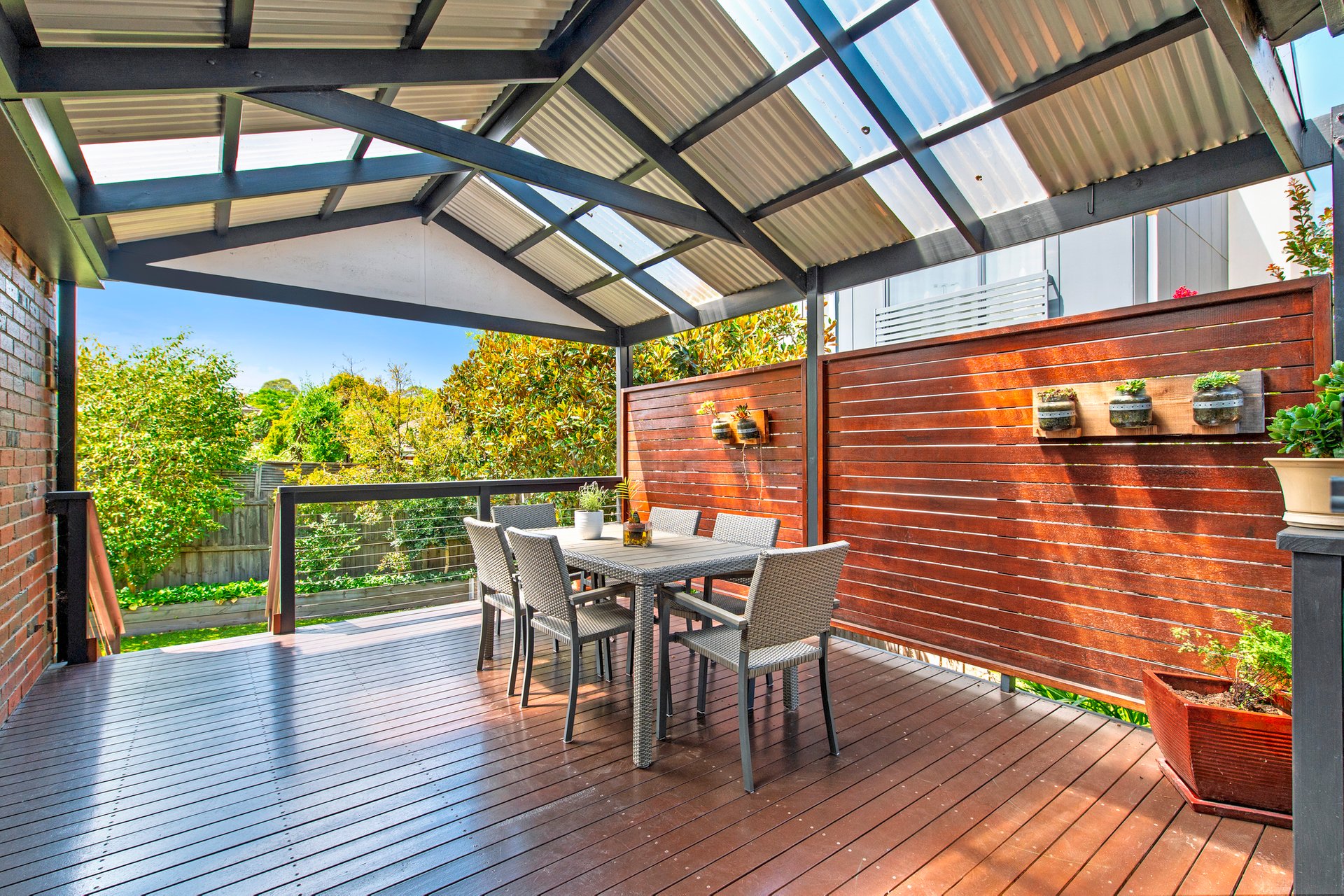 Outdoors the elevated undercover deck will be absolute bliss when it comes to entertaining (or drying your washing) while further embrace a fully landscaped and spacious back garden with generous garden shed and pedestrian access to the remote operated double lock up garage